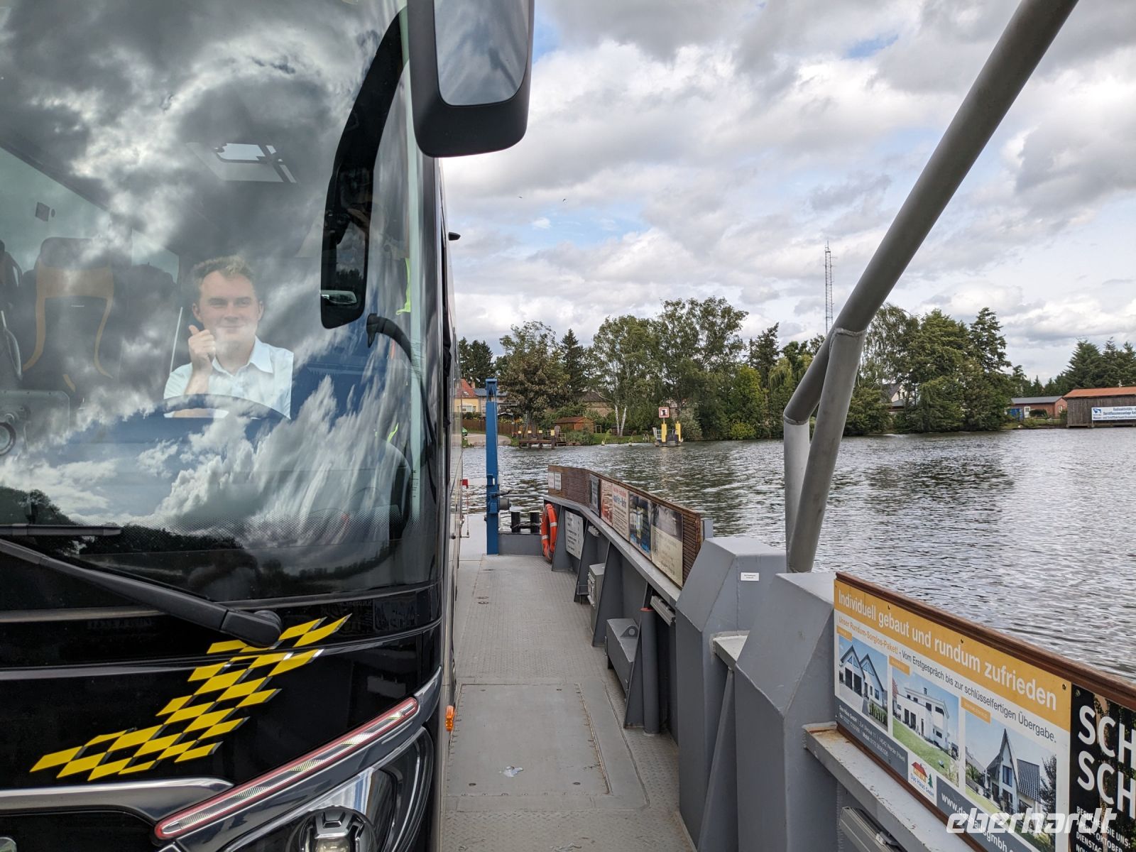 Unsere Fähre kam pünktlich in Kiel an und wir gingen gingen zu Fuß durch den langen Gang zu unserem wartenden Bus. Hier verabschiedeten wir uns von der Hälfte unserer Mitreisenden, die in Kiel ausstiegen und nur noch ihr Gepäck aus dem Bus holten. Auf derselben Strecke wie bei der Hinfahrt ging es zurück in Richtung Sachsen. Allerdings wurde es noch einmal abenteuerlich, denn wir mussten zwei Staus und eine Autobahn-Vollsperrung umfahren – wobei wir noch eine Havel-Fähre nutzten, sozusagen als endgültigen Abschied von Norwegen mit seinen Fährfahrten. So erreichten wir, nicht ganz pünktlich, aber angesichts der Umstände doch in gutem Rahmen liegend, unsere Reise-Endpunkte Leipzig und Dresden.