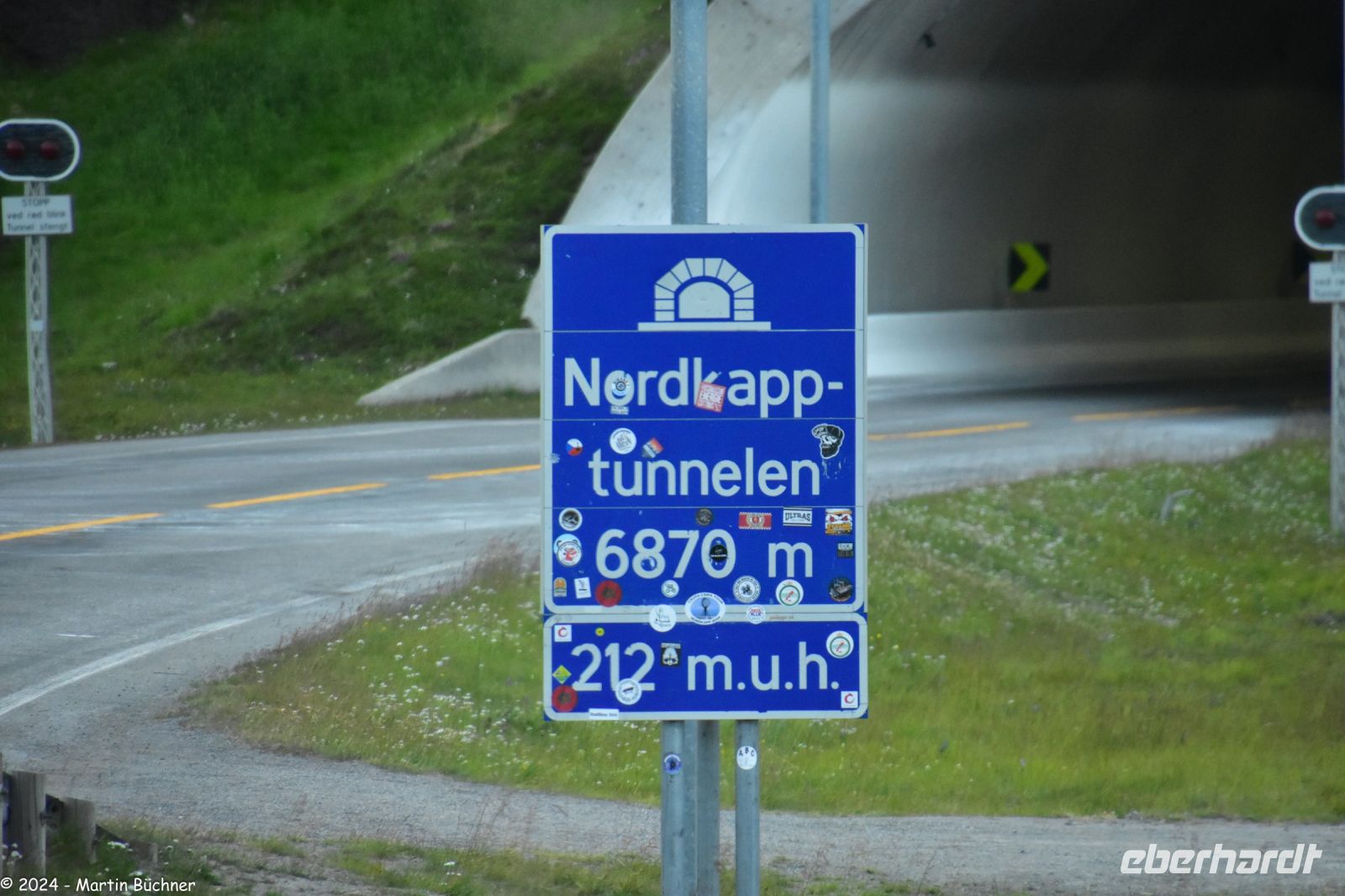 Wir erreichen die Nordkapp-Insel Magerøya - die margere Insel. Die Insel erreicht man über den Nordkapptunnel - mit 9% Gefälle und Steigung im Tunnel und einer Tiefe von gut 263 Meter unter dem Meeresspiegel unterqueren wir den Sund.