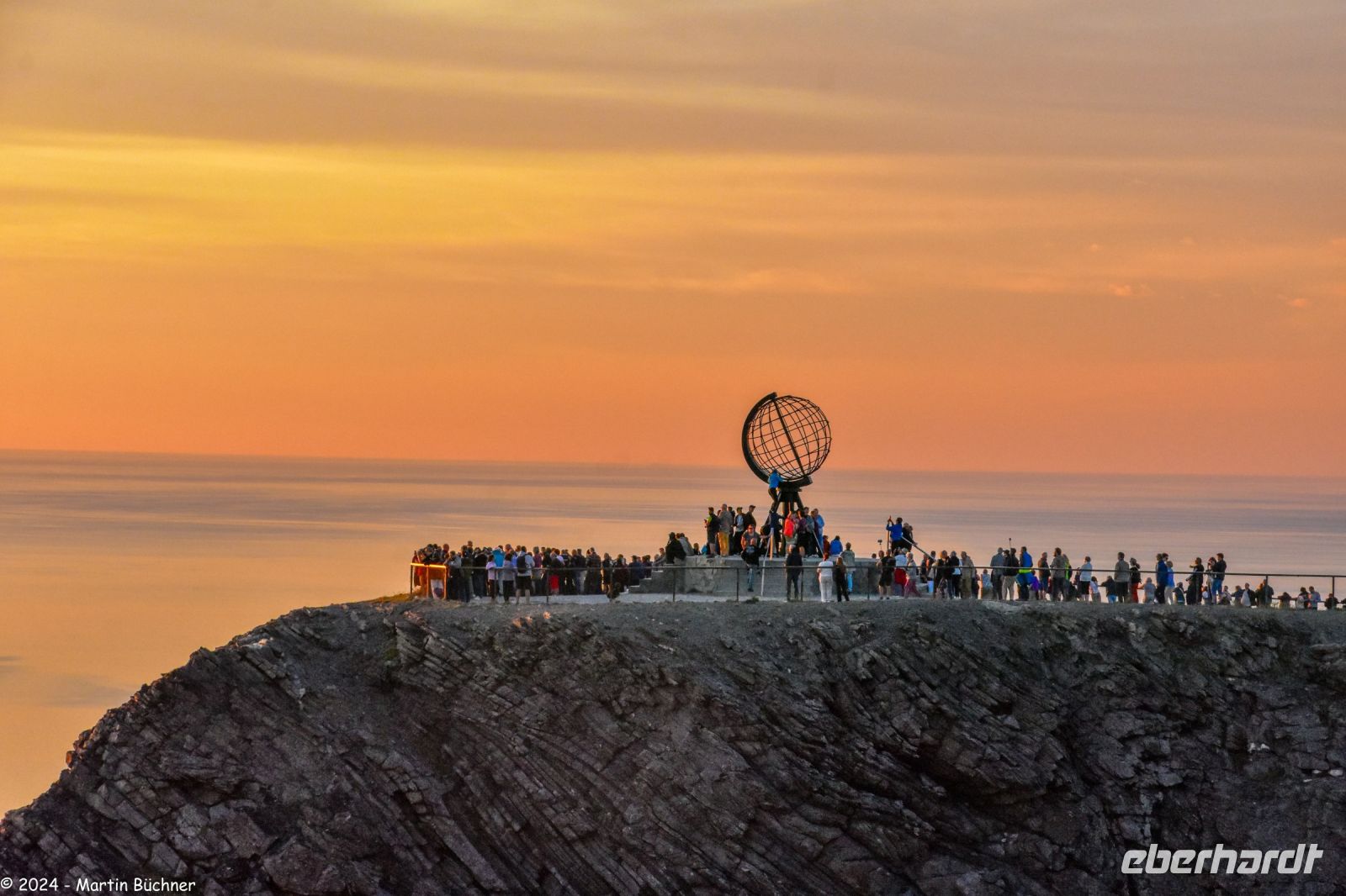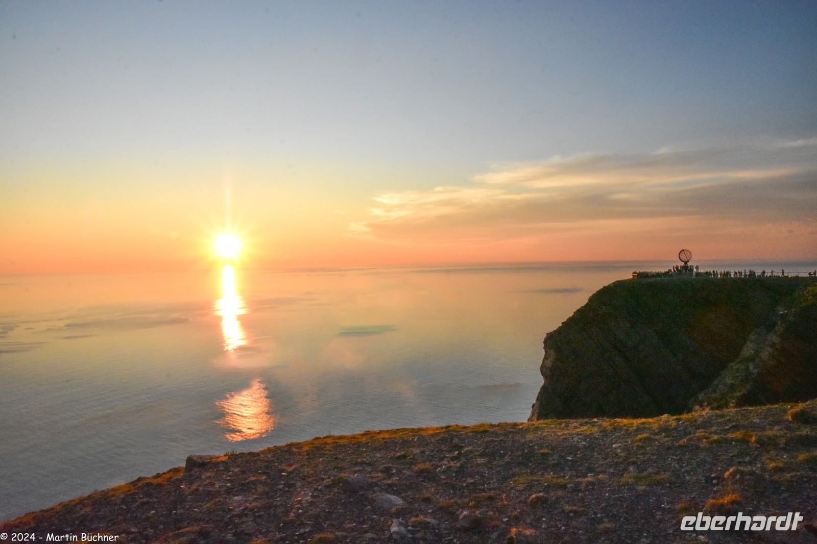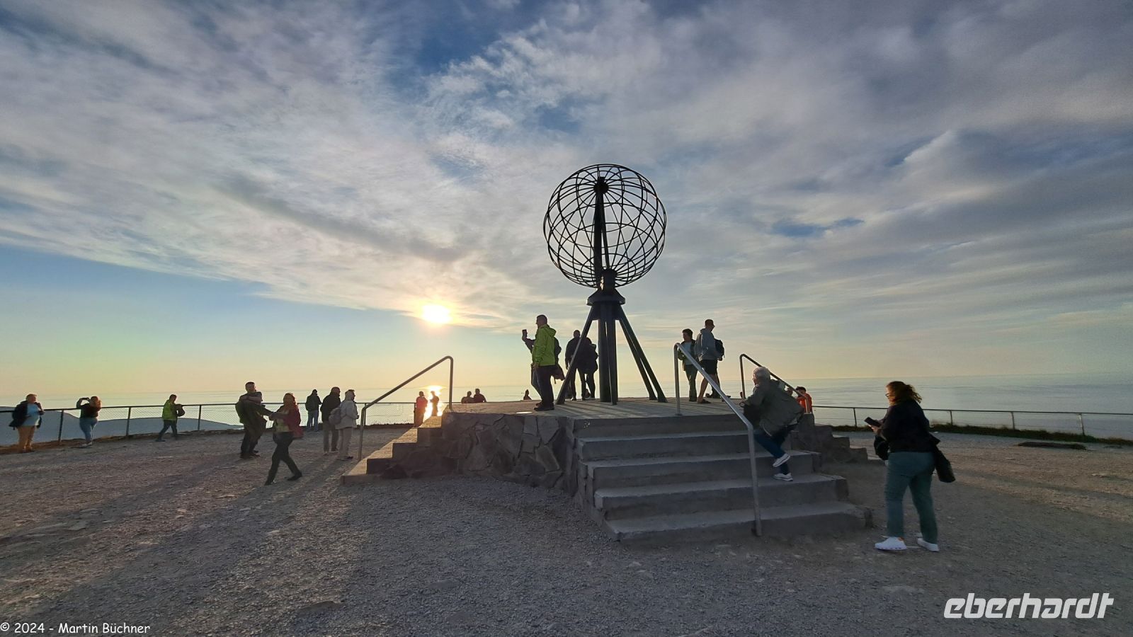 Am Abend folgt der Höhepunkt der Reise - das Nordkapp - eines der nördlichsten Punkte Europas. Auf einer über 300 Meter hohen Klippe gelegen, markiert durch seinen markanten Stahl-Globus, erzeugt es einen magischen Moment. In einer tropischen Nacht (über 20°C Nachttemperatur erleben wir unbeschreiblich schön die "Mitternachtssonne", die Zeit in der die Sonne "im Land von Thule" nie untergeht. Abendessen in der Nordkapphalle mit Blick auf den Globus und die Mitternachtssonne. Für viele wird es sicher der nördlichste Punkt ihres Lebens sein. Vom Nordpol trennen nur etwas mehr als 2.000 km dazwischen die Bäreninsel und Spitzbergen. Der Nordpol ist uns nun näher als das eigene zu Hause in Deutschland.