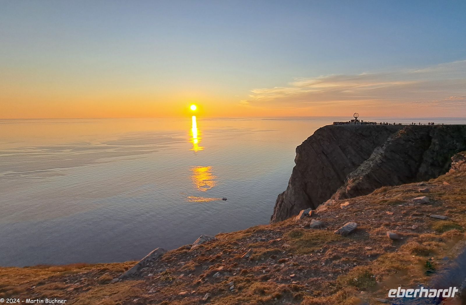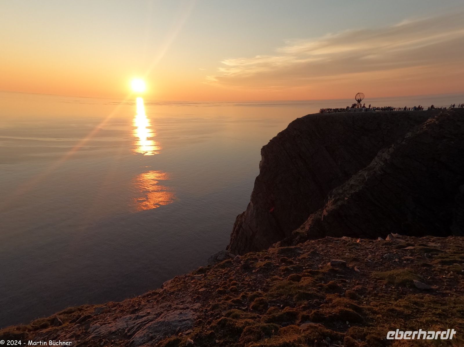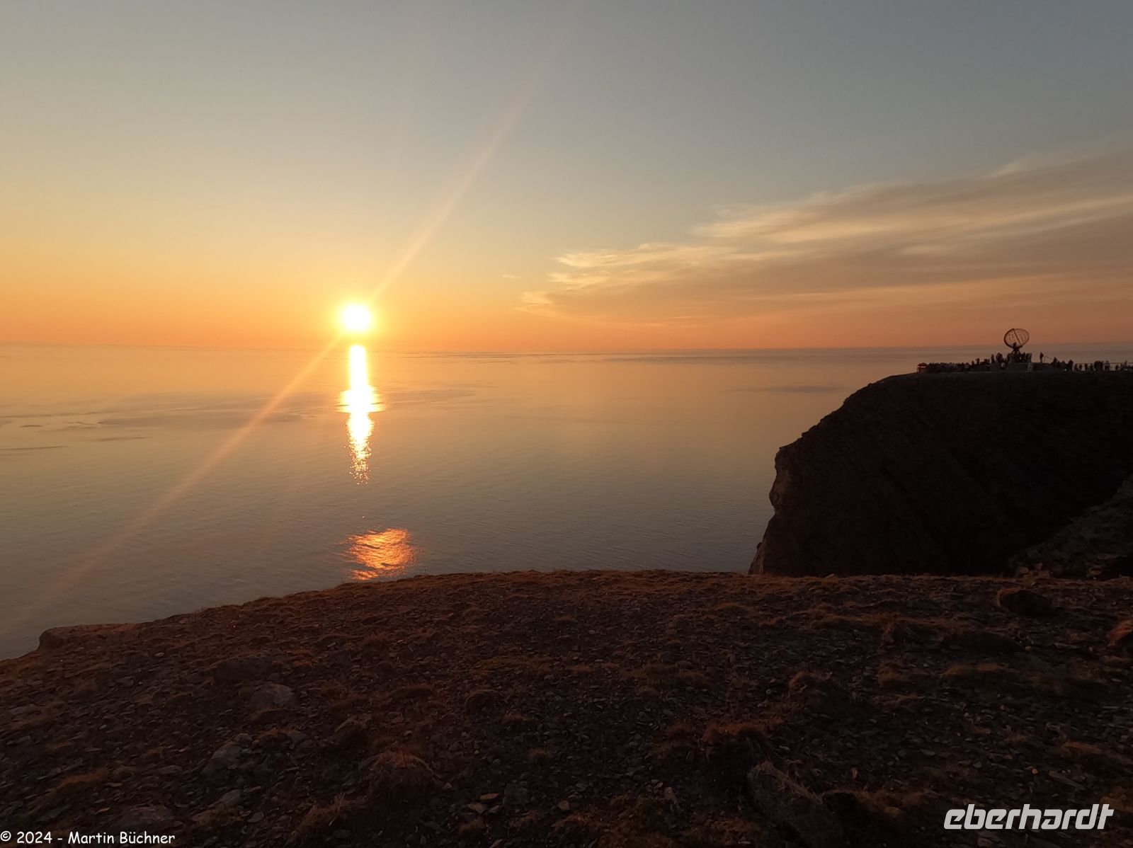 Am Abend folgt der Höhepunkt der Reise - das Nordkapp - eines der nördlichsten Punkte Europas. Auf einer über 300 Meter hohen Klippe gelegen, markiert durch seinen markanten Stahl-Globus, erzeugt es einen magischen Moment. In einer tropischen Nacht (über 20°C Nachttemperatur erleben wir unbeschreiblich schön die "Mitternachtssonne", die Zeit in der die Sonne "im Land von Thule" nie untergeht. Abendessen in der Nordkapphalle mit Blick auf den Globus und die Mitternachtssonne. Für viele wird es sicher der nördlichste Punkt ihres Lebens sein. Vom Nordpol trennen nur etwas mehr als 2.000 km dazwischen die Bäreninsel und Spitzbergen. Der Nordpol ist uns nun näher als das eigene zu Hause in Deutschland.