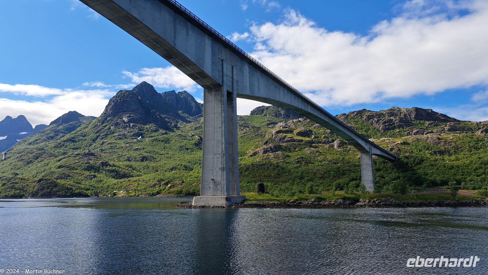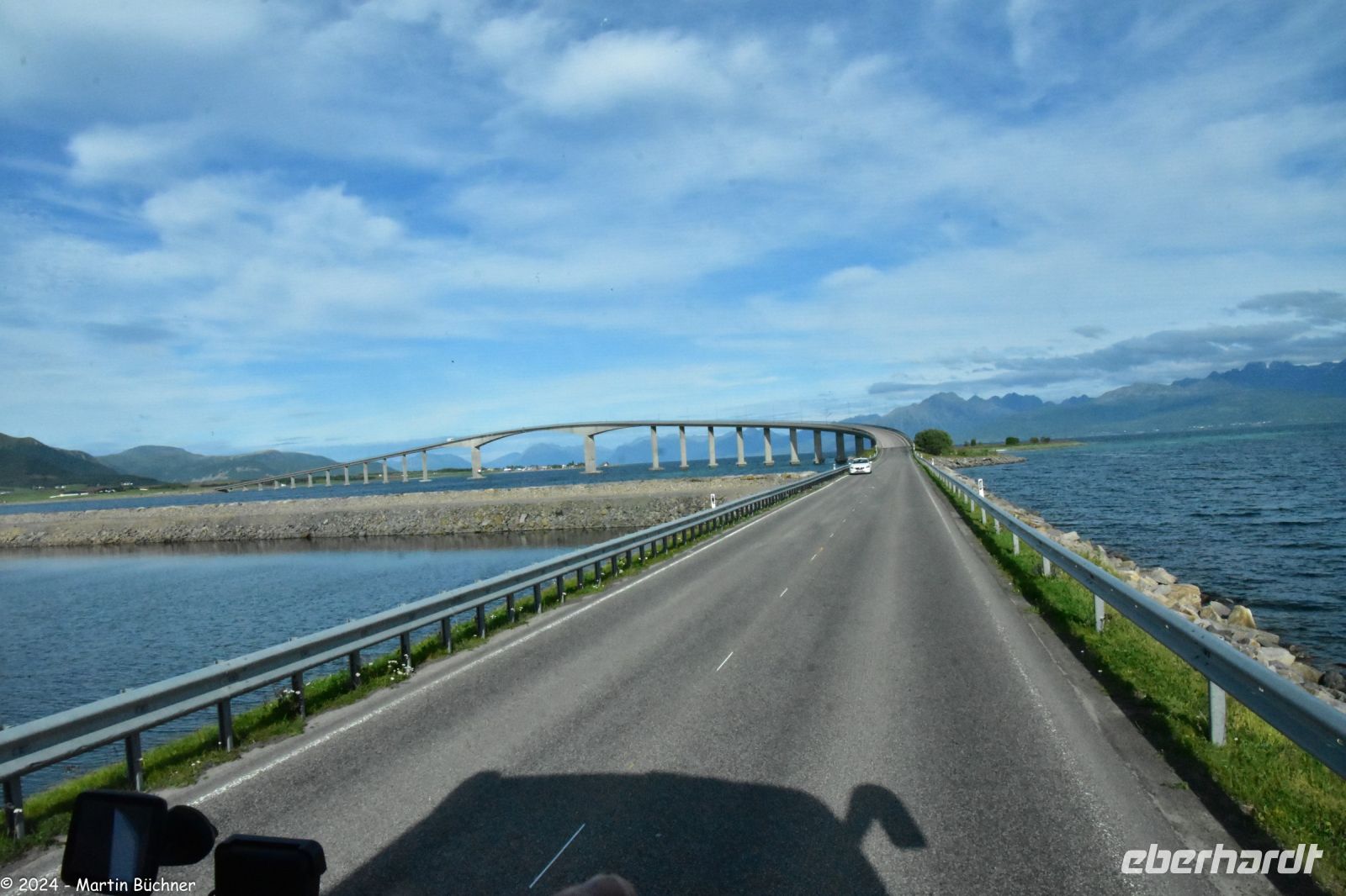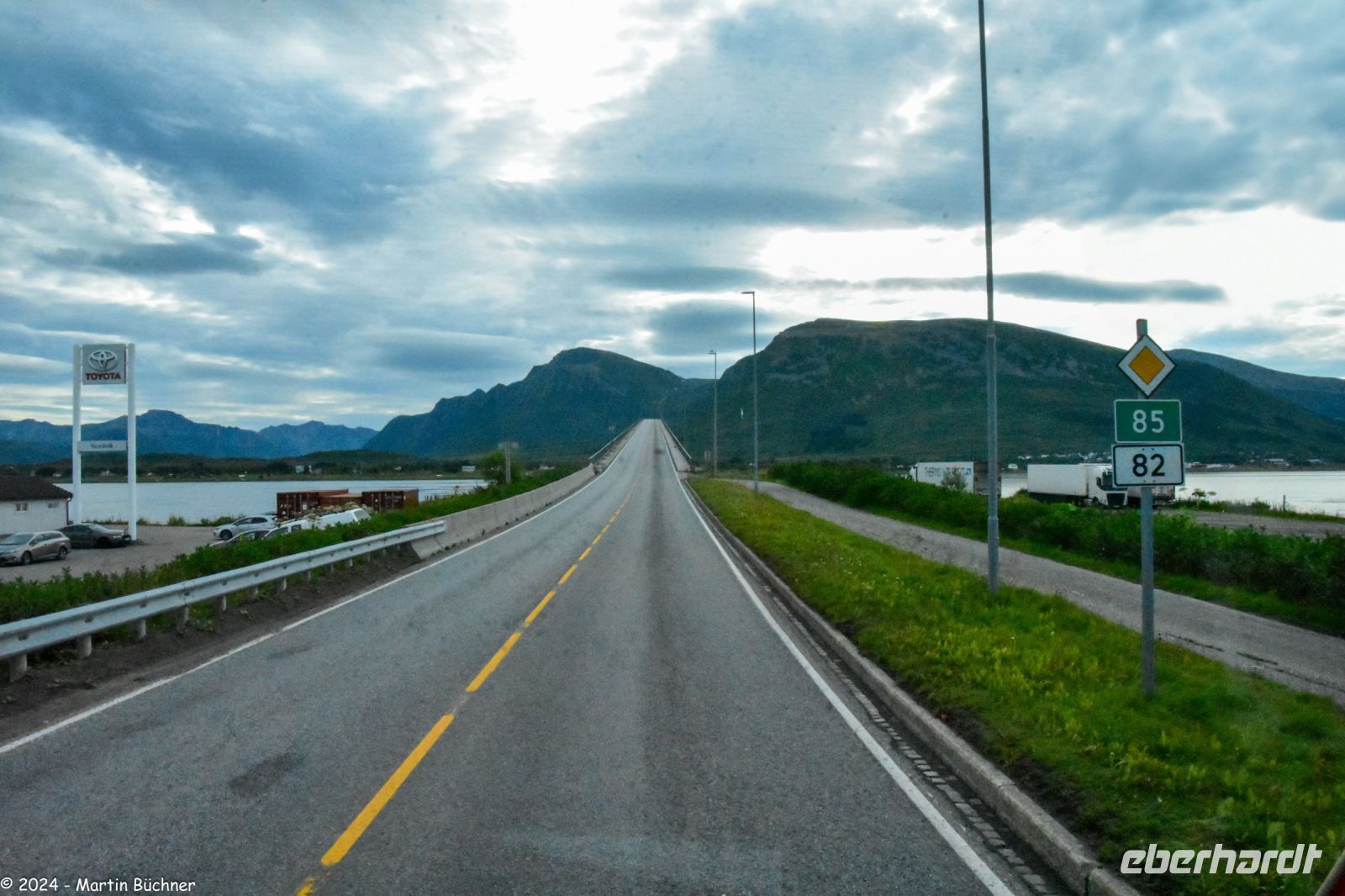 Über E8 und E6 geht es in Richtung Vestfjord und damit zum Inselarchipel der Vesterålen und Lofoten. Über den Tjelsund und die zughörige große Hängebrücke erreichen wir mit Hinnøya die größte Insel Norwegens. Hauptort der Insel und des Archipels ist Harstad unser heutiges Tagesziel.