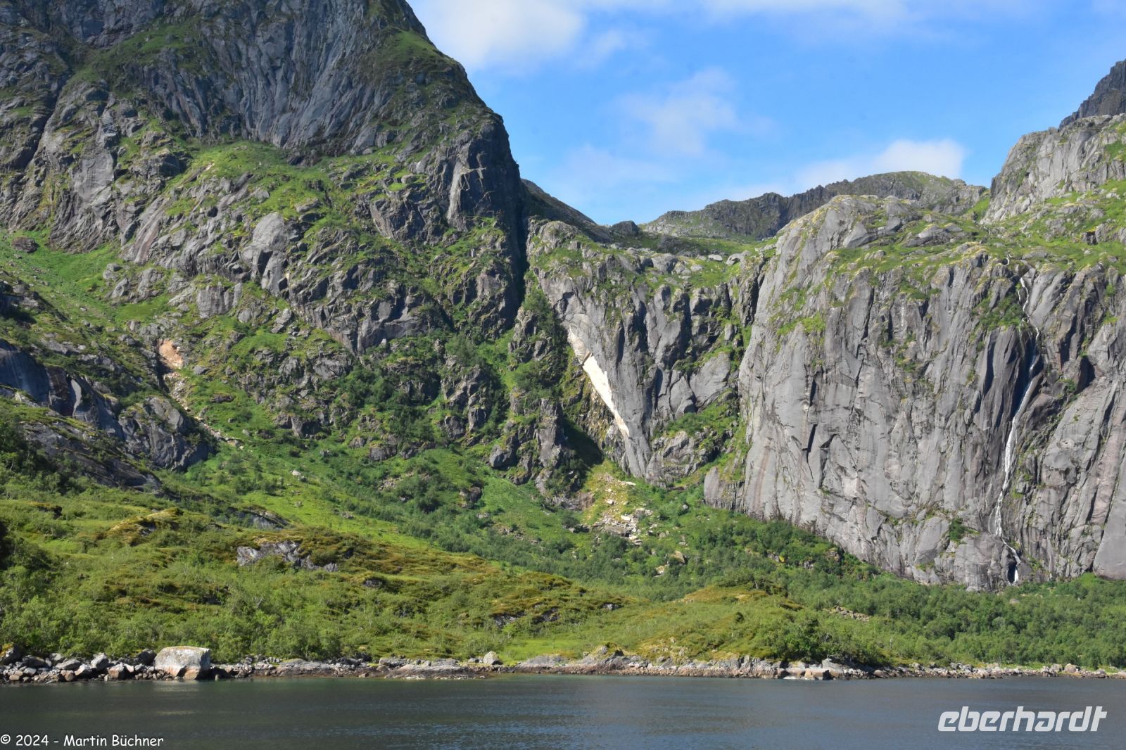 Heute starten wir zu einem ersten Ausflug auf die Lofoten. Über die LOFAST erreichen wir auf dem Landweg die Insel Austvågøya, auf ihr liegt Svolvær, Hauptort des Lofoten Archipels. Hier wechseln wir das Verkehrsmittel vom Bus auf das Schnellboot Øykongen (Inselkönig).