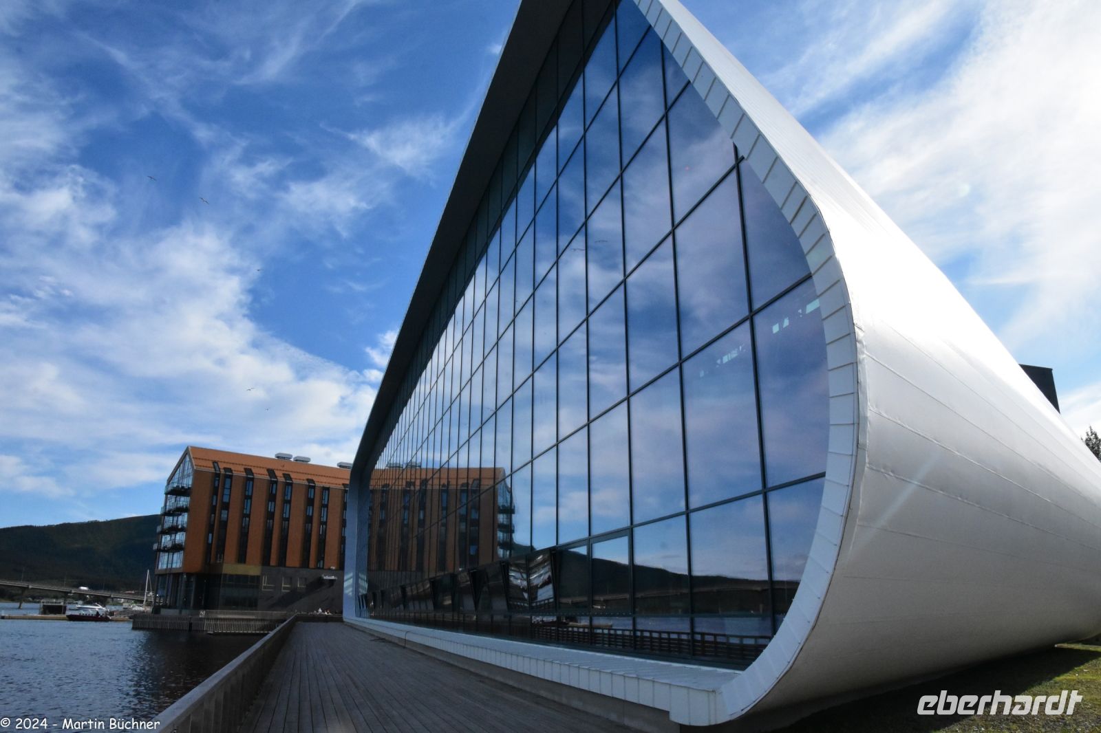 Den Vormittag nutzen wir für eine Stadtrundfahrt und einem Stadtspaziergang. Hauptplatz, das Aquarium im Einkaufszentrum, Polarmuseum (von Außen), Wohngebäude in dem sich Roald Amundsen stets aufhielt, Rathaus und Bibiothek dürfen dabei nicht fehlen, am wenigsten die berühmte Tromsdalen Kirche, die im Volksmund gern Eismeerkathedrale genannt wird.