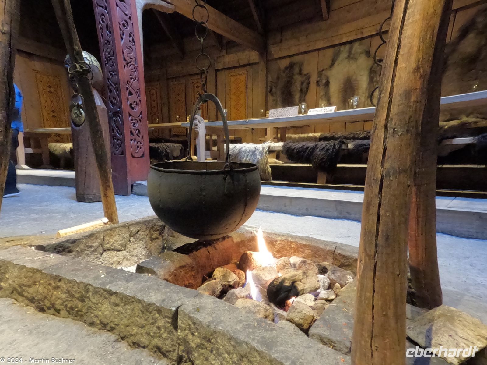 dem offenen Feuer im Kessel gekocht, lassen wir uns den deftigen Lammeintopf mit viel Gemüse, Rømme und selbst gebackenem Brot gut schmecken. Anschließend erkunden wir Haus, Hof und Museum.