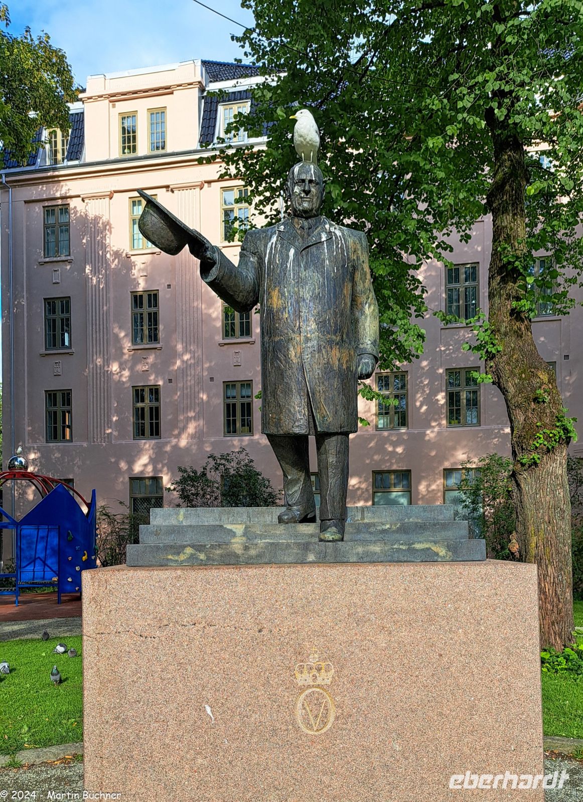 In Stokmarknes, dem Nabel der Hurtigruten-Welt, halten wir für einen Fotostopp. Kapitän Richard With gelang es erstmals 1893 eine ganzjährig betriebene "Schnelle Postschiffroute" entlang der norwegischen Küste zu etablieren. Stokmarknes ist die Wiege der Hurtigruten.