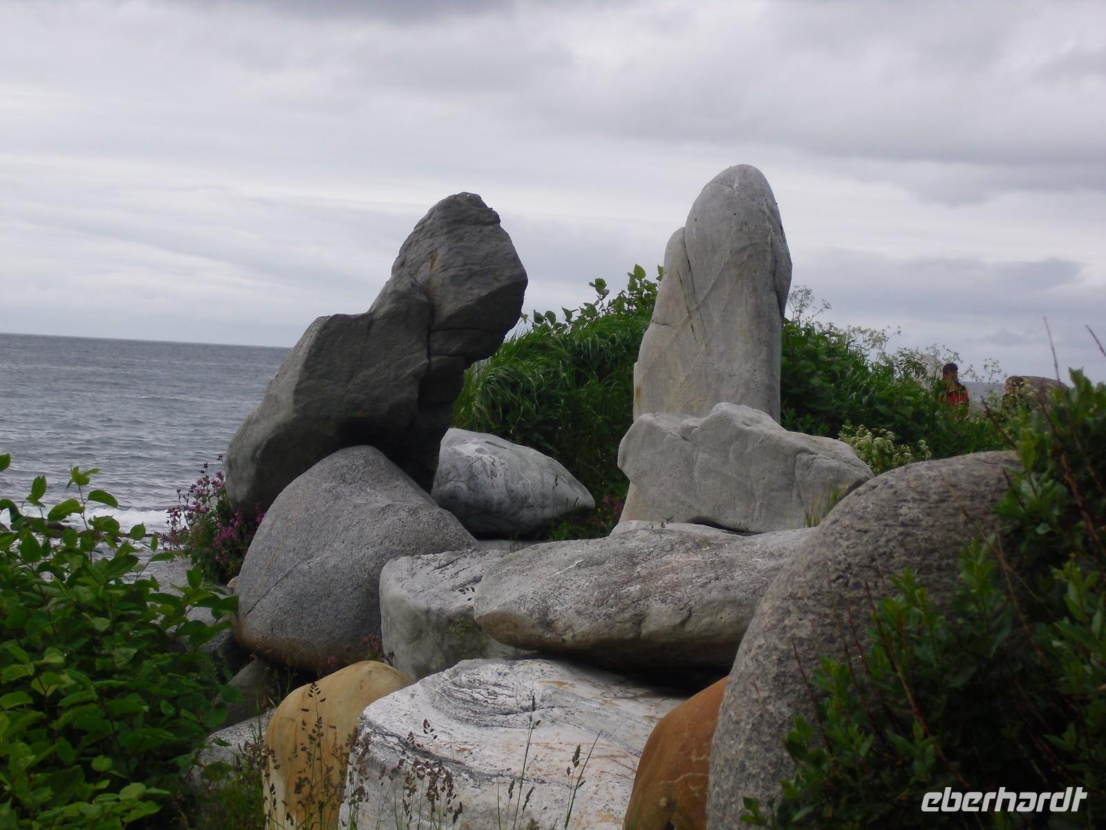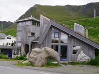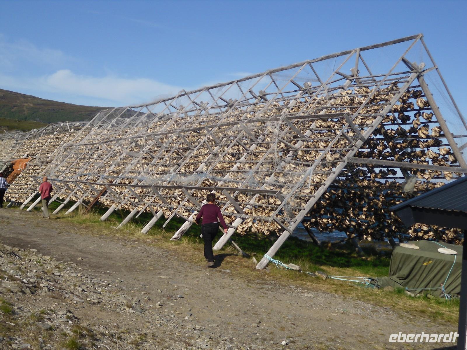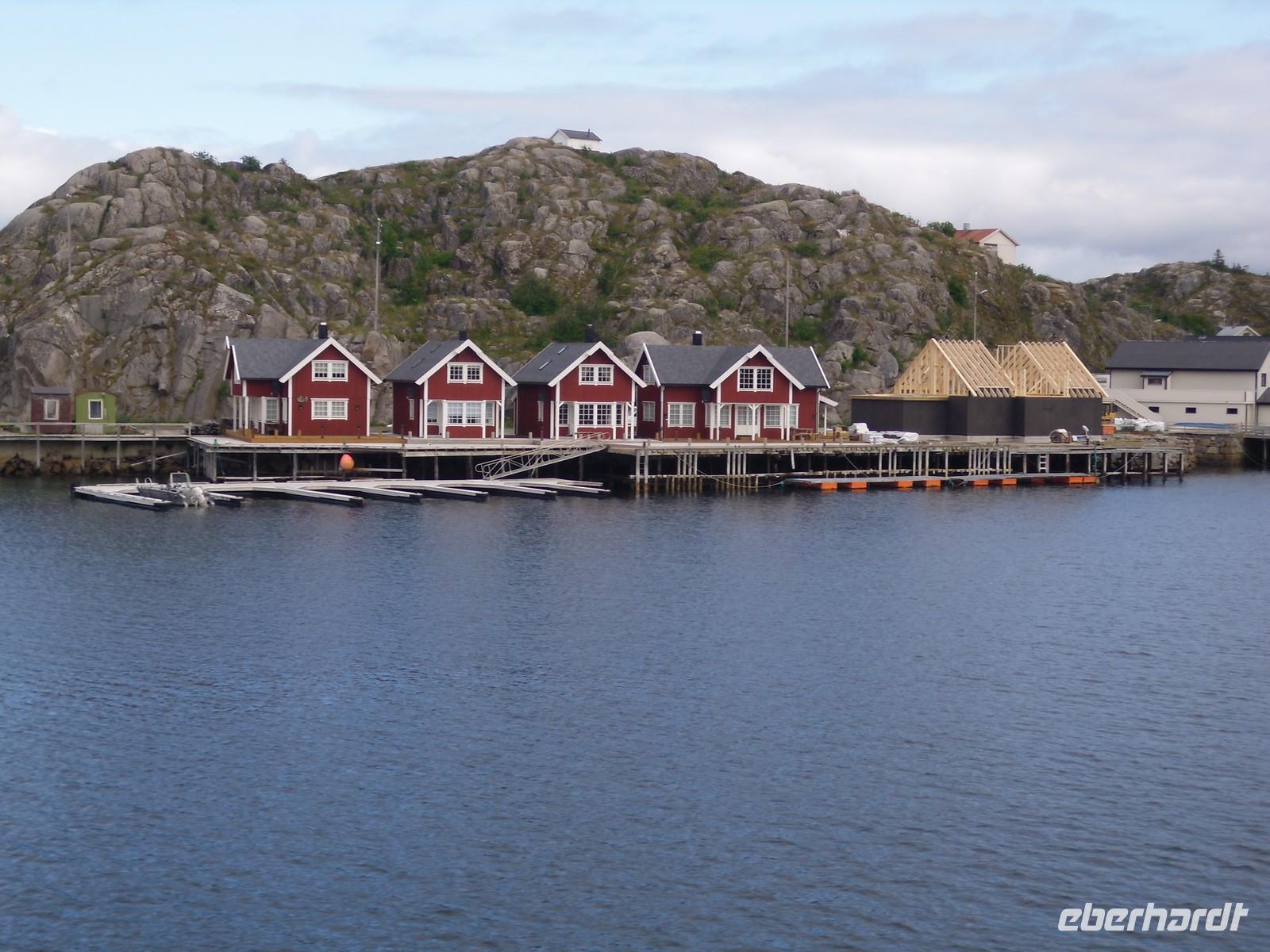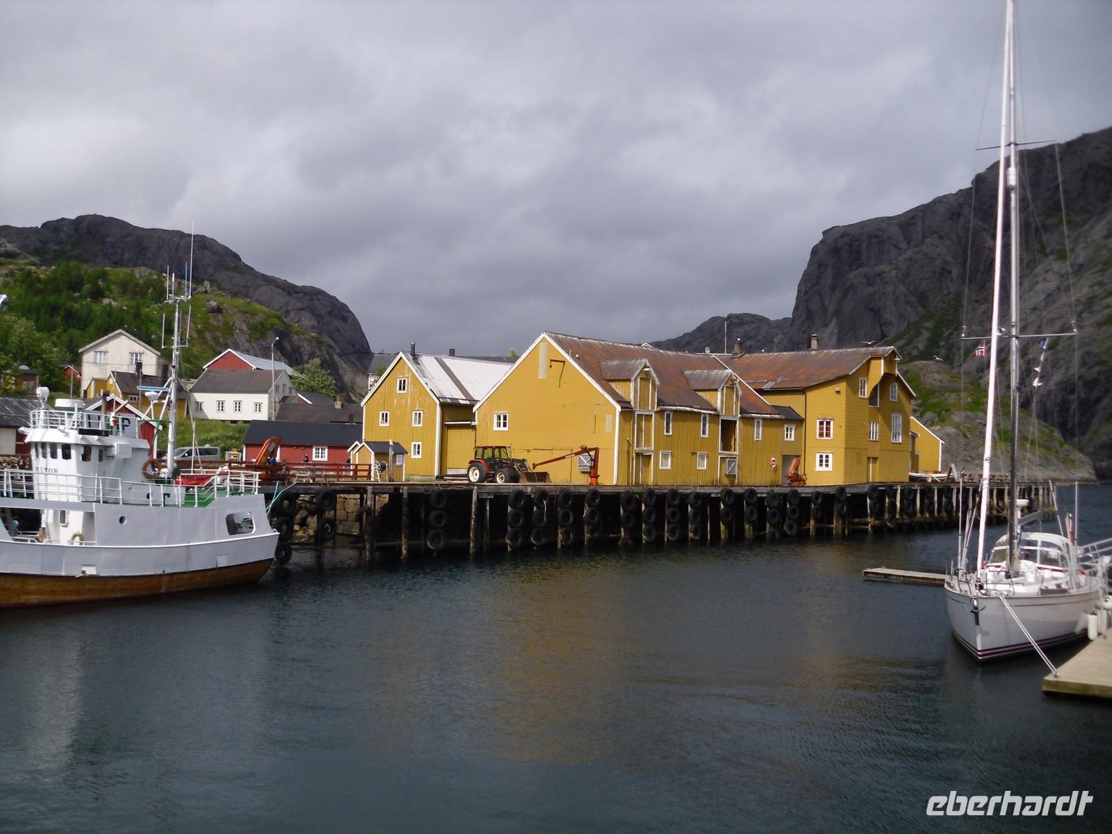 Der Besuch von Nußfjord mit einem Rundgang ohne Regen und einigen Sonnenstrahlen, die Filmvorführung zur Lofotfischerei und das Picknick, das alles erleben wir am Nachmittag. Ein kurzer Stopp führt uns noch nach Vikten, ein hübscher Ort mit herrlichen rundgeschliffenen Steinen und Glas-und Keramikwerkstätten. Auf unserer Rückfahrt sehen wir noch die Lofot Kathedrale in Kabelvag, sie wird fotografiert, ja rein schauen können wir nicht, es ist geschlossen.