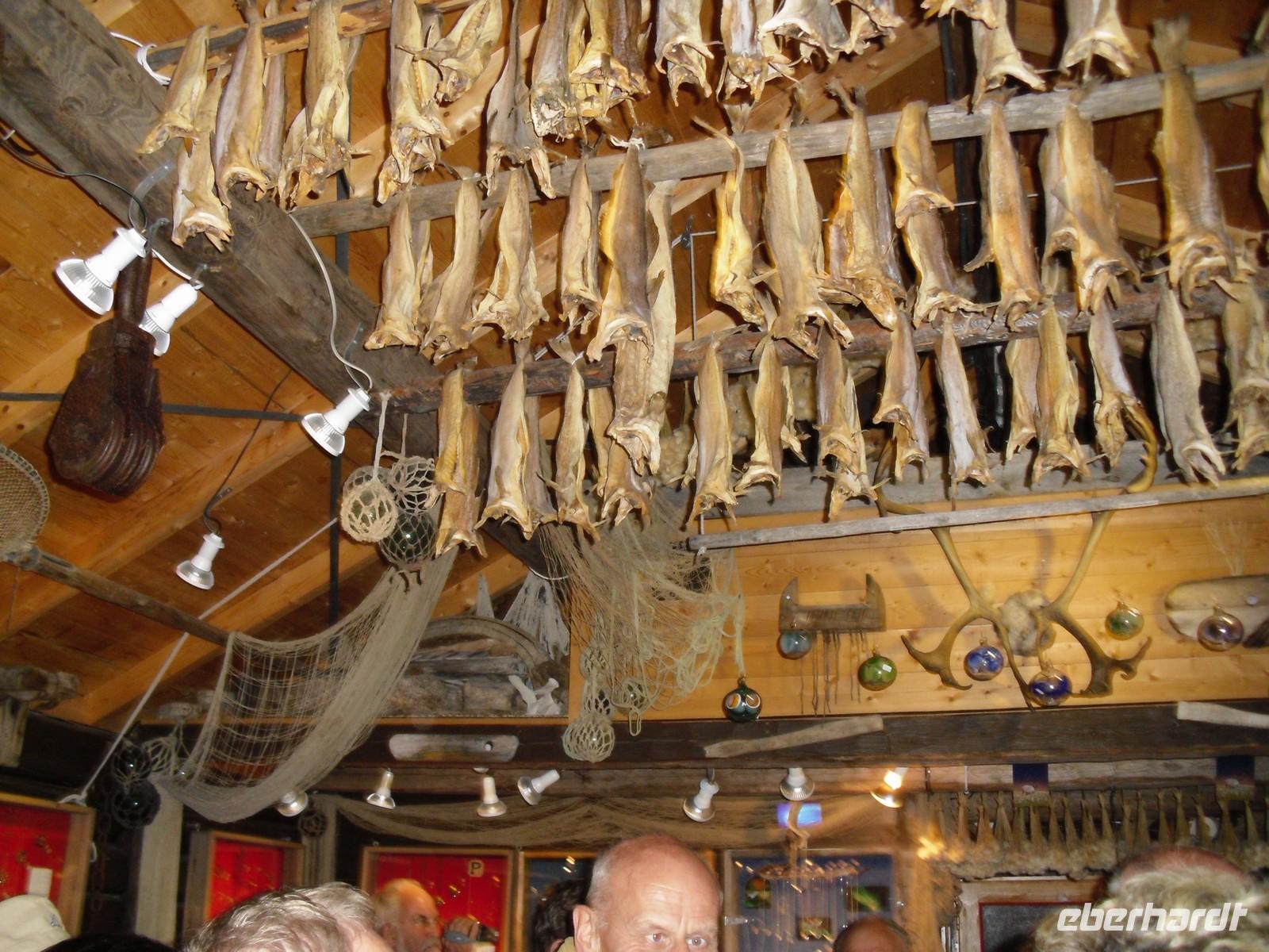 Start bei leichtem Regen, aber auf Besserung hoffend, gehen wir zur Rundfahrt auf den Lofoten. Kalter Wind und etwas Regen umgibt uns beim Rundgang durch Henningsvaer. Weiter geht unsere Fahrt nach Borg ins Wikinger Museum. Hier werden wir schon von Manfred, unserem Führer, erwartet. Er bringt uns die Geschichte um die Wikinger mit ihrem Leben, Traditionen und Weisheiten sehr nah und bei der anschließenden Wikingermahlzeit sitzen wir alle beieinander in der großen Gildehalle am wärmenden Feuer und lassen uns den Lammsuppe schmecken. Ein Glas Meet dazu rundet das Wikingermahl vorzüglich ab.