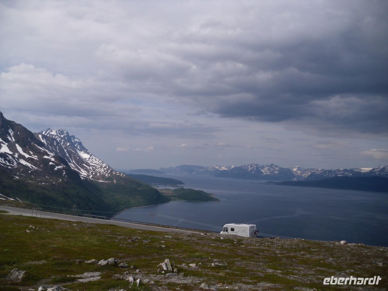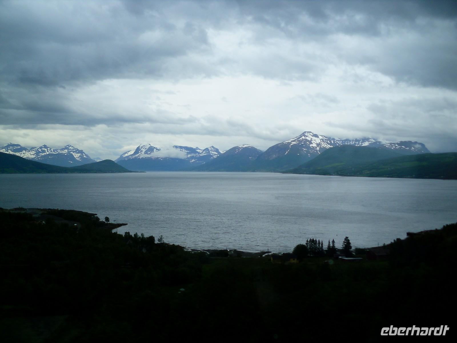 in die teilweise noch schneebedeckten Lyngner Alpen, setzen wir unsere Fahrt fort in Richtung West. Nach 2 Fährüberfahrten und herrlichen Aussichten und Fototopps kommen wir am Abend in Tromsö an. Diese Stadt nennt man auch die "Pforte zum Eismeer".