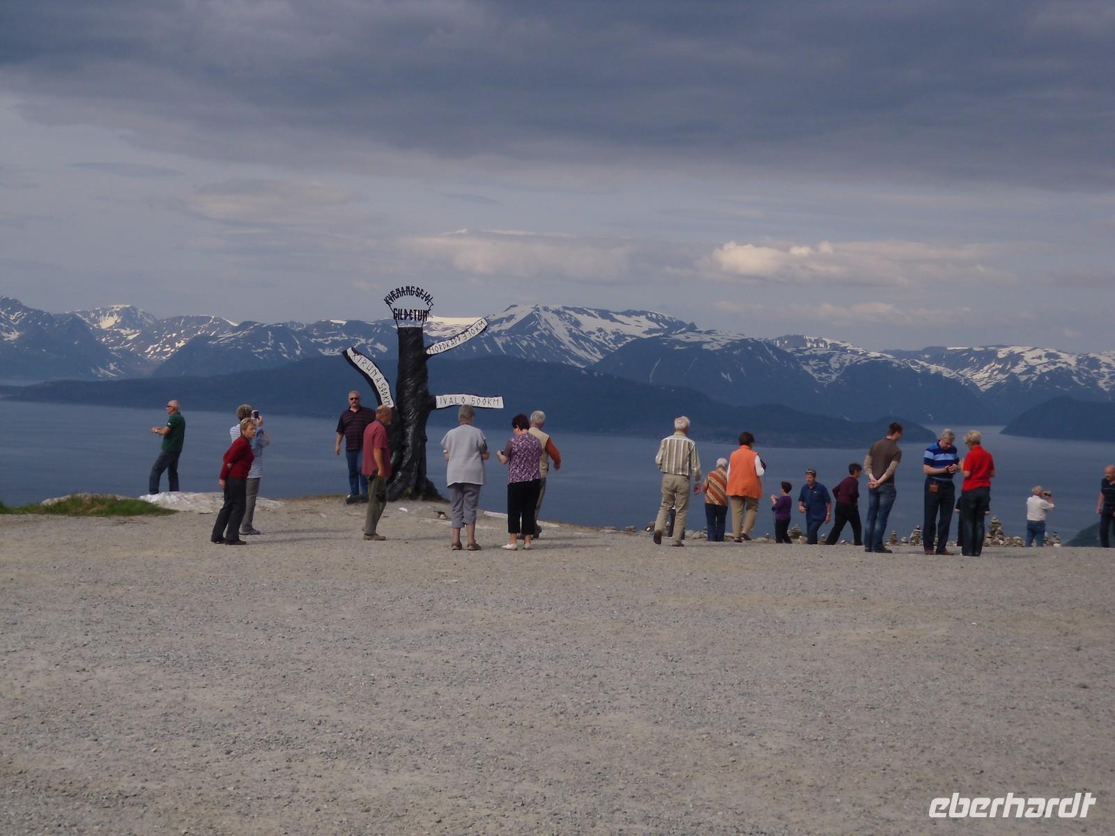 Wasserfälle, Seen und Fjorde kommen wir am späten Nachmittag am Polarkreis an. Und hier werden wir mit Tollem Wetter, uns scheint die Sonne, belohnt. Es werden Karten an die Lieben geschrieben, denn ein besonderer Stempel kommt auf die Marke. Nach Fotos und Einkäufen geht unsere Fahrt weiter bis hinunter nach Mo i Rana an den Ranfjord. Nach einem guten Essen gehen viele der Gäste noch hinunter ans Wasser, heute wird in Norwegen Mitsommer und Johannes gefeiert mit Musik und Getränken, man lädt uns gleich dazu ein.