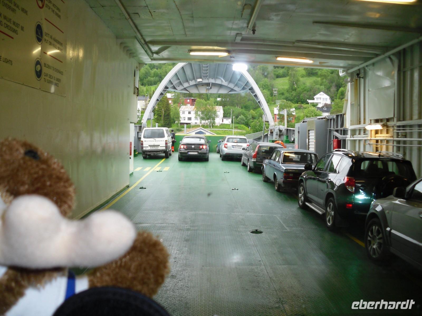 Wir dürfen etwas früher zum Frühstück kommen, denn unsere Fährüberfahrt nach Skutvik, auf das Festland, ist schon für 08.15 Uhr am Morgen geplant. Bei etwas Sonne, Wind und kühlen Temperaturen kommen wir gegen halb Elf mit der Fähre an. Mit unserem Bus geht die Fahrt auf der E6 gen Süden weiter. Nach einem Mittagsstopp und reichlich guten Aussichten auf