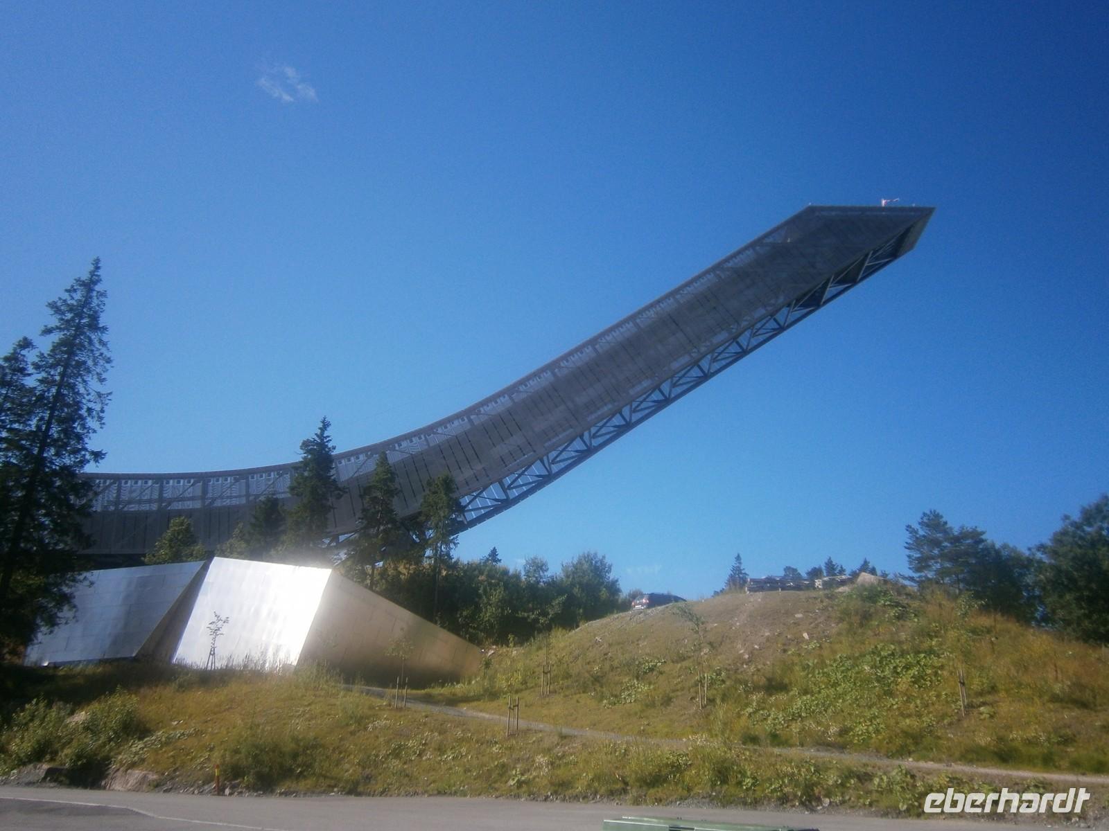 Während unserer Stadtrundfahrt ist auch diesmal Zeit für die Schanzenanlage am Holmenkollen. Der stählerne Neubau, eine freitragende Konstruktion, wurde im Frühjahr 2009 begonnen und zu den nordischen Skiweltmeisterschaften 2011 eingeweiht. Von hier eröffnet sich eine grandiose Aussicht auf die Stadt Oslo und den gleichnamigen Fjord.