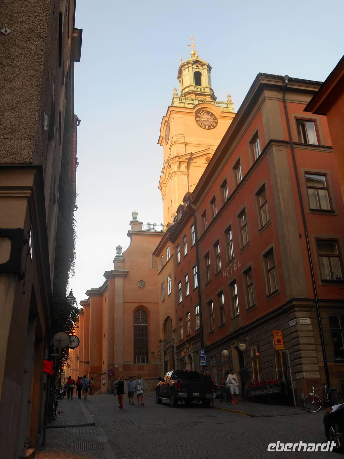 Nach einem kurzen Abstecher zum Dom in Linköping, einem der schönsten gotischen Gebäude im Norden, erreichten wir die Schleusen von Berg. Berg liegt am westlichen Ufer des Roxen an der Mündung des Göta-Kanals in diesen See. Bekannt ist der Ort vor allem wegen seiner Schleusen (Bergs slussar). Die Schleusen des Göta-Kanals sind beliebte Ausflugsziele und jede Schleusung ist ein sehenswertes Schauspiel! Die hiesige Anlage umfasst sieben Schleusen und danach zwei weitere Doppelschleusen - echt sehenswert, wie die Schiffe den Höhenunterschied von 18,8 Metern überwinden! Von hier waren es nur noch knapp 200 Kilometer bis in die schwedische Hauptstadt Stockholm! Pünktlich kurz vor 13 Uhr erreichten wir das Königliche Schloss, wo wir uns die große Wachablösung anschauten, bevor wir mit unserer Stadtrundfahrt begannen. „Venedig des Nordens", „Schwimmende Stadt", „Kleinste Großstadt bzw. größte Kleinstadt der Welt" - Stockholm hat viele Namen und begeistert zu jeder Jahreszeit! So bietet die malerisch zwischen Mälernsee und Ostsee gelegene schwedische Metropole Sehenswürdigkeiten und Lebensqualität in Hülle und Fülle. Den Großteil ihres Charmes bezieht die Metropole aus ihrer Lage am Übergang vom Mälernsee zur Ostsee. Auf 14 Inseln verteilen sich die älteren Stadtviertel, charakterisiert durch zahlreiche historische Gebäude mit Kupferdächern und goldüberzogenen Turmhauben, sowie die von moderner Architektur geprägten Außenbezirke. Inmitten der Stadt befand sich übrigens unser Hotel „Scandic Klara" - auch hier hatten wir wiederum einen perfekten Ausgangspunkt, um die schwedische Metropole zu erkunden. Ein leckeres Abendbuffet erwartete uns ebenso und so manch einer unserer Gäste nutzte danach gut gestärkt die Gelegenheit zu einem abendlichen Spaziergang durch die Altstadt „Gamla Stan". Sie ist einer der größten und besterhaltenen historischen Stadtkerne Europas und hier wurde die Stadt im Jahre 1252 gegründet. Für das besondere Flair von Gamla Stan sorgen die schmalen, verwinkelten Gässchen mit Kopfsteinpflaster und die Häuschen in sämtlichen Gelbtönen. Hinter ihren Fassaden findet man auch heute noch Kellergewölbe und Kalkmalereien aus dem Mittelalter.