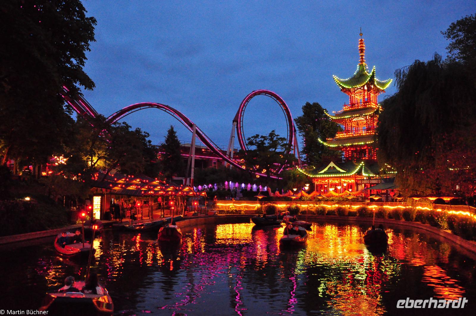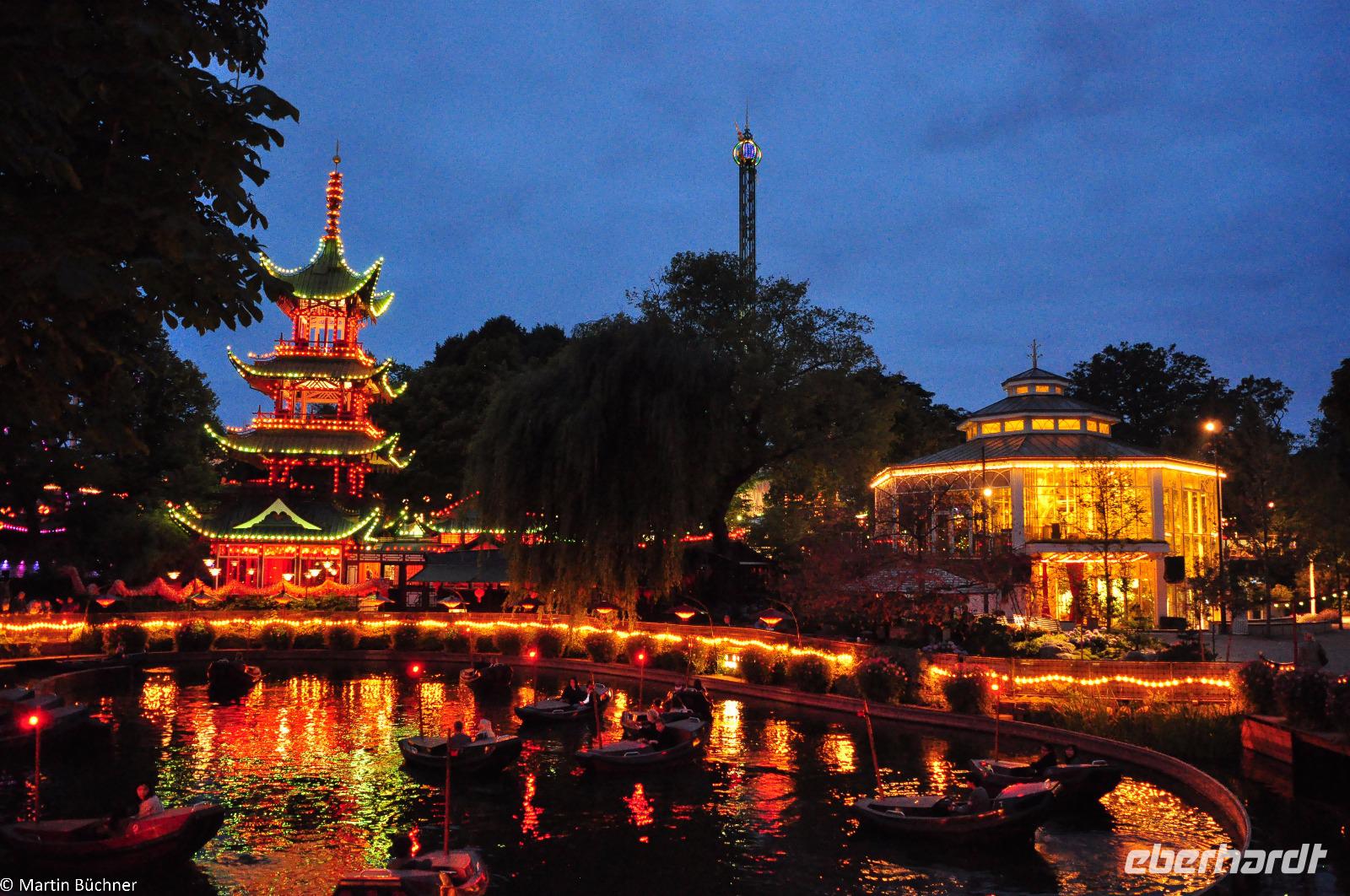 Am Abend treffen wir uns am Tivoli. Der älteste Freizeitpark der Welt entfaltet besonders in der Abendstimmung eine fantastische Atmosphäre. In einem der schönen Restaurants erhalten wir unser Abendessen. Der Tivoli liegt in Gehweite zu unserem Hotel.