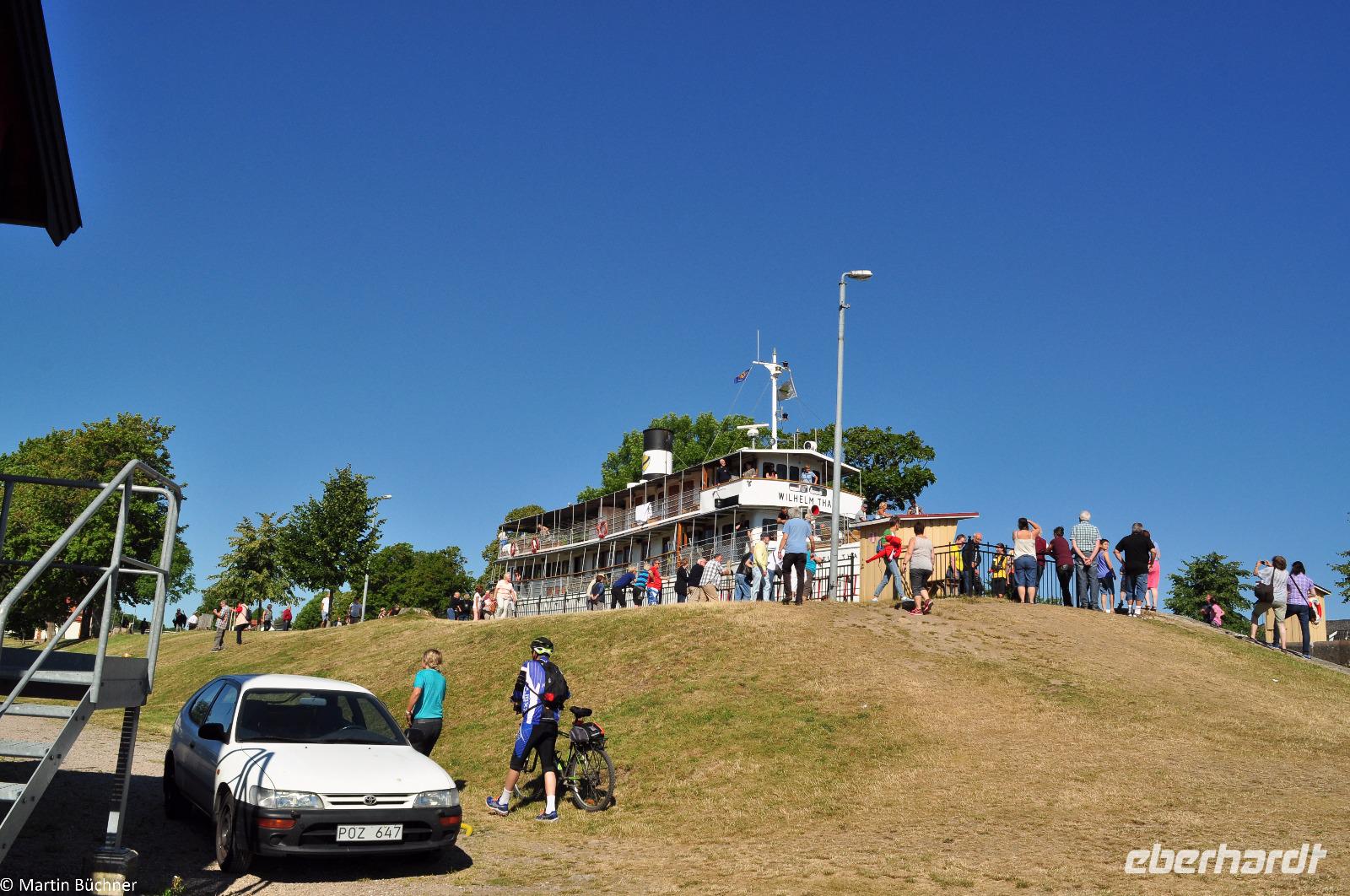 Der Tag beginnt mit einem Stopp am Göta Kanal - dem wunderschönen blauen Band Schwedens. Wenn man Glück hat kann man einen der alten Dampfer fahren sehen. Wenn man ganz viel Glück hat, trifft man auf die „Wilhelm Tham", das älteste Schiff der Flotte.