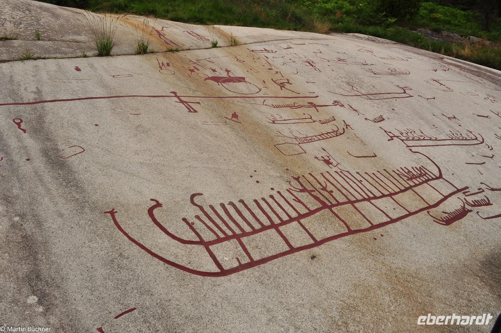 Wir verabschieden uns am Morgen von unseren Fluggästen. Anschließend besichtigen wir noch das Rathaus von Innen, da es am Vortrag (Sonntag), leider geschlossen war. Wir verlassen die Stadt über die E6 in Richtung Göteborg. Auf dem Weg besuchen wir die Felsritzungen von Tanum Hede, die zum UNESCO Weltkulturerbe gehören und zu den umfangreichsten Ansammlungen Skandinaviens zählen.