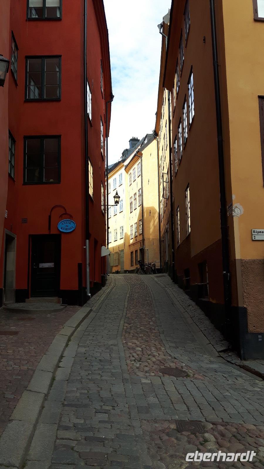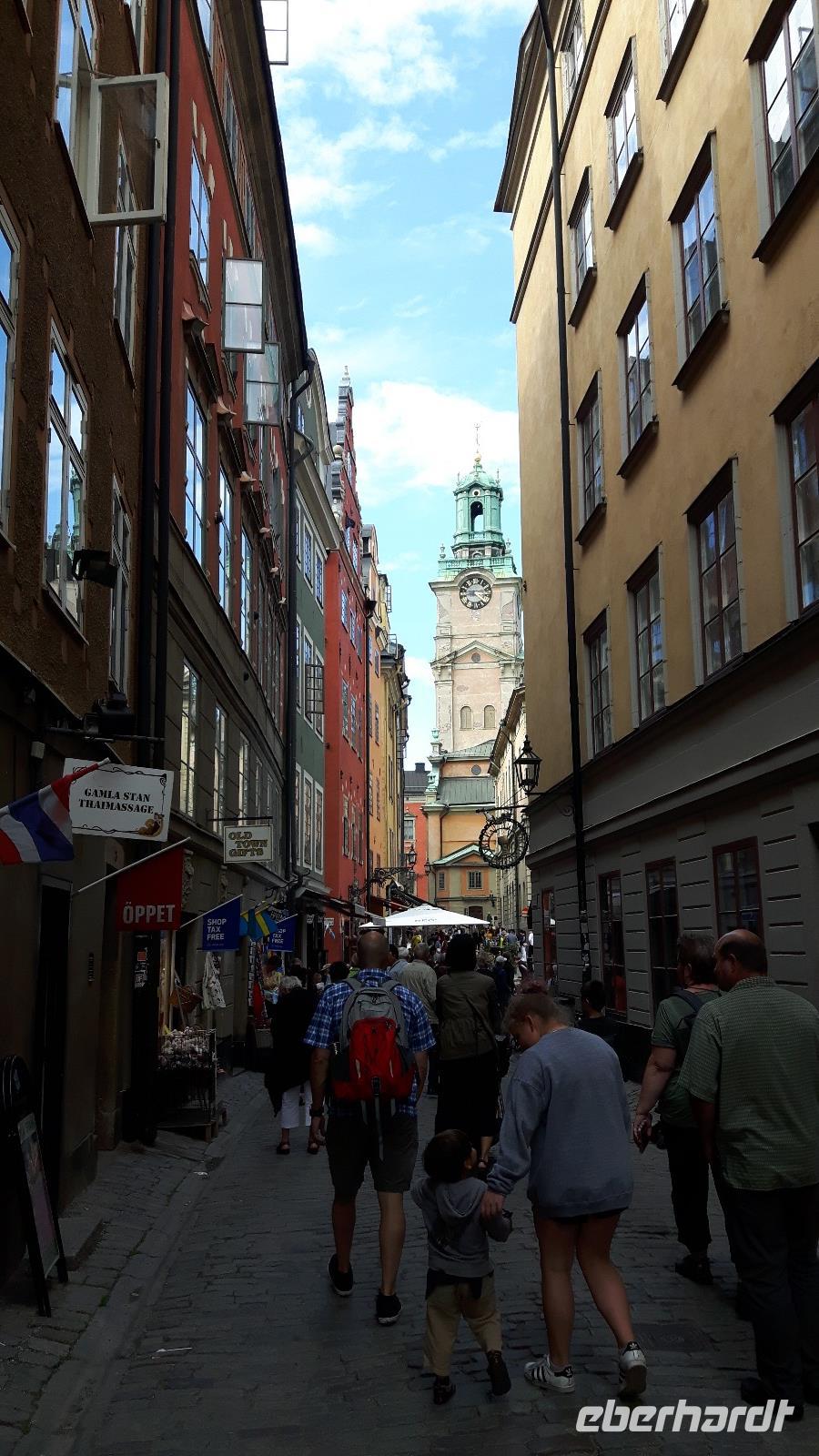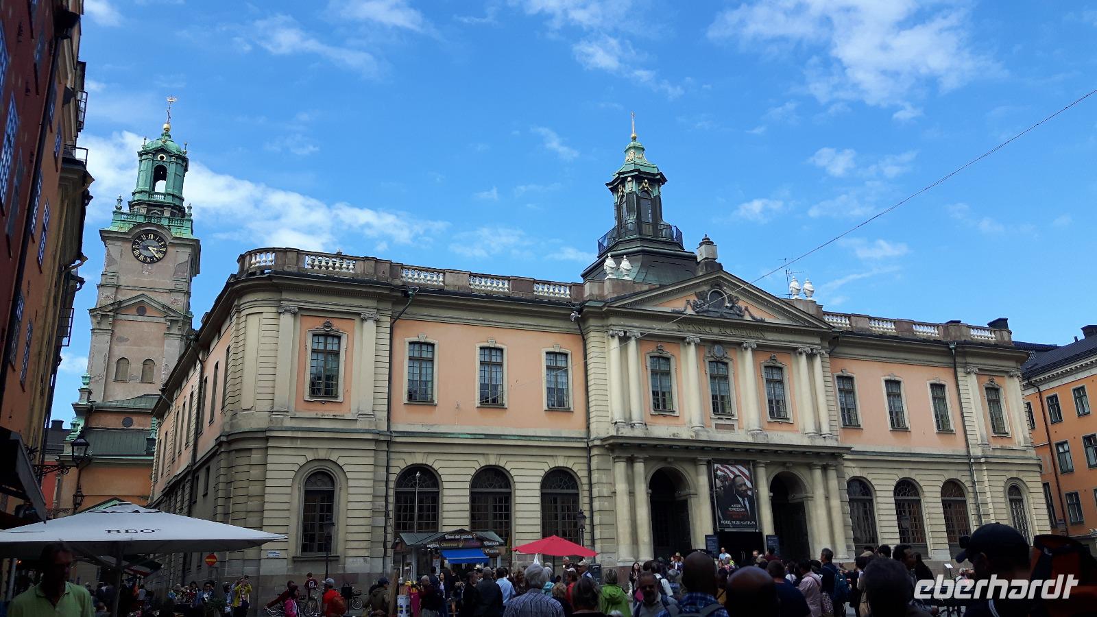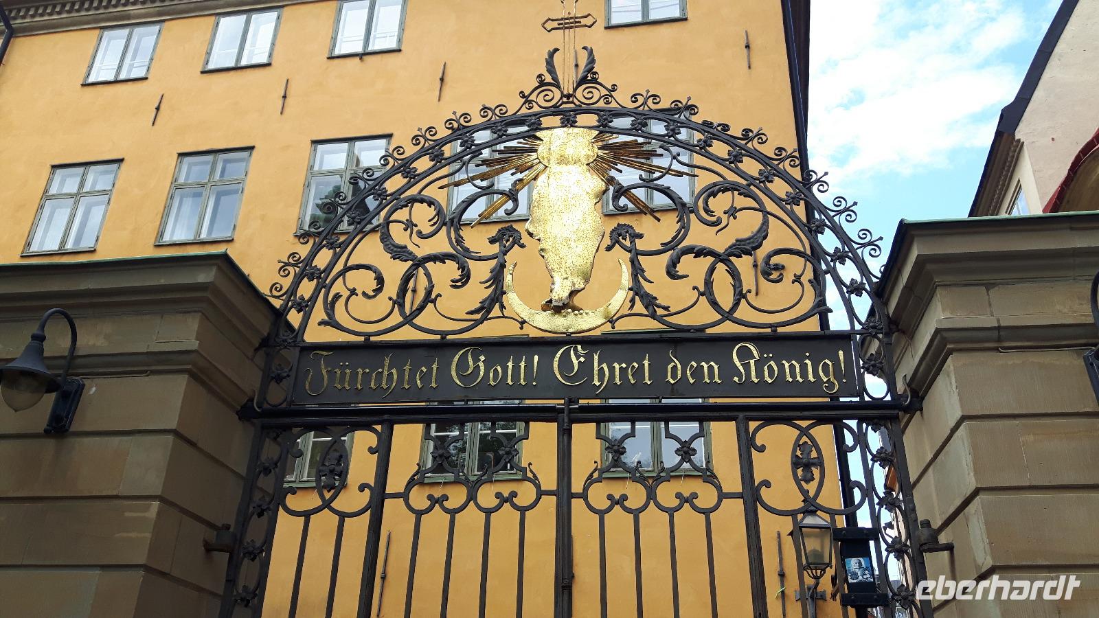 Ein kleiner zusätzlicher Abstecher führte uns am Morgen nach Berg, am westlichen Ufer des Roxen-Sees an der Mündung des Göta-Kanals in diesen See, gelegen. Bekannt ist der Ort vor allem wegen seiner Schleusen, denn die Schleusen des Göta-Kanals sind beliebte Ausflugsziele und jede Schleusung ist ein sehenswertes Schauspiel. Die hiesige Anlage umfasst sieben Schleusen und danach zwei weitere Doppelschleusen - echt sehenswert, wie die Schiffe den Höhenunterschied von 18,8 Metern überwinden! Leider gab es so früh am Morgen noch keine Schleusung, aber es war trotzdem interessant. Warten konnten wir auch nicht, denn von hier aus waren es schließlich noch knapp 200 Kilometer bis in die schwedische Hauptstadt Stockholm. Pünktlich am Mittag erreichten wir das Stadthaus Stockholms, den Ausgangspunkt für unsere Stadtrundfahrt durch die schwedische Hauptstadt! „Venedig des Nordens", „Schwimmende Stadt", „Kleinste Großstadt bzw. größte Kleinstadt der Welt" - Stockholm hat viele Namen und begeistert wahrhaft zu jeder Jahreszeit. Die Stadt liegt malerisch zwischen Mälernsee und Ostsee und den Großteil ihres Charmes bezieht die Metropole aus dieser Lage. Auf 14 Inseln verteilen sich die älteren Stadtviertel, charakterisiert durch zahlreiche historische Gebäude mit Kupferdächern und goldüberzogenen Turmhauben, sowie die von moderner Architektur geprägten Außenbezirke. Unsere charmante Stadtführerin Benedikta verstand es zudem hervorragend, uns ihre Stadt näherzubringen. Inmitten der Stadt befand sich übrigens auch unser Hotel „Clarion Hotel Amaranten" - auf der Insel Kungsholmen ganz in der Nähe des Stadthauses und damit hatten wir wiederum einen perfekten Ausgangspunkt, um die schwedische Metropole zu erkunden. Ein leckeres Abend-Menü erwartete uns ebenso und so manch einer unserer Gäste nutzte danach gut gestärkt die Gelegenheit zu einem abendlichen Spaziergang durch die Altstadt „Gamla Stan", welche zu den größten und besterhaltenen historischen Stadtkernen Europas zählt und die Stadt im 13. Jahrhundert gegründet wurde. Für das besondere Flair von Gamla Stan sorgen die schmalen, verwinkelten Gässchen mit Kopfsteinpflaster und die Häuschen in sämtlichen Gelbtönen. Hinter ihren Fassaden kann man auch heute noch Kellergewölbe und Kalkmalereien aus dem Mittelalter entdecken.