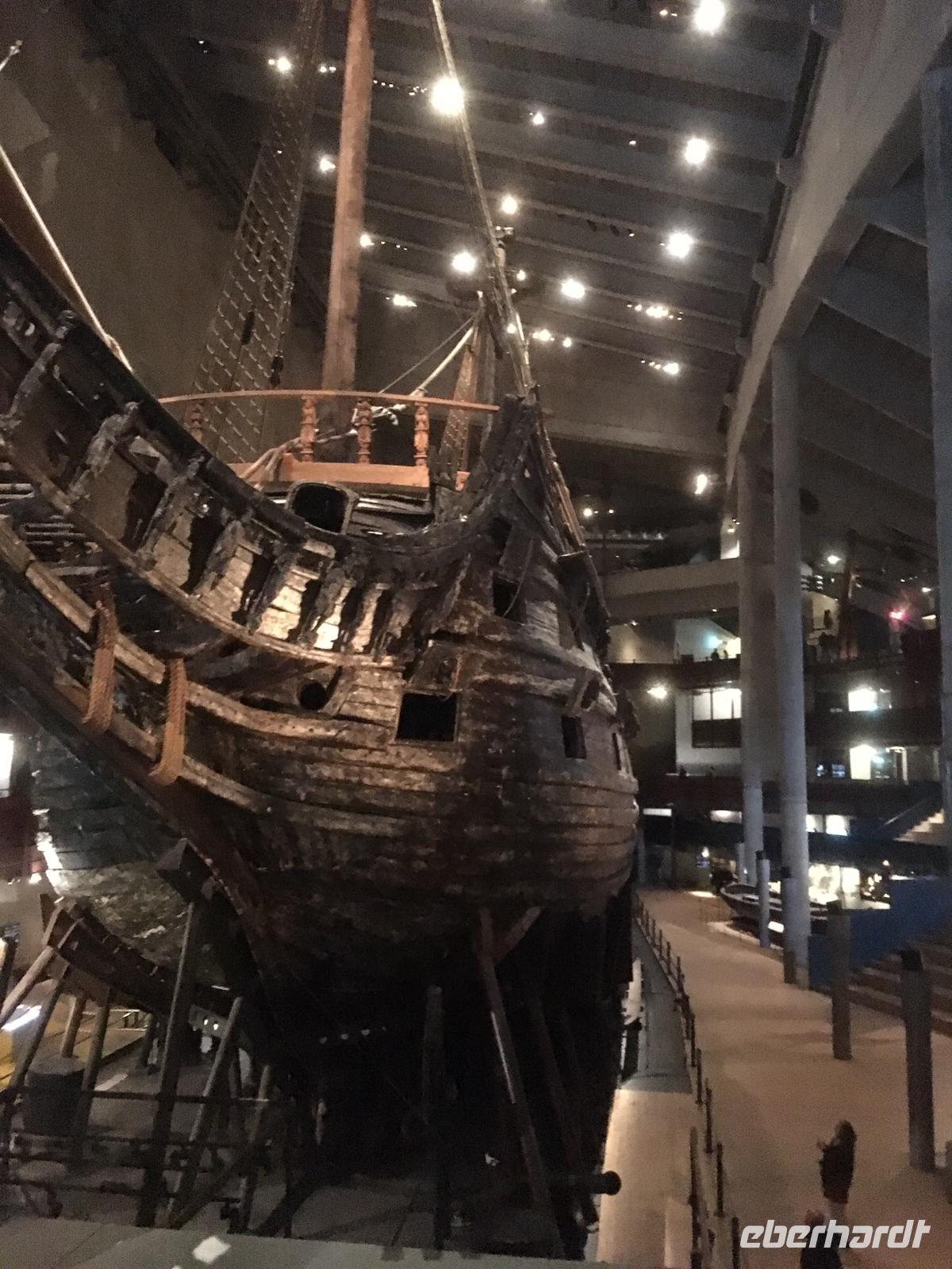 Auch der heutige Tag stand nochmals ganz im Zeichen von Stockholm und so besuchten wir zunächst am zeitigen Vormittag das weltberühmte Vasa-Museum. Das war gut so, denn nur so früh hat man wirklich die Gelegenheit, dieses Museum zu genießen und nicht mit den vielen Touristen zu teilen. Die „Vasa" ist ein außergewöhnlicher Kunstschatz, denn es ist das weltweit einzige aus dem 17. Jahrhundert erhaltene Schiff und besteht noch zu über 97 Prozent aus Originalteilen. Zur Dekoration des Schiffes zählen hunderte kunstvoll geschnitzter Figuren. Das Kriegsschiff Vasa sank 1628 auf seiner Jungfern-Fahrt mitten in Stockholm und wurde genau 333 Jahre später, im Jahre 1961, geborgen. Die Restaurierungsarbeiten, während derer das Schiff Schritt für Schritt, sorgfältig und mit viel Liebe zum Detail nahezu wieder in seinen Originalzustand versetzt wurde, dauerten fast ein halbes Jahrhundert an und man kann hier wirklich vom „größten Puzzle der Welt" sprechen. Die ursprüngliche Höhe der Masten lässt sich anhand der aus dem Dach des eigens errichteten Museums ragenden Takelage ablesen. Das Vasa-Museum ist heutzutage das meistbesuchte Museum Skandinaviens und neun verschiedene Ausstellungen rund um das Schiff gewähren einen Einblick in das Leben an Bord. Nicht verpassen durften wir auch die interessante Filmvorführung über die Vasa in deutscher Sprache! Nach dem interessanten Besuch des Vasa-Museums sollte es nun auf eine 3-stündige Schärenkreuzfahrt von Stockholm zur Insel Vaxholm gehen. Leider regnete es, aber das schlechte Wetter konnte unsere Laune nicht trüben. Das eindrucksvollste an dieser Tour war ganz einfach die unberührte Natur, die man unweit der Stadt zu sehen bekommt, sowie die endlose Weite der Ostsee mit den unzähligen kleinen Inseln. Schön anzusehen waren auch die Villen und Holzhäuschen an den Abhängen, die sich durch ihren typisch schwedischen Baustil hervorheben und dadurch besonders idyllisch wirkten. Viele Schweden verbringen hier ihre Wochenenden oder sogar den Sommerurlaub und genießen die pure Ruhe im Grünen. Die historische Hauptattraktion auf der Fahrt war allerdings das Kastell Vaxholm, das in der Regierungszeit von Gustav Vasa zur Bewachung Stockholms von der Seeseite her errichtet wurde. Den Nachmittag konnten wir wiederum auch hier ganz individuell für eigene Erkundungen in der schwedischen Hauptstadt nutzen.