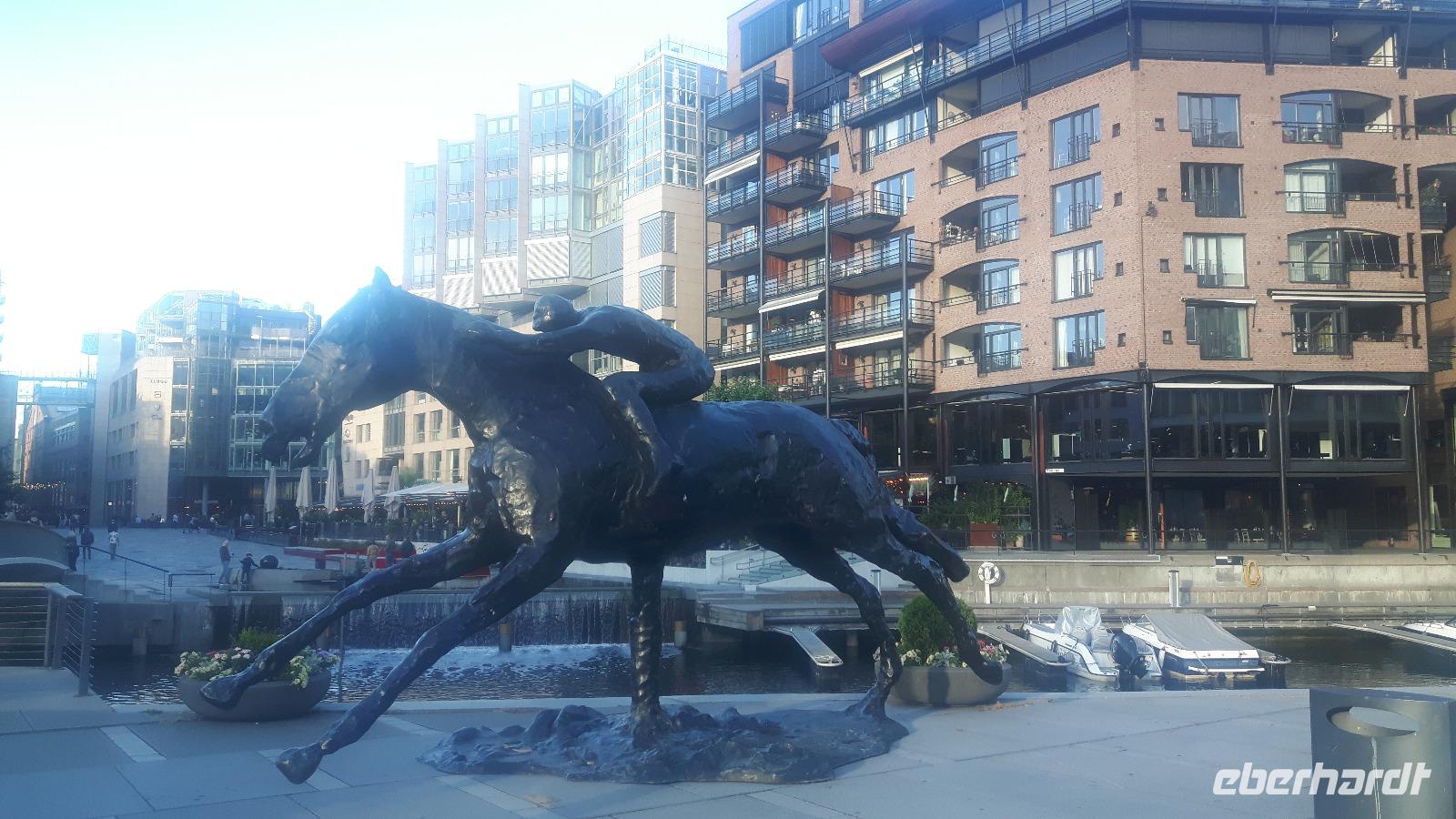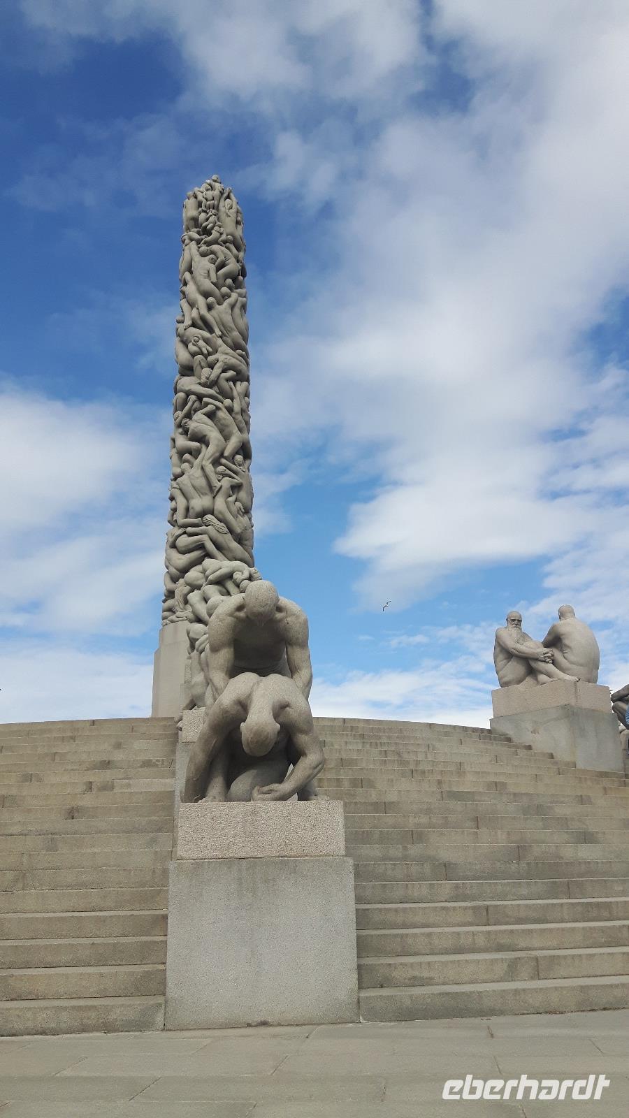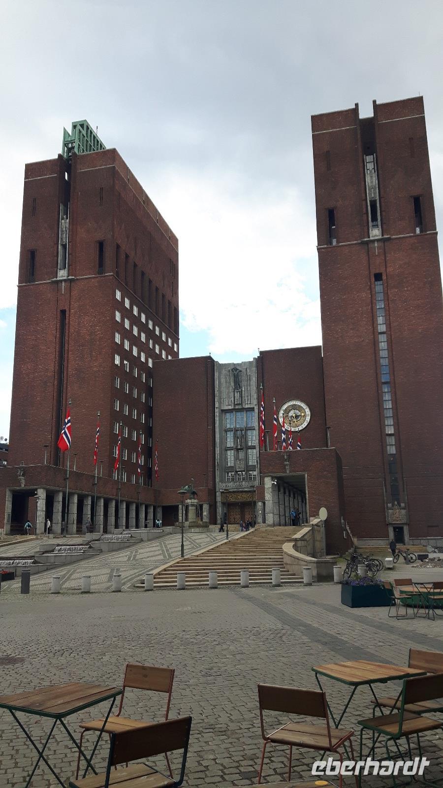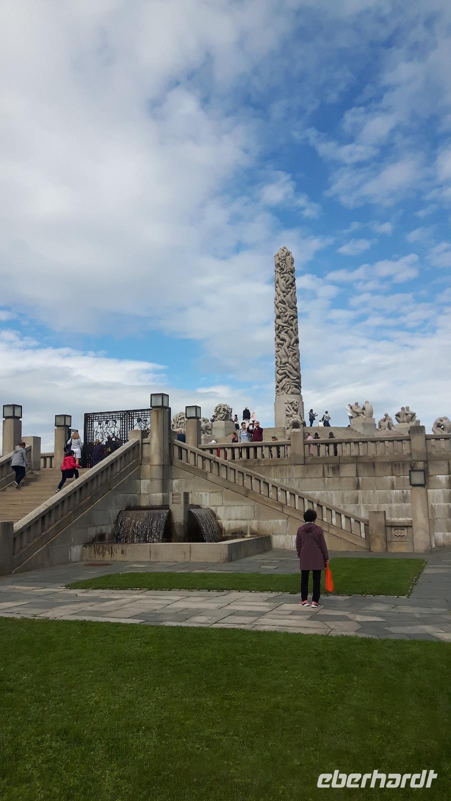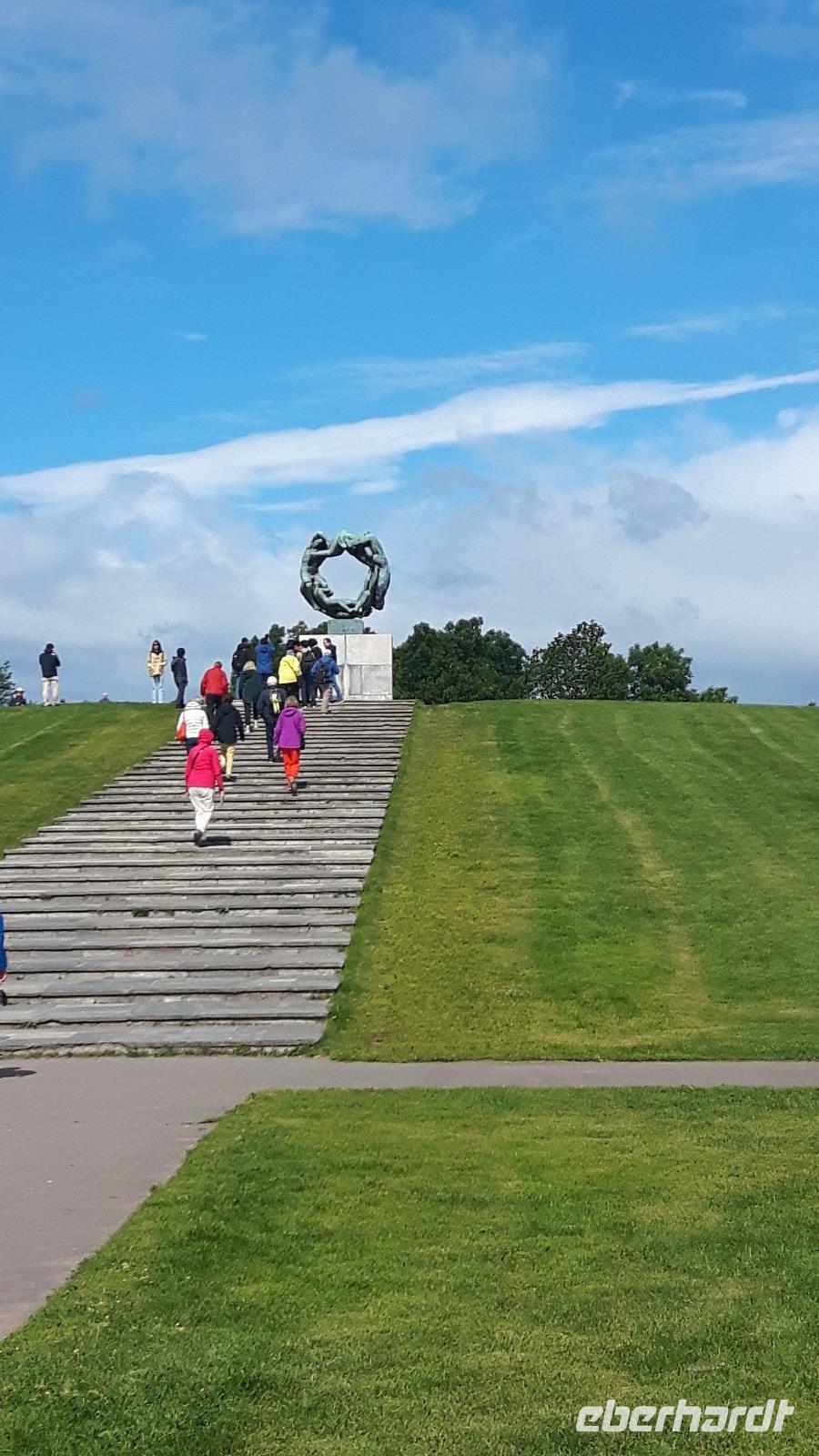 Schade, die schöne Zeit in der schwedischen Metropole war nun auch schon wieder vorüber, aber eine weitere skandinavische Hauptstadt wollte von uns erobert werden... - Oslo, die norwegische Hauptstadt sollte unser nächstes Ziel sein. Bevor es allerdings soweit war, legten wir noch einen kleinen Aufenthalt am Schloss Gripsholm ein. Das Schloss wurde bereits im 14. Jahrhundert errichtet und durch den gleichnamigen Roman von Kurt Tucholsky besonders bekannt. Die malerische Lage am Südufer des Mälernsees begeisterte uns und lud uns kurz zum Verweilen ein. Später, zur Mittagszeit, stoppten wir dann im Norden des Vänernsees, in der Nähe von Kristinehamn. Hier befindet sich immerhin eine Picasso-Skulptur, die dessen Frau Jacqueline darstellen soll und die ursprünglich niemand haben wollte. Auf den Hinweistafeln in der Nähe der Skulptur ist zu lesen, warum die Skulptur ausgerechnet in Kristinehamn aufgestellt wurde - dies sei Bengt Olson zu verdanken, einem Künstler aus Kristinehamn. Er habe seine Stadt dazu angeregt, eine Bitte an Picasso zu schicken. Picasso schickte eine Fotomontage zurück, in der ein Modell der Skulptur in eine Landschaft hineinkopiert war. Die 15 Meter hohe Skulptur gilt als das weltweit größte Picasso-Kunstwerk - wer hätte das gedacht, dieses Kunstwerk ausgerechnet in Schweden zu finden? Naja, über Kunst lässt sich bekanntlich streiten und jeder von uns hatte seine eigene Meinung darüber. Über Karlstadt und Örebro erreichten wir am Nachmittag die schwedisch-norwegische Grenze und von hier waren es dann nur noch knappe 100 Kilometer bis in die norwegische Metropole Oslo! Nachdem wir uns in unserem zentralen Hotel „Scandic Victoria" eingerichtet hatten, genossen wir das reichhaltige Abendbuffet und so manch einer nutzte auch heute Abend wieder die Gelegenheit für einen ersten orientierenden Spaziergang durch die Innenstadt - schließlich wohnten wir nur einen Katzensprung vom Rathaus und der Fußgängerzone entfernt.
