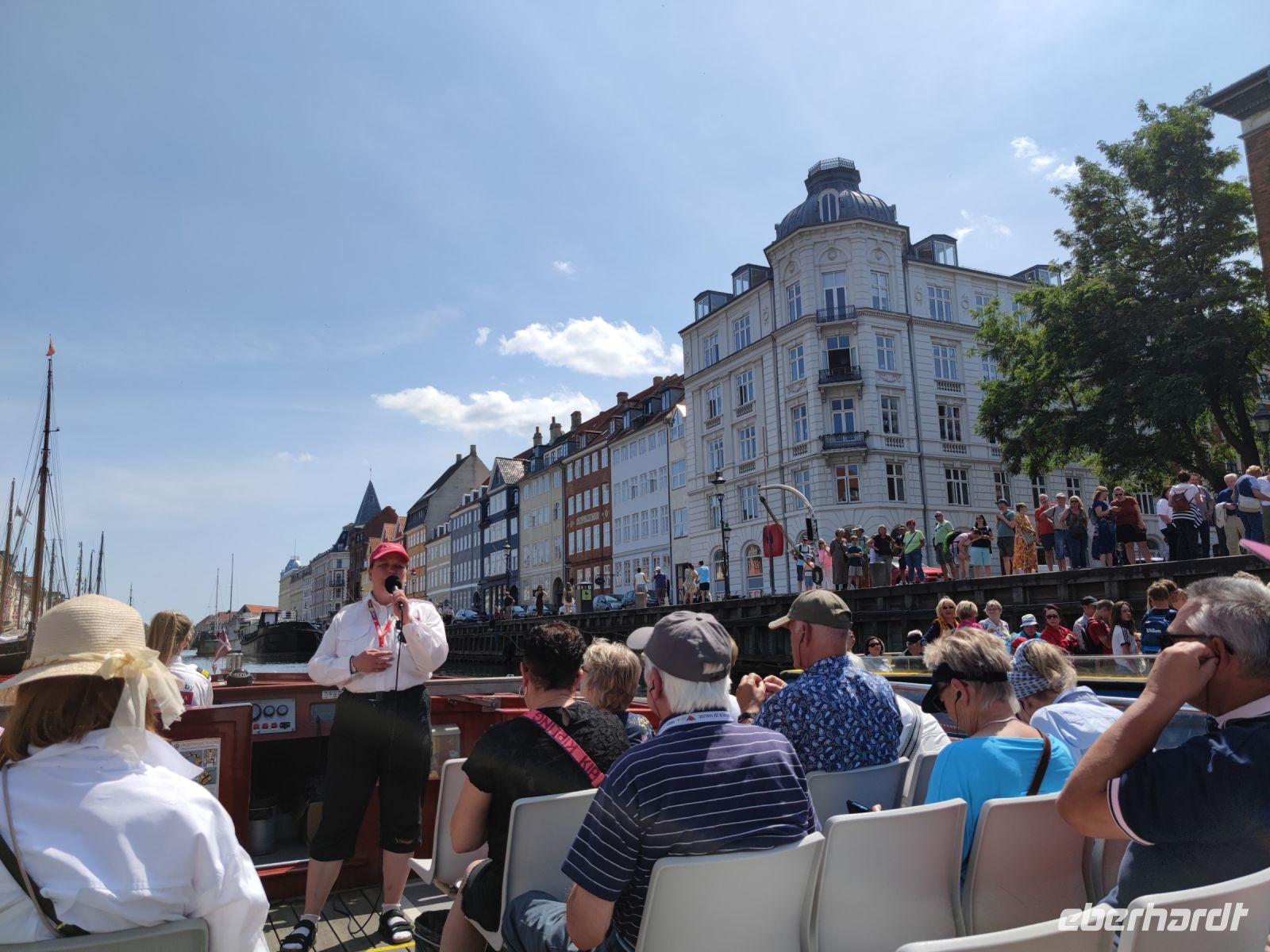 Nach dem Frühstück trafen wir uns mit unserer örtlichen Reiseleiterin zur dreistündigen Stadtrundfahrt. Unseren ersten Fotostopp legte Sie mit uns am Opernhaus ein. Anschließend besuchten wir die Frauenkirche und fuhren zur kleinen Meerjungfrau. Die Stadtrundfahrt endete am Schloss Amalienborg, wo wir unsere Stadtführerin verabschiedeten und uns die Wachablösung ansehen konnten. Vom Schlossplatz aus spazierten wir zur Bootsanlegestelle am Nyhavn, von wo aus die meisten Gäste unserer Gruppe an einer einstündigen Bootsfahrt teilnahmen. Anschließend hatten wir bis zum Abendessen Freizeit für eigene Erkundungen.