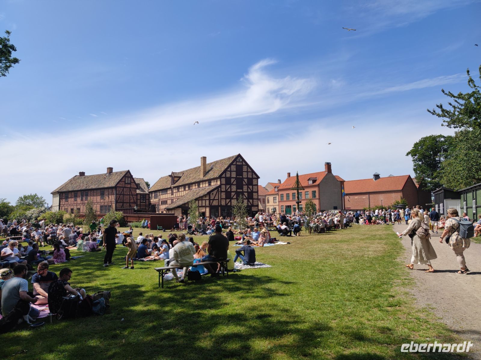 Am Morgen verließen wir Kopenhagen und fuhren entlang der Küstenstraße nach Helsingör. Am Strand von Rungsted legten wir einen Fotostopp ein und am Kulturhafen in Helsingör angekommen, blieb genügend Zeit für einen Spaziergang zum Schloss und für die Mittagspause. Im gesamten Hafenbereich waren Vorbereitungen für den Iron Man im Gange. Nach der Pause setzten wir mit der Fähre von Helsingör nach Helsingborg über und besuchten dort das Freilichtmuseum Fredriksdal. Es war Midsommer und auf dem Gelände war ein Birkenkranz geschmückter Midsommer-Baum aufgestellt worden. Vor ihm standen Sängerinnen und Musiker und Musiker, um die vielen Besucher zum Mitmachen und Tanzen zu animieren. Bereits beim ersten Lied fanden sich mit einem Blumenkranz geschmückte Mädchen und Familien zum Tanz um den Midsommer-Baum ein. Es war für uns ein tolles Erlebnis bei einem Midsommerfest dabei sein zu können. Am Nachmittag fuhren wir weiter zu unserem Hotel in Jönköpping, wo wir nach dem Abendessen die Gelegenheit zu einem Spaziergang am Vätternsee nutzten.