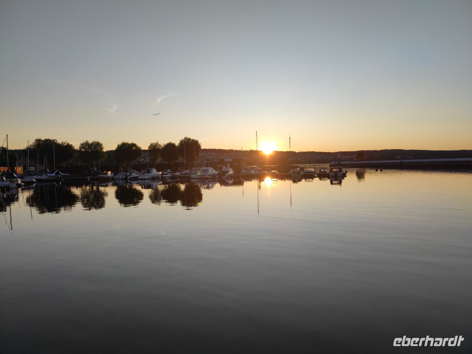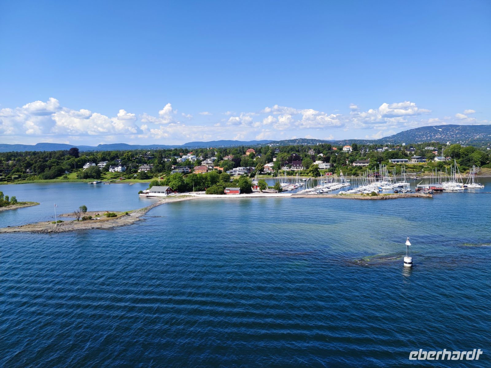 Am Vormittag hatten wir noch einmal Freizeit bis 11.00 Uhr und viele nutzten diese für einen Spaziergang in der Innenstadt. Danach fuhren wir unsere Fluggäste zum Bahnhof, von dem ein Shuttlezug zum Osloer Flughafen Gardemoen fährt. Mit allen anderen Gästen ging es im Bus zum Terminal der Color-Line. Pünktlich um 14.00 Uhr legte das Fährschiff ab. Wir hatten super Wetter! Es war heiß und das Sonnendeck bereits voll mit sonnenhungrigen Fahrgästen. Am Abend trafen wir uns vor dem Buffet-Restaurant zum gemeinsamen Abendessen. Ein schöner Abschluss des Tages, genau wie der faszinierende Sonnenuntergang