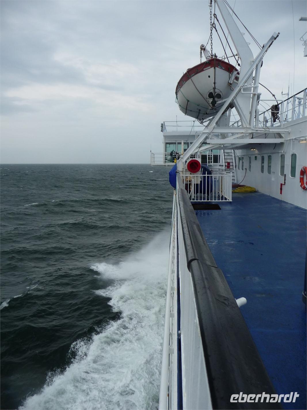 Freitag, der 29.07.2011- das Wetter ist schön und die Morgendämmerung taucht die sommerliche Landschaft in leuchtende Farben, als wir pünktlich um 5 Uhr am Dresdner Flughafen unsere Reise beginnen. Die Gäste haben es sich im 5-Sternebus bequem gemacht und beginnen so entspannt die Fahrt zum Fährhafen in Rostock. Es geht völlig staufrei und in ruhiger Fahrt zum Flughafen Leipzig-Halle und von da weiter durch den Hochfläming und Fläming zur der Raststätte Linumer Bruch oberhalb von Berlin, wo noch weitere gutgelaunte Gäste zusteigen. Im Gepäck ihre Wünsche, Träume und Erwartungen. Über Wittstock, vorbei an der Mecklenburger Seenplatte und der Mecklenburger Schweiz geht es zügig bis Rostock und hier zum Fährhafen, wo das Wetter eine erste Überraschung bereithält - einen ausgiebigen Regenschauer, der mich ordentlich einweicht, während ich die Fährtickets hole. Aus dem Bus heraus können wir dann beobachten, wie die Fähre zum Landungssteg heranfährt, davor wendet und präzise anlegt. Wir fahren darauf und alle Gäste kommen so im Trocknen auf die Fähre nach Gedser. Pünktlich 13. Uhr beginnt die Überfahrt mit der Scandlines und wir haben 1 ¾ Stunde Zeit zum Entspannen, Schauen, Essen, Trinken und Einkaufen.