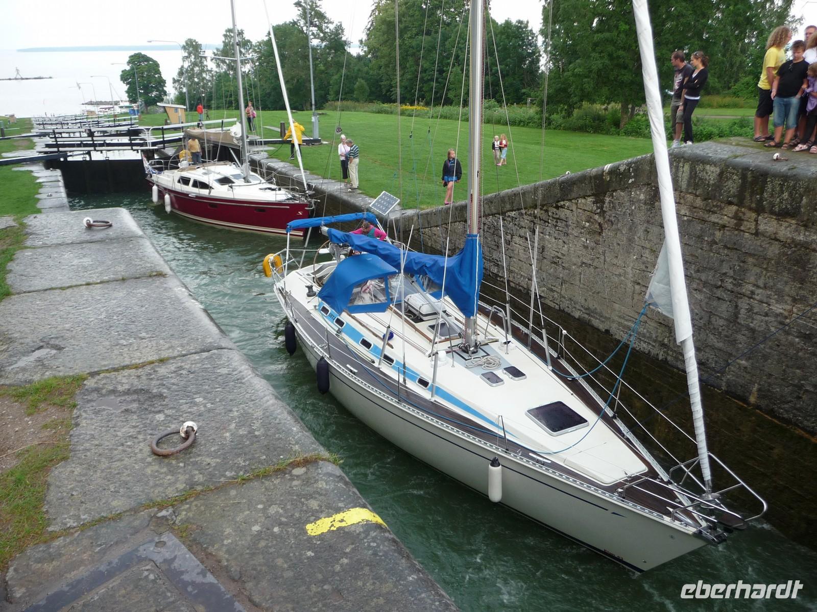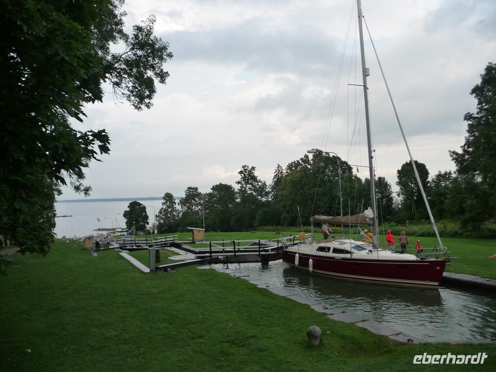 und das Zentrum der Stadt besichtigen, dann weiter auf der Uferstraße des Vätternsees vorbei an Gränna - der Zuckerstangenstadt, der Ruine des Brahehus - hin zum Runenstein von Rök, dem Runenstein mit der längsten Innschrift und dem ersten Gedicht. Von da weiter nach Berg, um die Schleusentreppen des Göta-Kanals zu besichtigen.