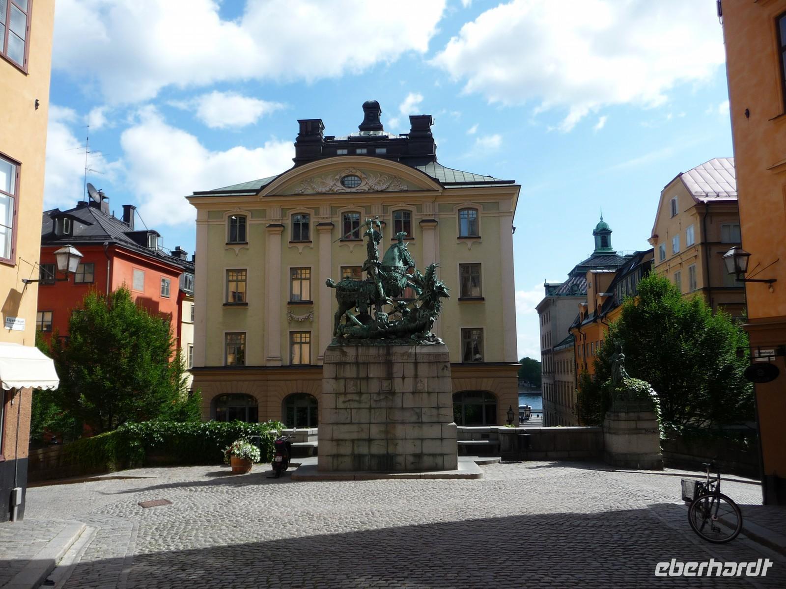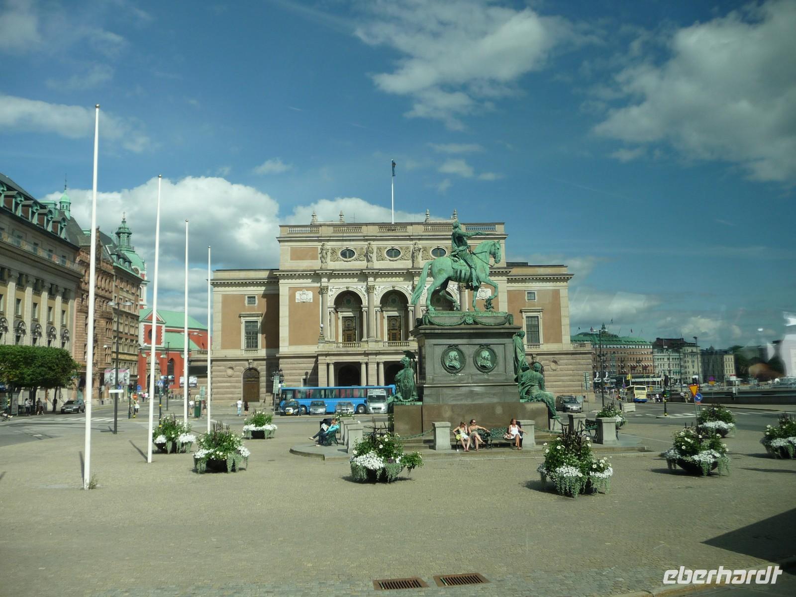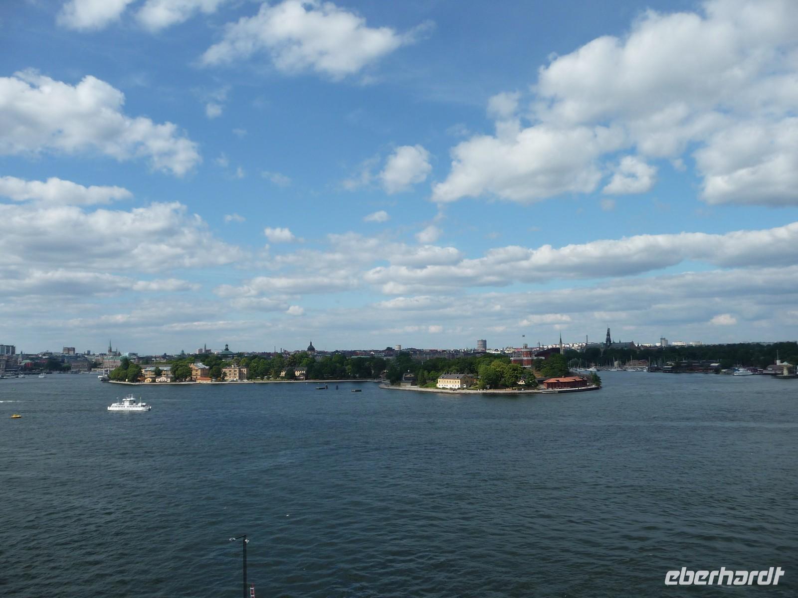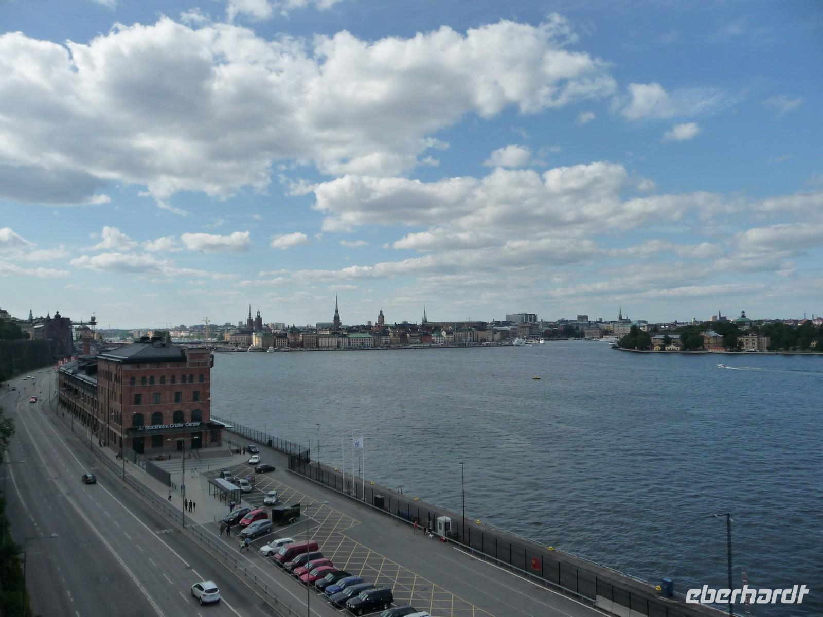 Auch der dritte Tag begrüßt uns mit Sonnenschein und wer Zeit hat spaziert vor oder nach dem Frühstück noch durch den kleinen Stadtpark von Linköping, hin zum Schloss, der sehenswerten Kirche und den Resten der Stadtmauer. 8:30 Uhr ist Gepäckladen und danach die Abfahrt nach Stockholm. Eine kurze Pause unterwegs und dann fahren wir auf der E 04 bis hinein ins Zentrum von Stockholm - 11:30 Uhr parken wir am Schloss. Wir wollen die Zeit nutzen und ich zeige den Gästen die Gassen der Altstadt, wo wir mit der Stadtführerin nicht hindurchgehen. Vorbei an der deutschen Kirche kommen wir so auch wieder zum Schloss, wo wir der Wachablösung zusehen können. Danach gönnen wir uns alle etwas Freizeit, machen Mittag am Bus und fahren 12:45 Uhr weiter zum Rathaus, wo wir uns mit Stadtführerin Erika treffen. Gemeinsam beginnen wir den geführten Stadtrundgang/