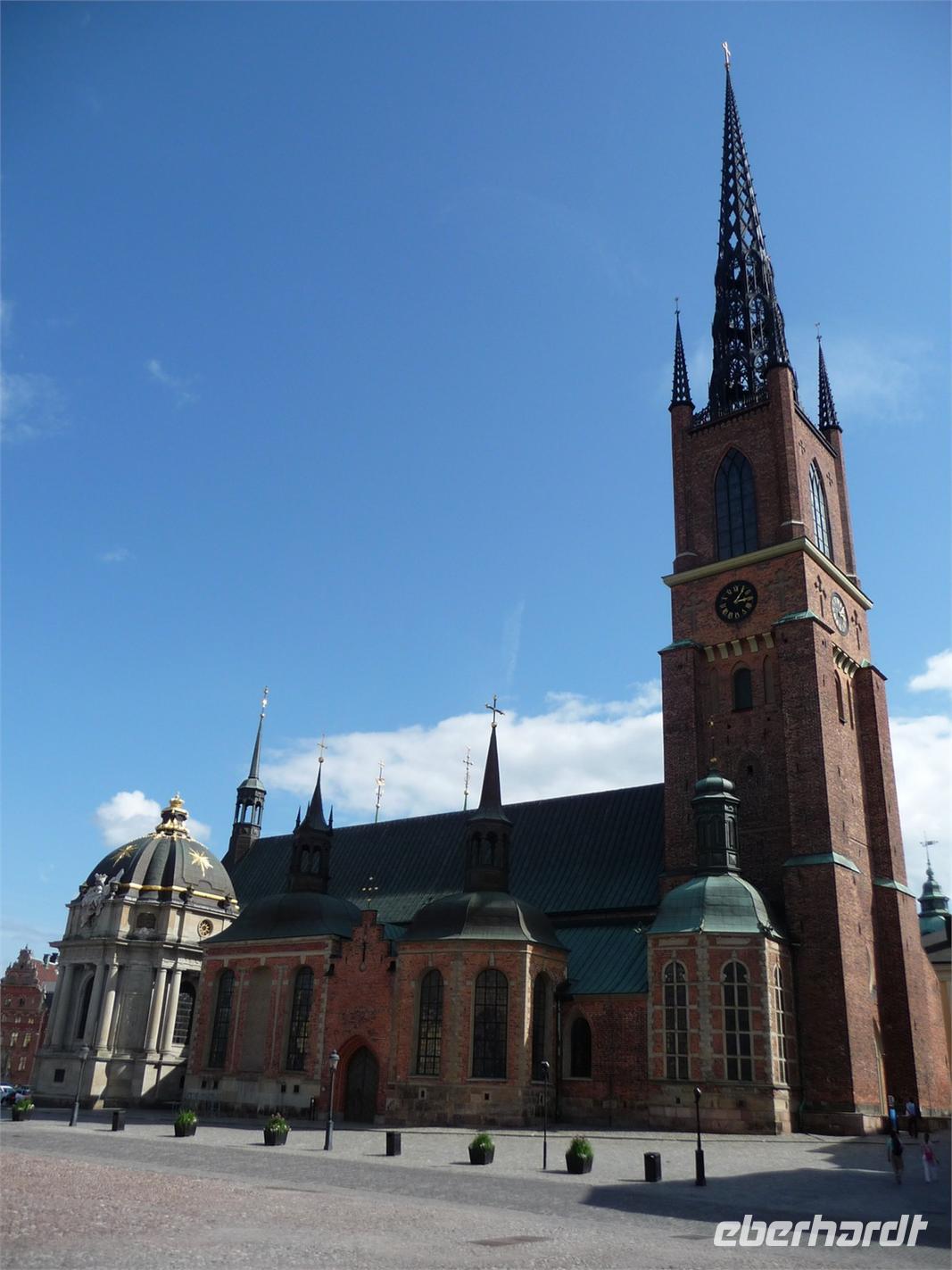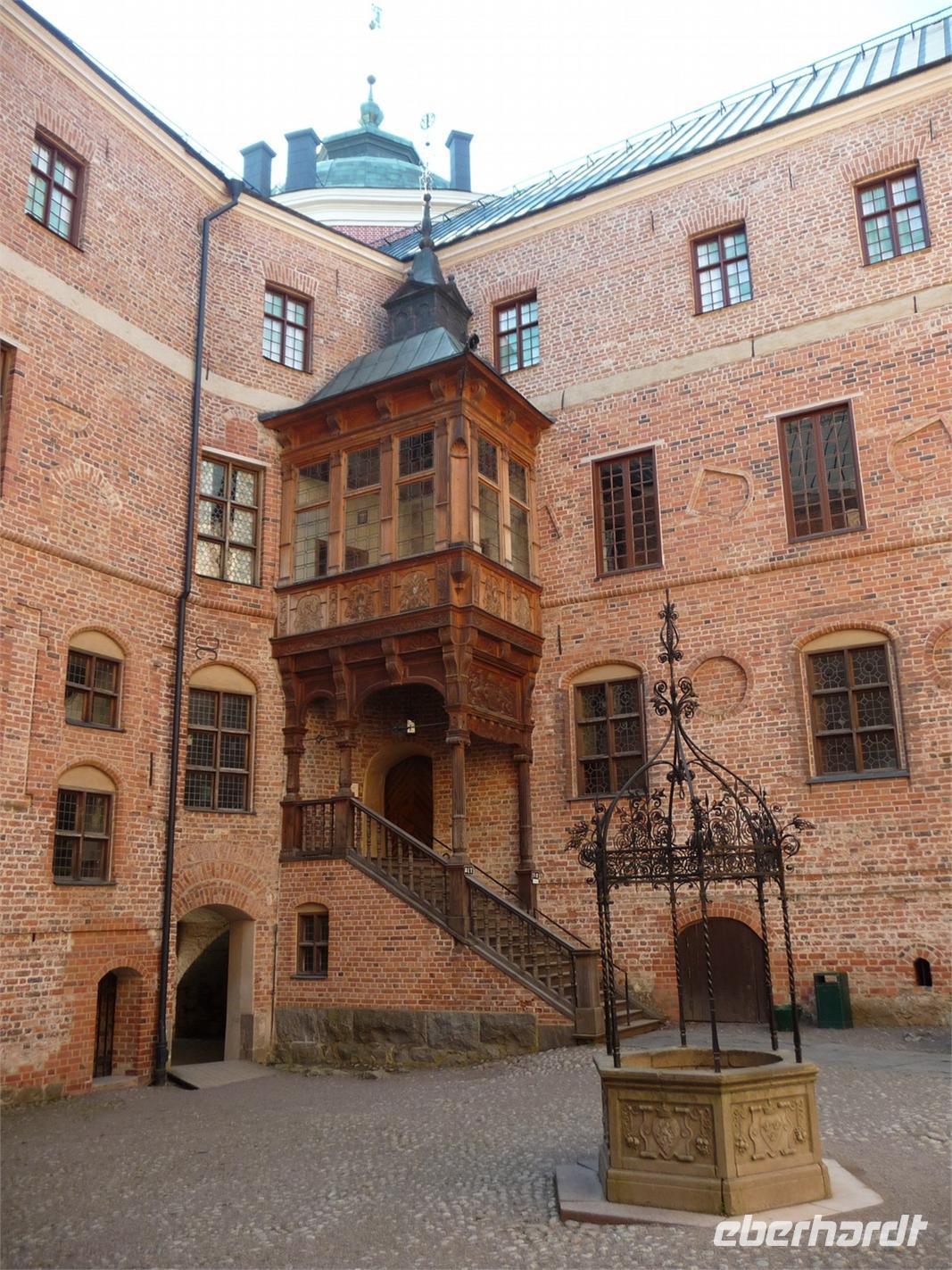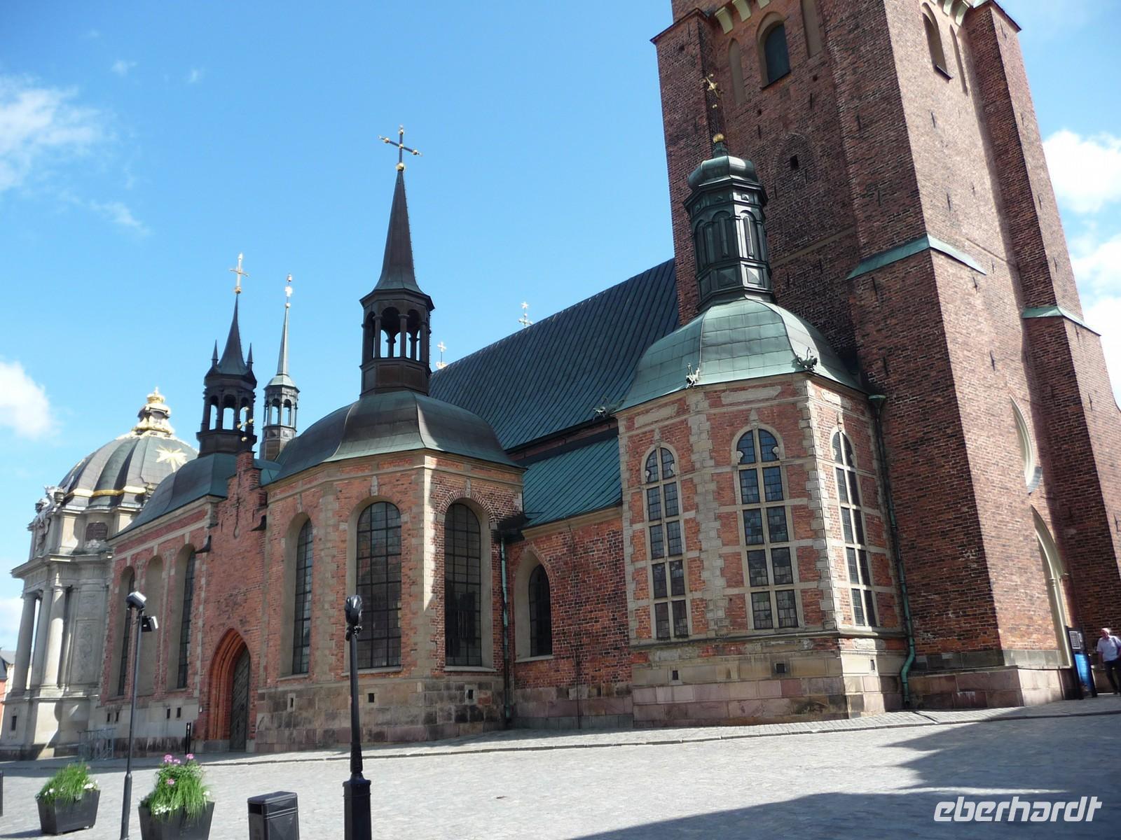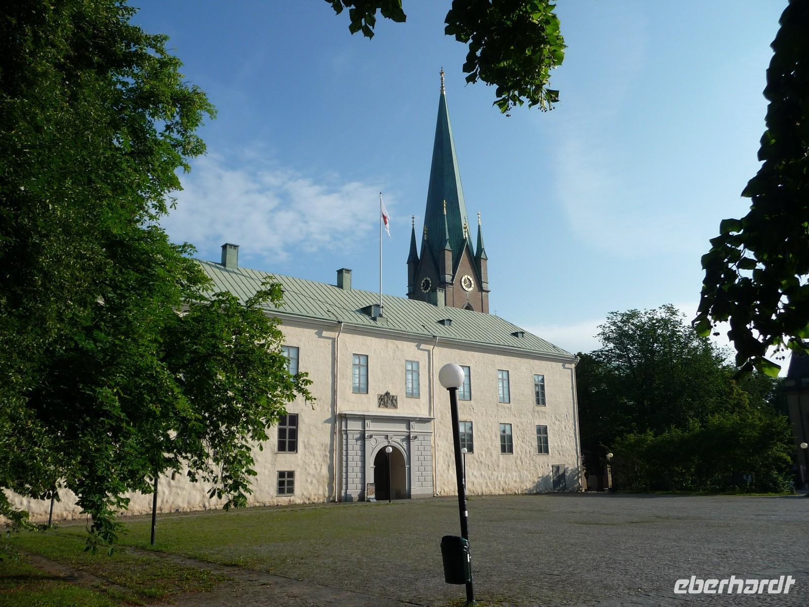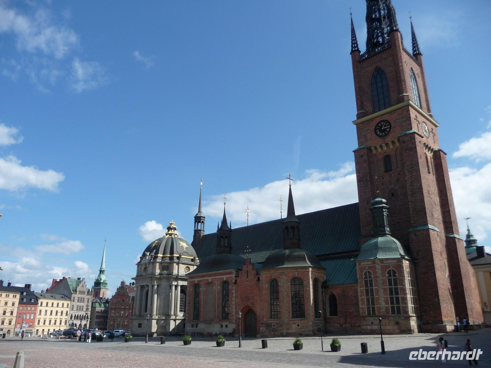 Auch der dritte Tag begrüßt uns mit Sonnenschein und wer Zeit hat spaziert vor oder nach dem Frühstück noch durch den kleinen Stadtpark von Linköping, hin zum Schloss, der sehenswerten Kirche und den Resten der Stadtmauer. 8:30 Uhr ist Gepäckladen und danach die Abfahrt nach Stockholm. Eine kurze Pause unterwegs und dann fahren wir auf der E 04 bis hinein ins Zentrum von Stockholm - 11:30 Uhr parken wir am Schloss. Wir wollen die Zeit nutzen und ich zeige den Gästen die Gassen der Altstadt, wo wir mit der Stadtführerin nicht hindurchgehen. Vorbei an der deutschen Kirche kommen wir so auch wieder zum Schloss, wo wir der Wachablösung zusehen können. Danach gönnen wir uns alle etwas Freizeit, machen Mittag am Bus und fahren 12:45 Uhr weiter zum Rathaus, wo wir uns mit Stadtführerin Erika treffen. Gemeinsam beginnen wir den geführten Stadtrundgang/