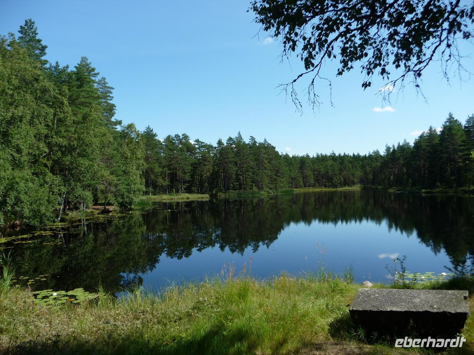 An einem kleinem See mit schönen Sitzgruppen im Wald, nach Karlstad, machen wir Mittag.
