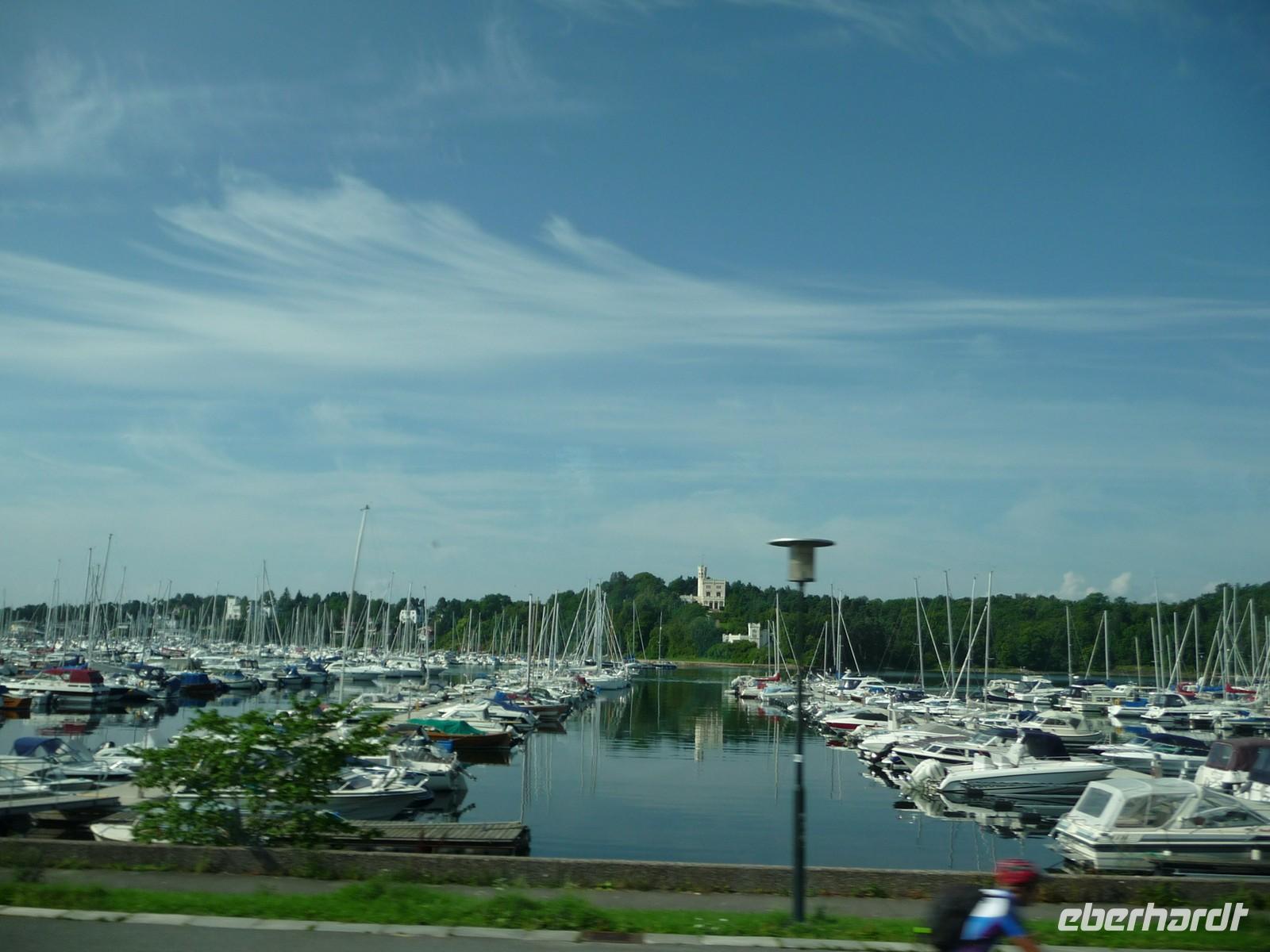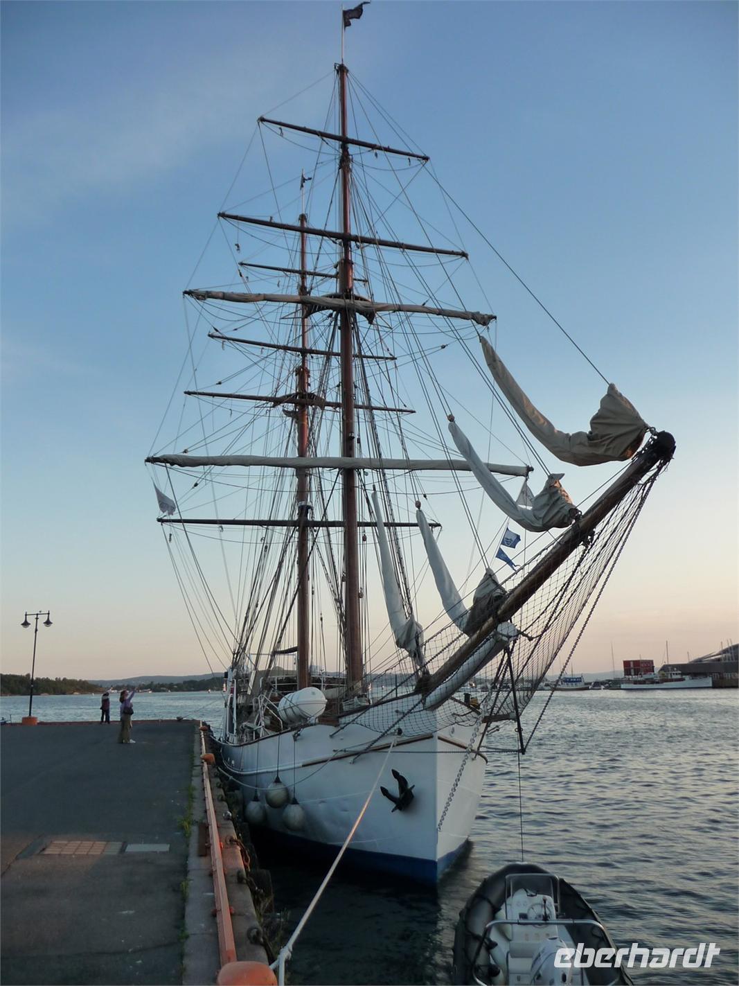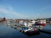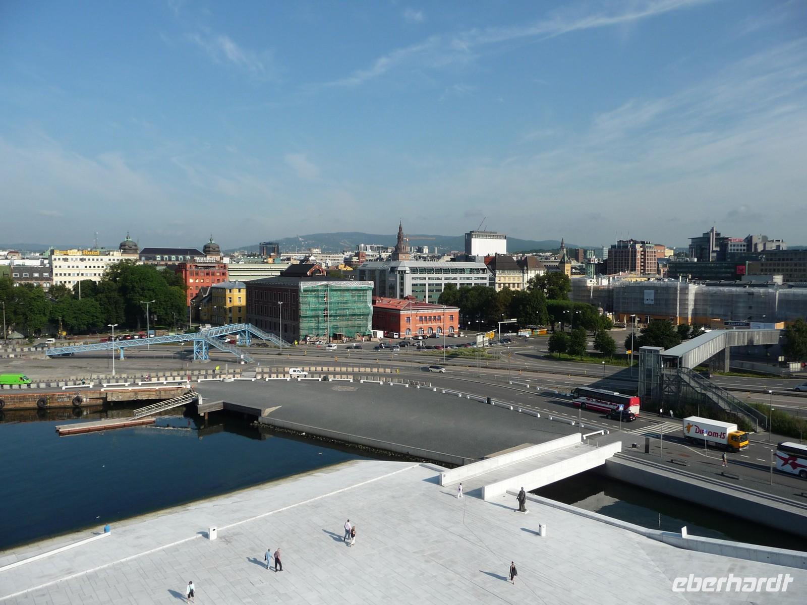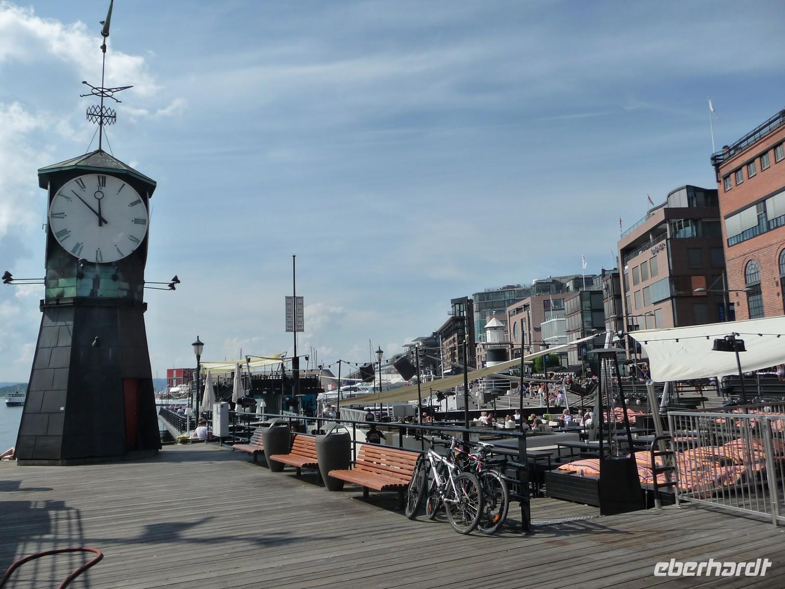 Die anschließende Weiterfahrt nach Oslo, mit einer Rast am Rastplatz vor dem Ortseingang, führt uns gegen 17:30 Uhr nach Oslo hinein und wir unternehmen doch noch die Auffahrt zum Holmenkollen - die Grenzkontrolle hat viel Zeit gekostet - schade!. So bleibt nur Zeit für die Besichtigung von 18:00 bis 18:30 Uhr. Zu wenig Zeit um noch mit der Bahn ganz hinauf in dieses imposante Bauwerk zu fahren, die beste Aussicht auf die Stadt müssen wir uns für den nächsten Besuch aufheben. 19 Uhr ist Check Inn im Hotel Rica Victoria - auch hier ganz im Zentrum der Stadt Oslo. Und so sind nach dem Abendessen nur ein paar Schritte bis zur Uferpromenade des Osloer Hafens.
