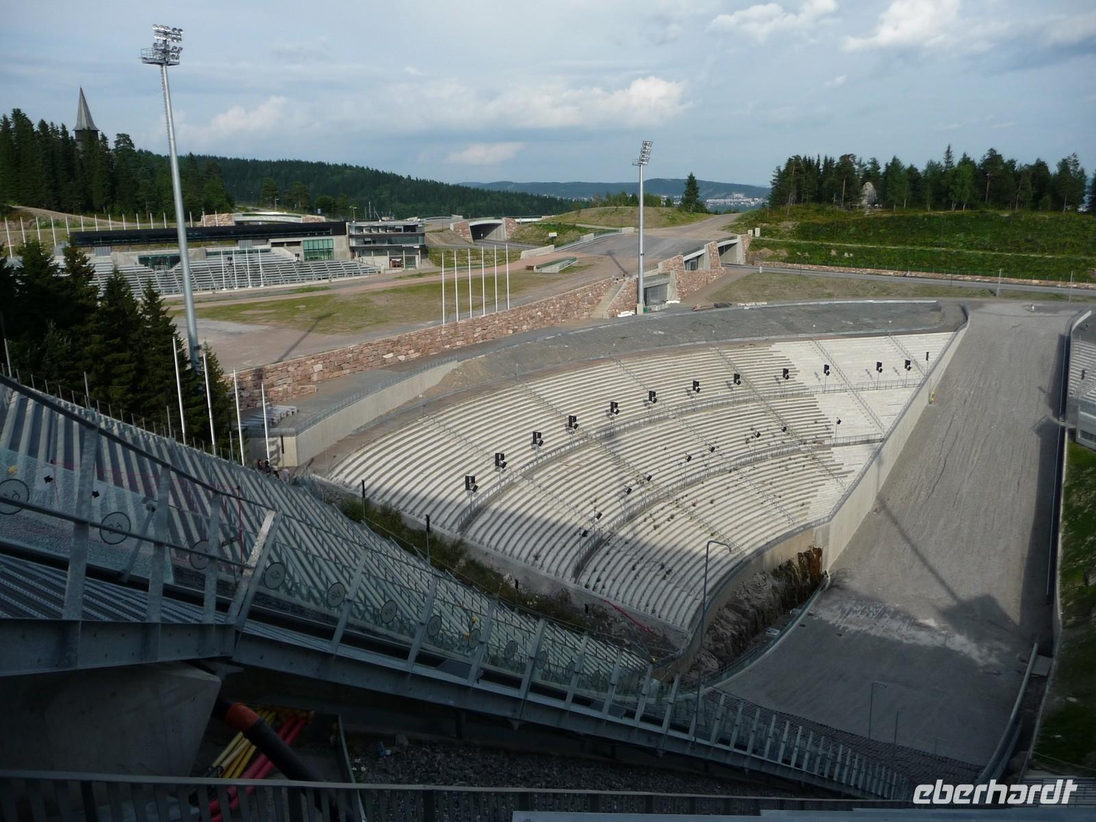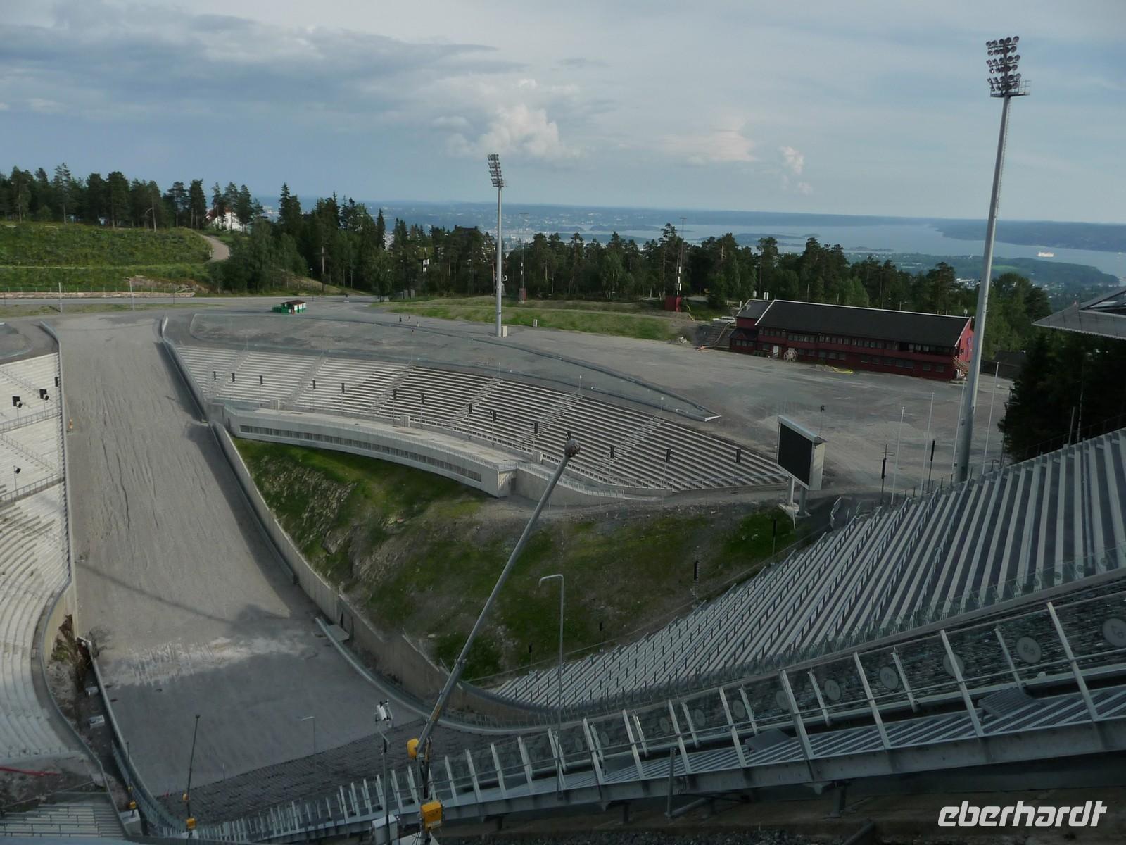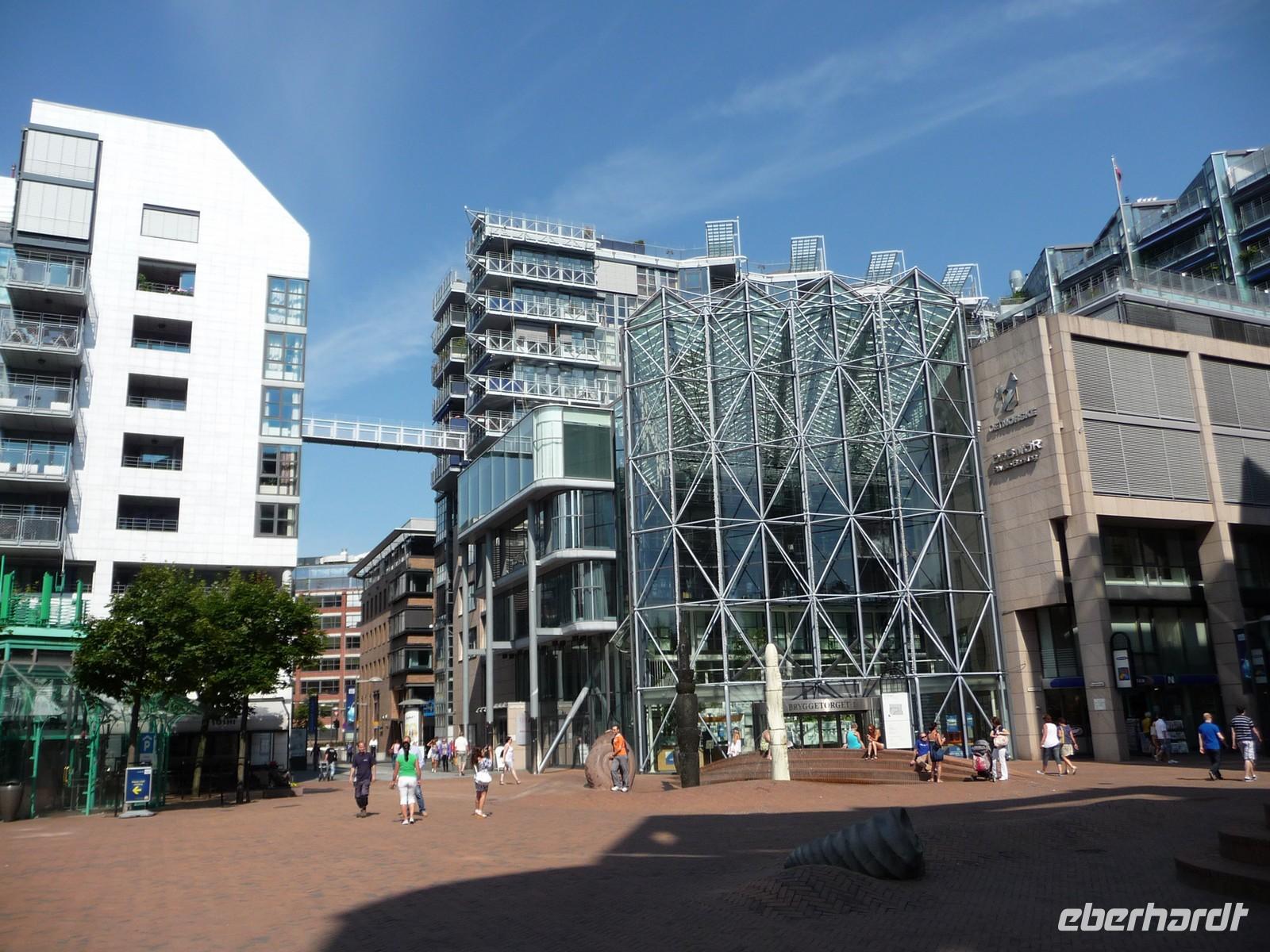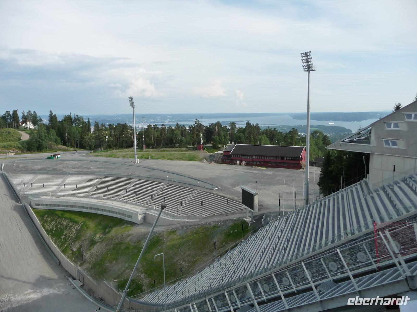 Die anschließende Weiterfahrt nach Oslo, mit einer Rast am Rastplatz vor dem Ortseingang, führt uns gegen 17:30 Uhr nach Oslo hinein und wir unternehmen doch noch die Auffahrt zum Holmenkollen - die Grenzkontrolle hat viel Zeit gekostet - schade!. So bleibt nur Zeit für die Besichtigung von 18:00 bis 18:30 Uhr. Zu wenig Zeit um noch mit der Bahn ganz hinauf in dieses imposante Bauwerk zu fahren, die beste Aussicht auf die Stadt müssen wir uns für den nächsten Besuch aufheben. 19 Uhr ist Check Inn im Hotel Rica Victoria - auch hier ganz im Zentrum der Stadt Oslo. Und so sind nach dem Abendessen nur ein paar Schritte bis zur Uferpromenade des Osloer Hafens.
