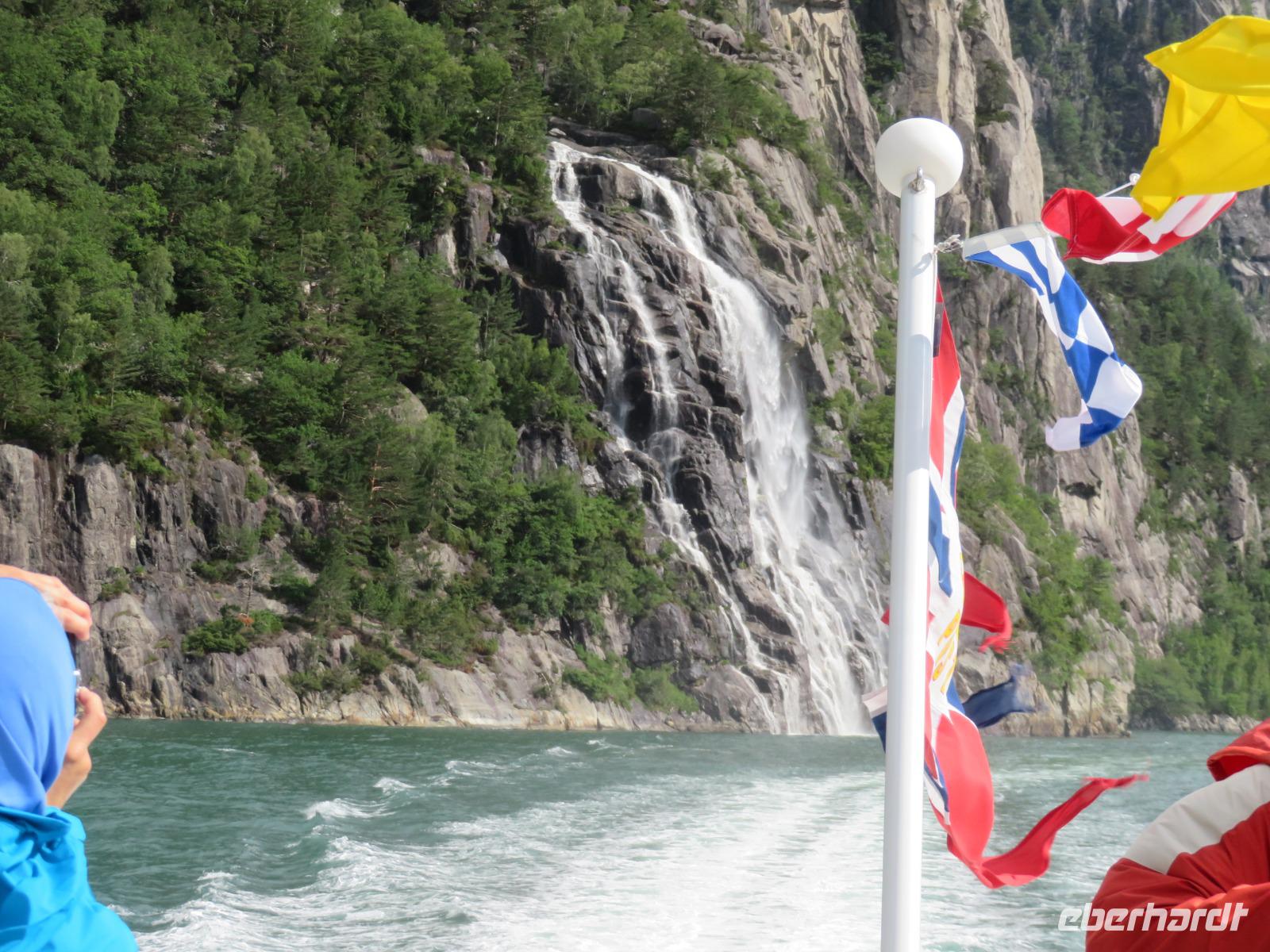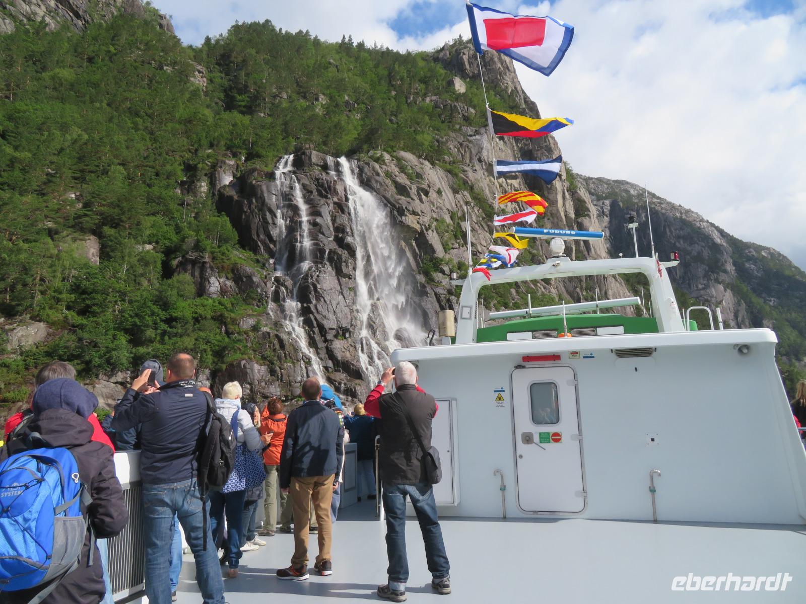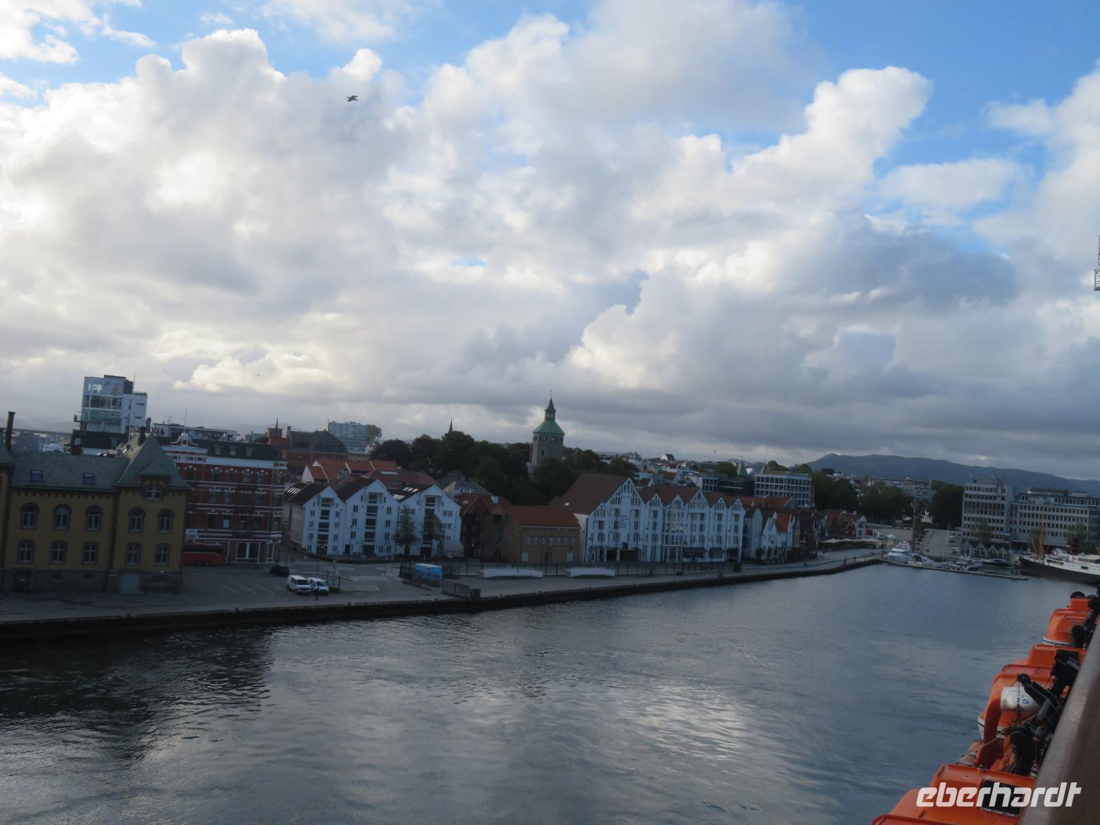 Unser Liegeplatz in der viertgrößten Stadt Norwegens lag direkt in der Innenstadt.Das Hafenbecken ist von vielen alten und neuen Häuschen umrahmt. Am Vormittag starten wir mit einem Ausflugsboot in den ca. 40 km langen Lysefjord , auch - der weiße Fjord - genannt. Diesen Namen verdankt er den hellen, blanken bis zu 900m hohen Felswänden, die Ihn umschließen. Hier befindet sich auch eines der meistbesuchten Ausflugsziele des Landes - dem Preikestolen. Ein spektakuläres 25 x 25 m großes Felsplateau mit fast senkrecht abfallenden Wänden 600m über den Meeresspiegel. Es war eine tolle Panoramafahrt auf dem Fjord durch fast unberührte Natur, gespickt mit schroffen Felsen, grünen Wiesen, auf denen sich Ziegen sonnten und kleinen Wasserfällen. Zum Abschluss durften wir frischgebackene Waffeln mit Marmelade oder Sauerrahm probieren - lecker.