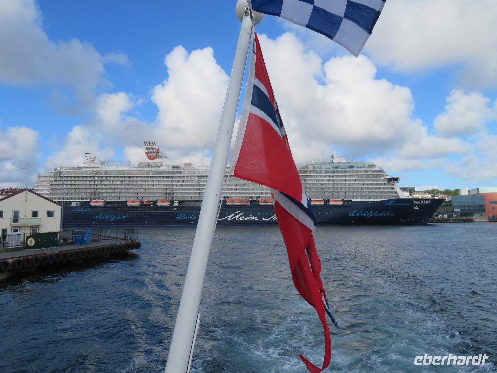 Um 17:00 Uhr legte „Mein Schiff 5" in Bergen ab und wir konnten eine eindrucksvolle Fahrt vorbei an