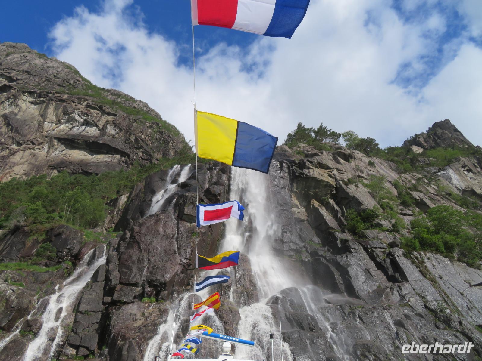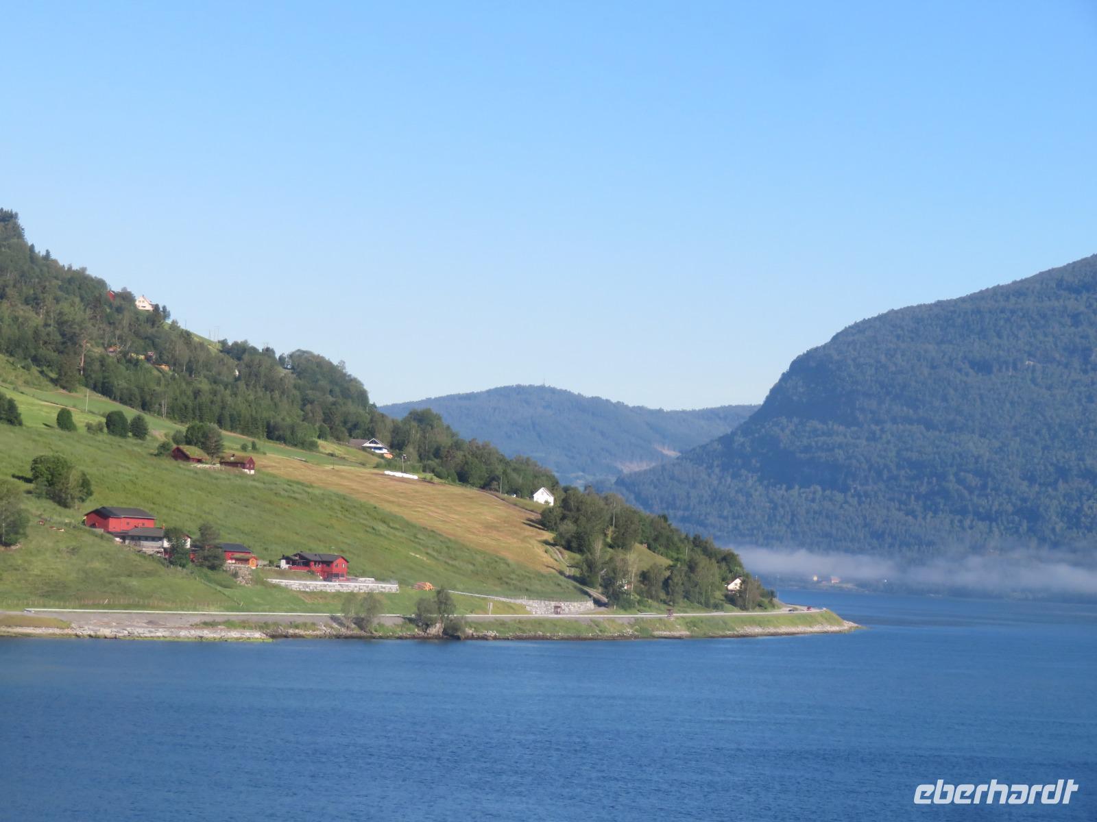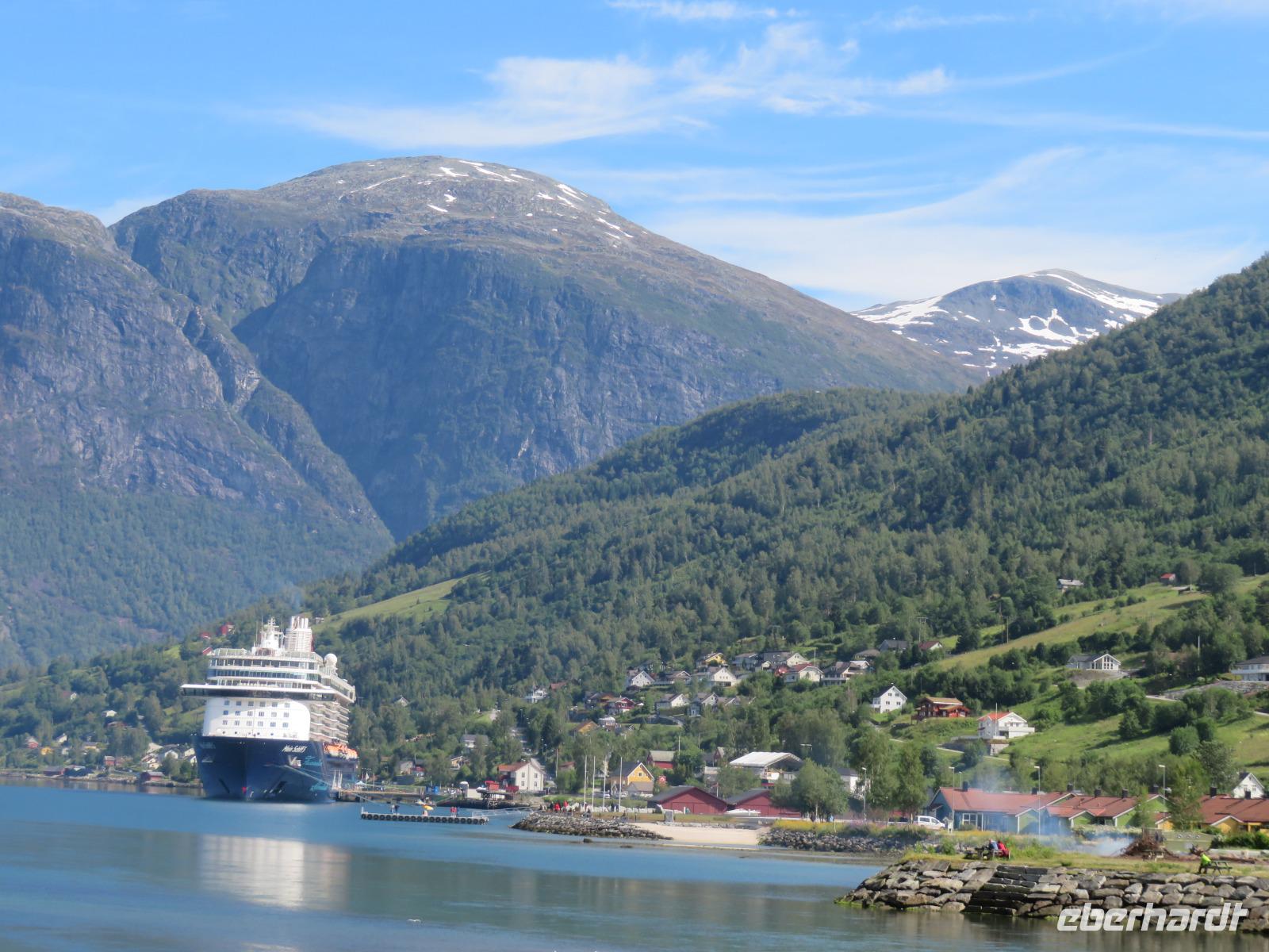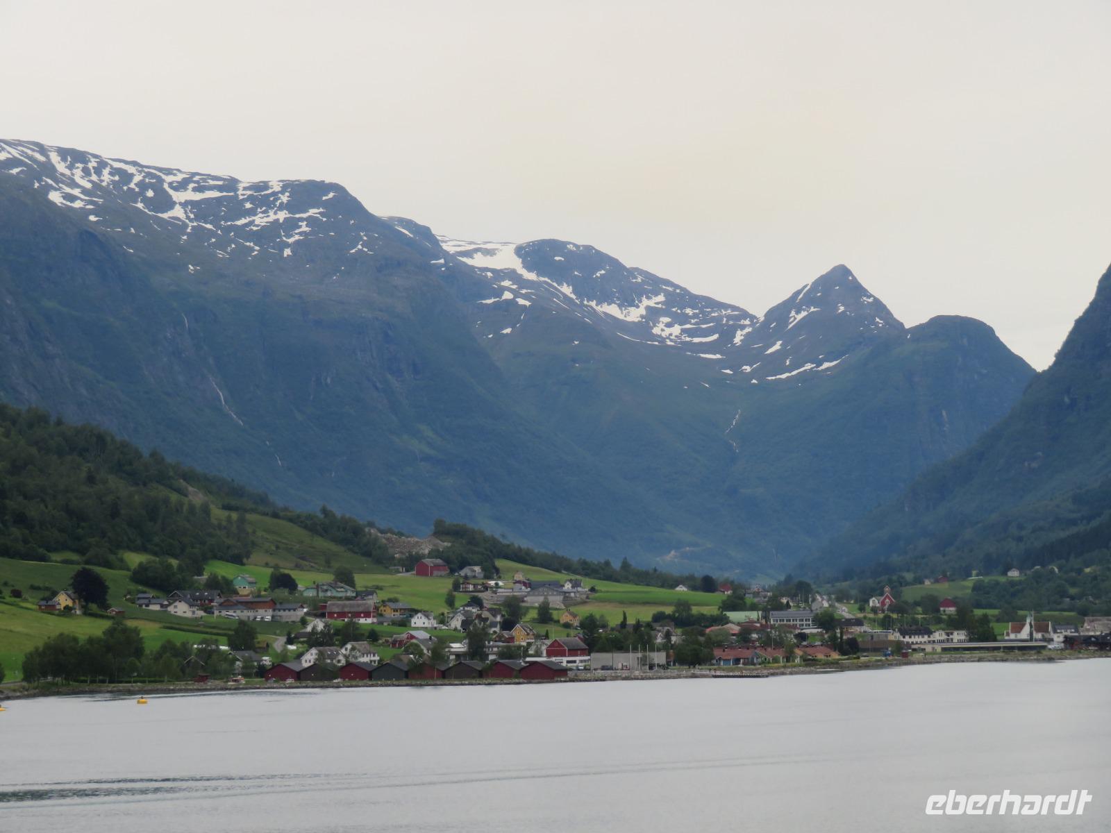 Es ist unglaublich wir liegen mit unserer „Mein Schiff 5" inmitten tiefer Fjorde, grüner Wiesen, üppiger Vegetation, kleiner Bäche und hoher Berggipfel. Die Gebirgslandschaft in den Alpen kann nicht schöner sein.