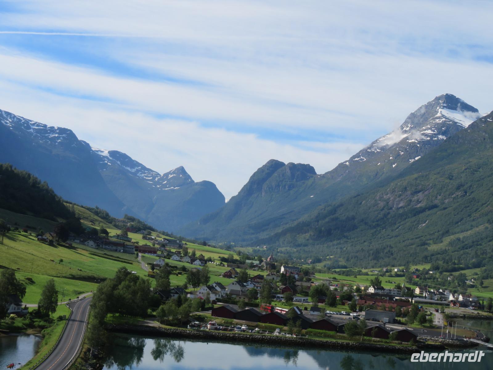 Olden ist Ausgangspunkt für Besuche einer faszinierenden Gletscherlandschaft. Der bekannteste der Jostedalgletscher - Europas größter Festlandgletscher mit einer Fläche von ca. 1310 Quadratkilometern & einer ca. 500m dicken Eisfläche. Jeder der angebotenen Ausflüge, egal ob bei einer Wanderung zur Gletscherzunge des Briksdalsbreen, einer Bootsfahrt zum Kjenndalen-Gletscher oder einer Landschaftsfahrt entlang des nördlichen Fjordufers, hat uns mit einer einmaligen Naturlandschaft begeistert.