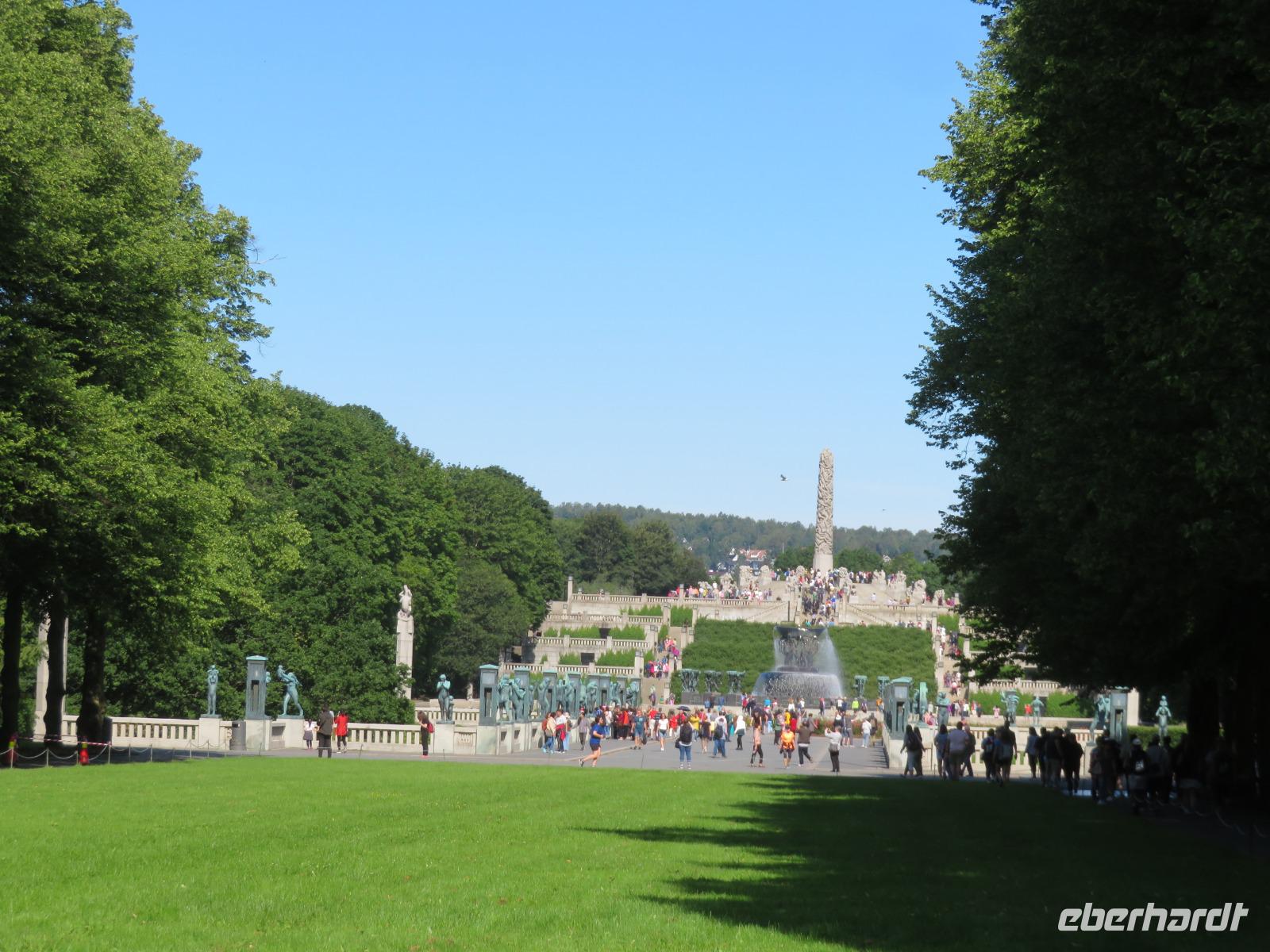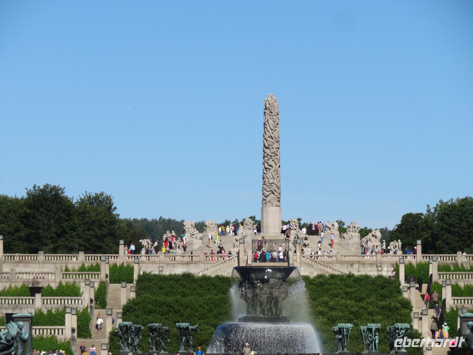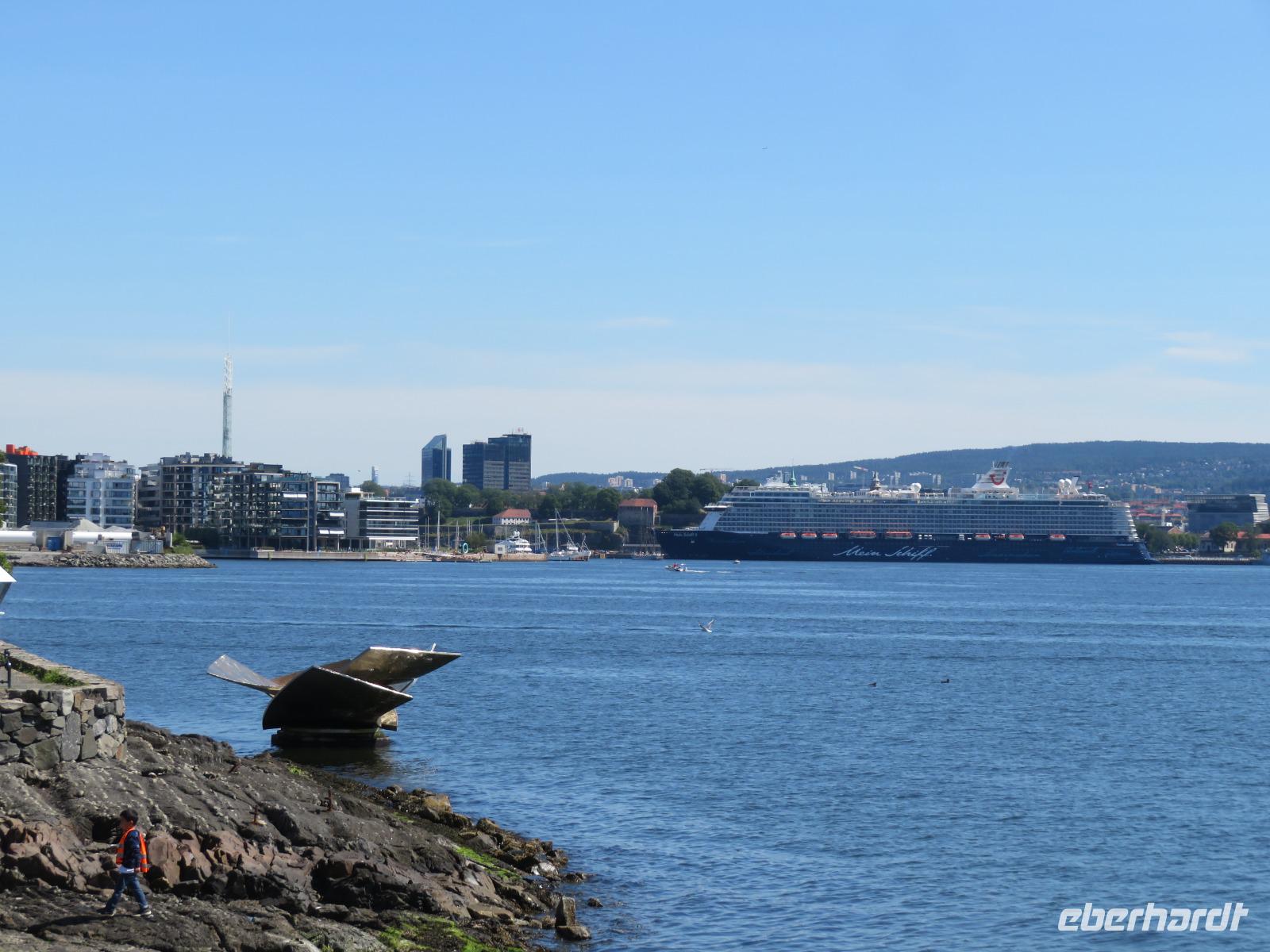 Bei strahlendem Sonnenschein geht „Mein Schiff 5" am Kai gegenüber der Akerhus Festung vor Anker. Am nördlichsten Ende des Oslofjordes, liegt Oslo, eine der grünsten Hauptstädte Europas. Wir werden von Tommy, unserem Stadtführer erwartet. Der Dialekt verrät es, in Sachsen geboren. Zuerst geht es zu einem Foto-Stopp zum 2008 eröffneten neuen Opernhaus. Aus weißem Marmor erbaut, soll das Gebäude an einen Eisberg erinnern. Durch die City vorbei am Rathaus und dem Königsschloss geht es zum ca. 32 Hektar großen Vigelandpark. Gustav Vigeland, der wohl bedeutendste Bildhauer Norwegens im 20 Jahrhundert, schuf hier zwischen 1907 und 1942 sein Lebenswerk. 212 Skulpturen aus Bronze symbolisieren den Kreislauf des Lebens vom Embryo bis zum Tod. Die Figuren bestechen durch ihre Natürlichkeit in Gestalt und Bewegung. Es fällt nicht schwer zu erkennen, was der Künstler ausdrücken wollte. Wir spazieren gemütlich durch den Park, lauschen Tommy's Erklärungen zu einzelnen Relief's und bestaunen die Detailtreue.