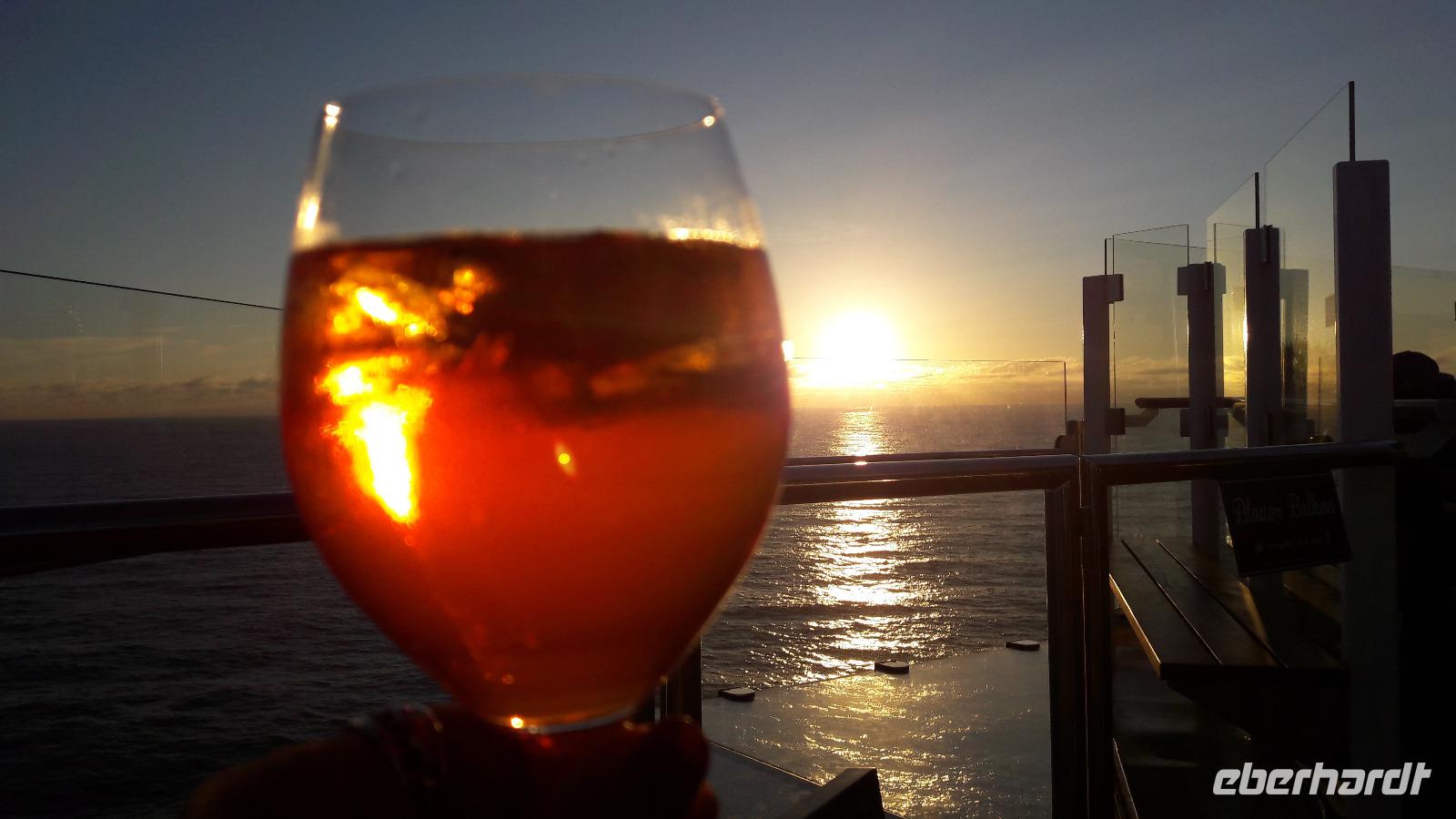 Der traumhafte Sonnenuntergang am späten Abend rundete den erholsamen Seetag ab.