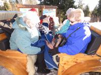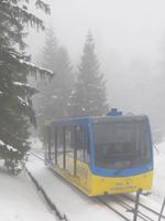 Bei Sonnenschein fuhren wir von Smokovec die ehemals als Straße der Freiheit bezeichnete Tatrastraße entlang, vorbei an all den, ehemaligen Osttouristen bekannten, Orten und Sanatorien am Fuße der Berge nach Strebske Pleso. Viele Gäste erinnerten sich einstiger Wanderungen, Übernachtungen, der Freude über gutes Bier am Ende einer Wanderung und zahlreicher Begebenheiten am Gerlach, dem Schlesischen Haus, auf dem Campingplätzen und auf langen Wegen zum Rysy oder Krivan. Bei etwas Schnee bummelten wir von den Skisprungschanzen am Strbske Pleso-(See) entlang zu den bestellten Pferdegespannen. Für eine Schlittenfahrt war die Schneedecke zu dünn aber mit Radwagen (wohl aus dem 18. Jahrhundert?) drehten wir dann in Quartettverteilung auf drei Kutschen eine Runde. Bei Honig- oder Glühwein und individueller Imbissgestaltung - in Erwartung eines üppigen Sylvestermahles - warteten wir auf die Tatrabahn 13:21 Uhr. Mit dieser nun recht modernen Elektrischen fuhren wir die kaum zwanzig Kilometer hinab nach Smokovec. Scöne Aussicht dabei zu den Gipfeln der Hohen Tatra, hinüber zu den östlichsten Bergen der Niederen Tatra und auf die nun langsam wieder wachsenden Neuaufforstungen nach dem Orkan des Jahres 2004. Der weitere Nachmittag dann ganz individuell: Auffahrt zum Hrebienok, Kaffee in Smokovec oder im Hotel, Sauna, Pool oder im Bett.