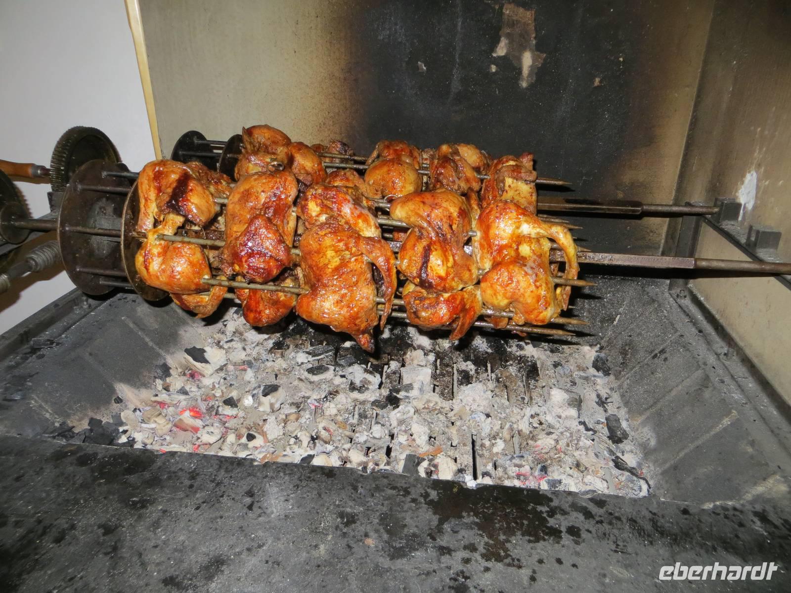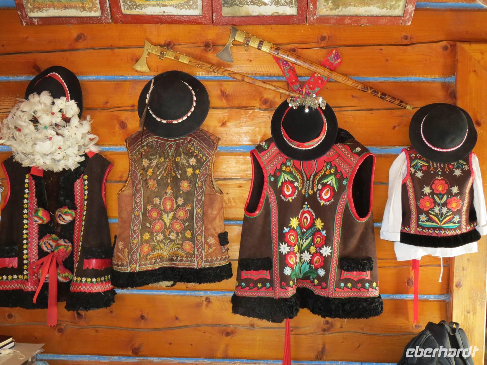 Mit dem Reisebus fuhren wir am Abend den reichlichen Kilometer zum umfangreichen Abendessen in der Koliba - einer typischen Tatrawirtschaft in Holz, mit viel Arbeitsgerät der Bevölkerung an der Wand und offenem Holzkohlegrill. Tatratee, Schafskäse als Vorspeise, Krautsuppe, Hähnchen vom Grill, Palatschinken mit Eis und recht viel slowakischer Wein bei melancholischer und lustiger Zigeunermusik rundeten den letzten Abend der Reise gastronomisch üppig und kulturell ab.