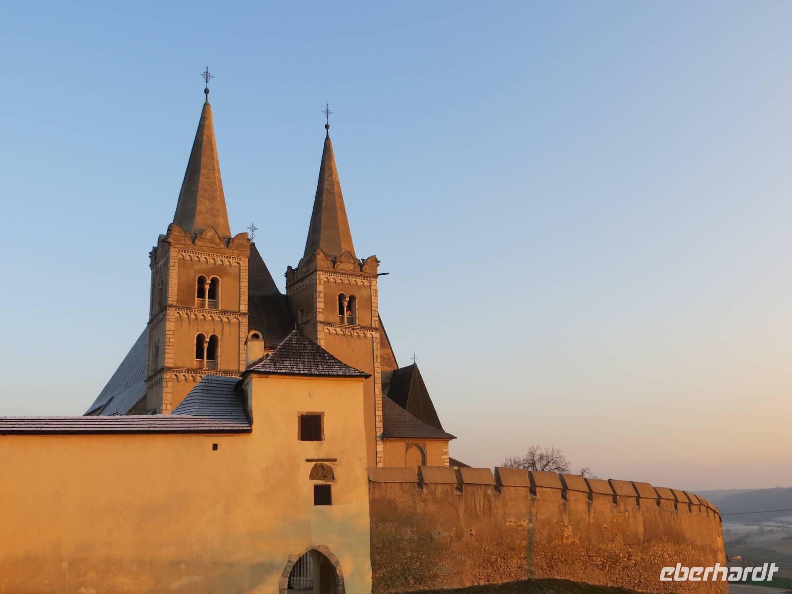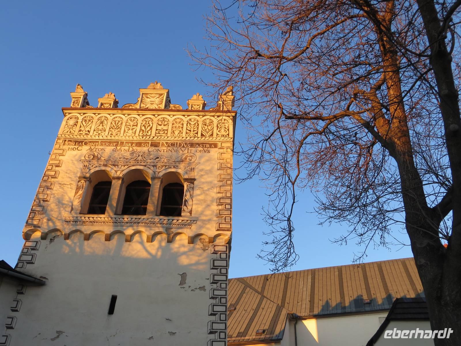 Nun war es an der Zeit, unseren Besuch im Zipser Kapitel (Spisska Kapitula) nachzuholen. Bei rotgelbem Restlicht der Sonne stiegen wir durch das Tor der Wehrmauern, schauten auf St. Martin mit spätromanischen Bauelementen und bummelten durch das „Kirchendorf" in dem einst auf Johannes Paul II. nächtigte.