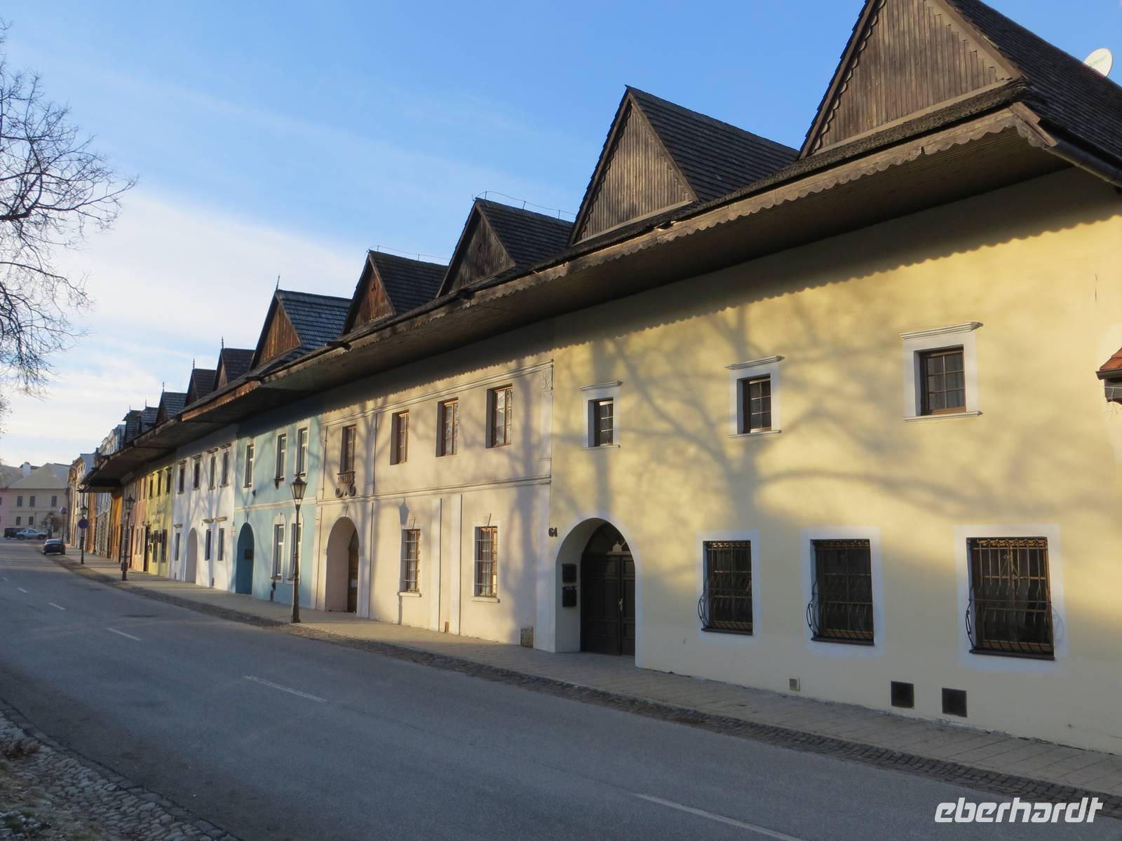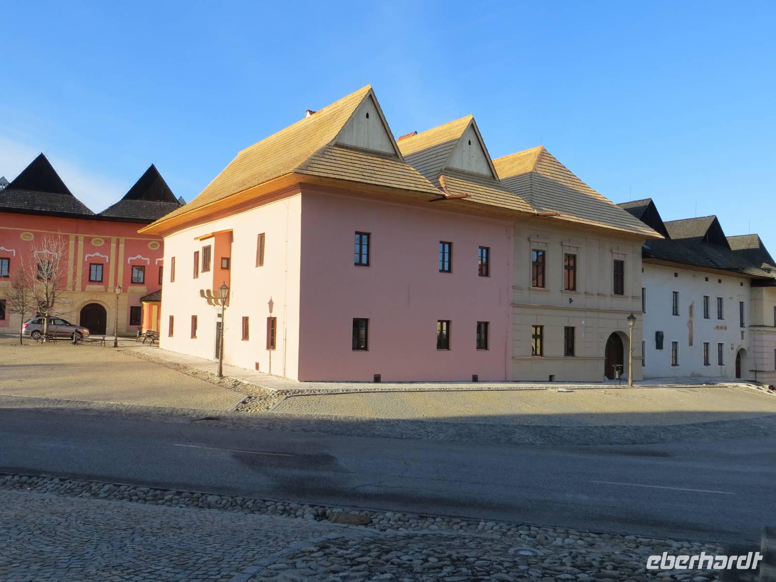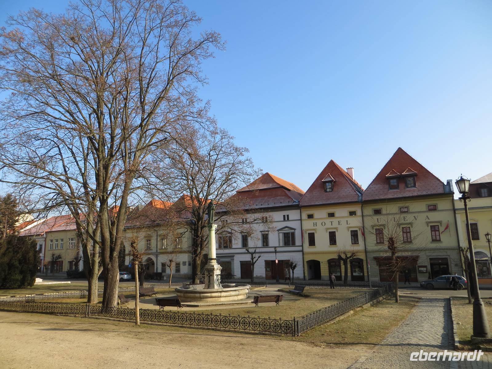 Nach einem kurzen Intermezzo wieder im Hotel starteten wir am späten Mittag nach Spisska Subota / Deutsch Georgsberg, einem Stadtteil von Poprad. Rund um Kirche und Renaissanceglockenturm sind entlang des langen Platzes bestens rekonstruierte regionaltypische Häuser angesammelt: im oberen Teil die größeren der deutschen Bauherren und im unteren, um heute protestantische Kirche, die der bäuerlichen slowakischen Erbauer. Im rustikalen Wirtshaus Sobota nahmen wir einen kleinen typisch Zipser Imbiss ein, der sich dann doch als recht üppiges Mahl herausstellte. So verlegten wir die abendliche Tischzeit um zwei Stunden. Das verschaffte uns ausreichend Zeit für einen Bummel durch die Innenstadt von Poprad, wo wir uns an der weihnachtlichen Illumination erfreuten und auch am Denkmal für die Opfer des 21. August 1968, dem Tag des Einmarsches von Armeen der Warschauer Vertragsstaaten in die Tschechoslovakei, stehen blieben.