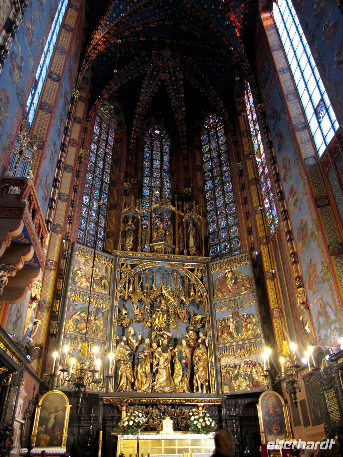 Bereits während der Fahrt zur Zipser Burg hatten wir die imposante Stadtmauer von Levoca gesehen. Nun wollten wir die historische Innenstadt besichtigen. Doch zunächst hatten alle Gäste Freizeit für eigene Unternehmungen. 14.00 Uhr trafen wir uns zur Besichtigung der gewaltigen St. Jacobskirche. Mit 18,62 Metern besitzt die Kirche den weltweit höchsten gotischen Altar der Welt. Wieder überraschten uns die detailgetreuen Arbeiten der Meister des Mittelalters. Schöpfer ist Paul von Leutschau, ein Zeitgenosse von Tilman Riemenschneider und Veit Stoß. Helena führte uns dann durch die vollständig erhaltene Innenstadt und wir bestaunten die typischen Häuser der Zips, die klassizistische evangelische Kirche, das Rathaus, den Pranger und das Thurzo-Haus rund um den Marktplatz der Stadt. Dieses einzigartige Ensemble steht seit 2009 unter dem Schutz der UNESCO. Zurück im Hotel machten wir uns für den abendlichen Besuch in der Penzion Koliba in Tatranska Kotlina frisch. Wir wurden von drei Musikern mit slowakischer Folklore, Zigeunermusik und Wiener Musik unterhalten. Zugleich stärkten wir uns an Brot mit Brimsen, Frischkäse aus Schafsmilch, gegrilltem Hähnchen und einem Apfelstrudel.