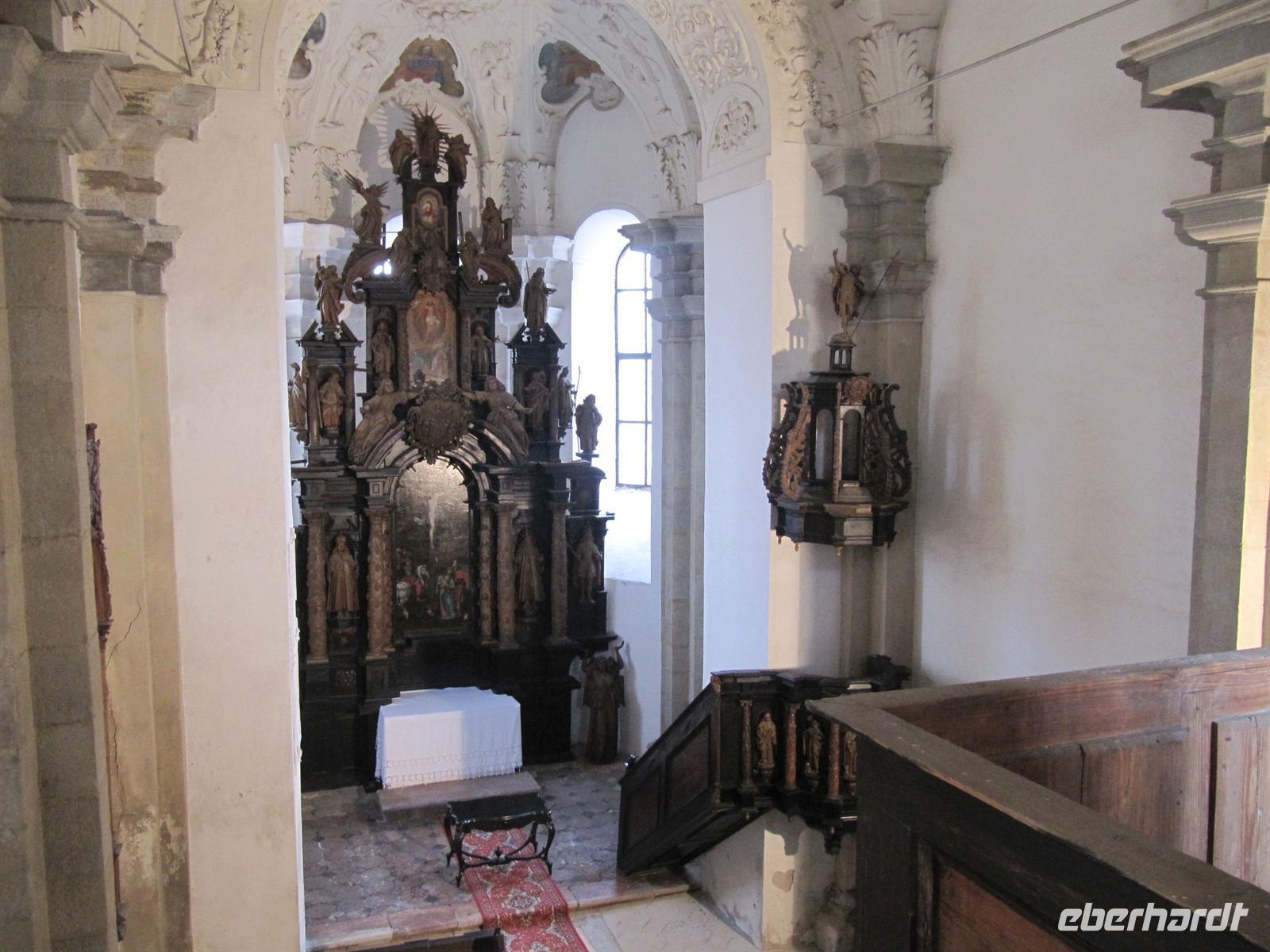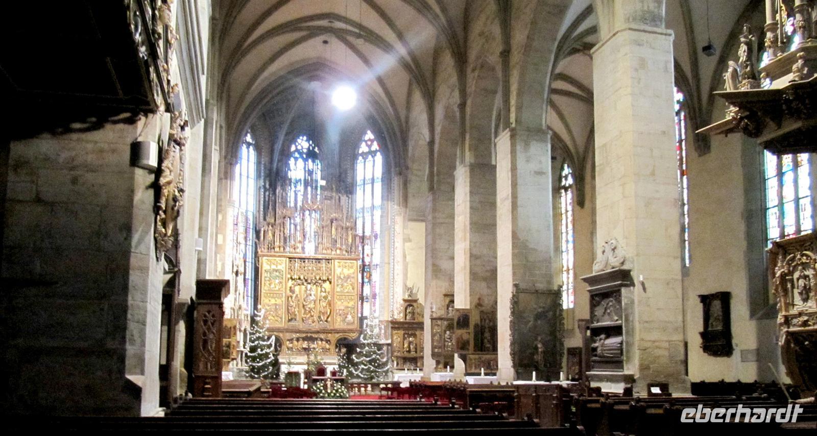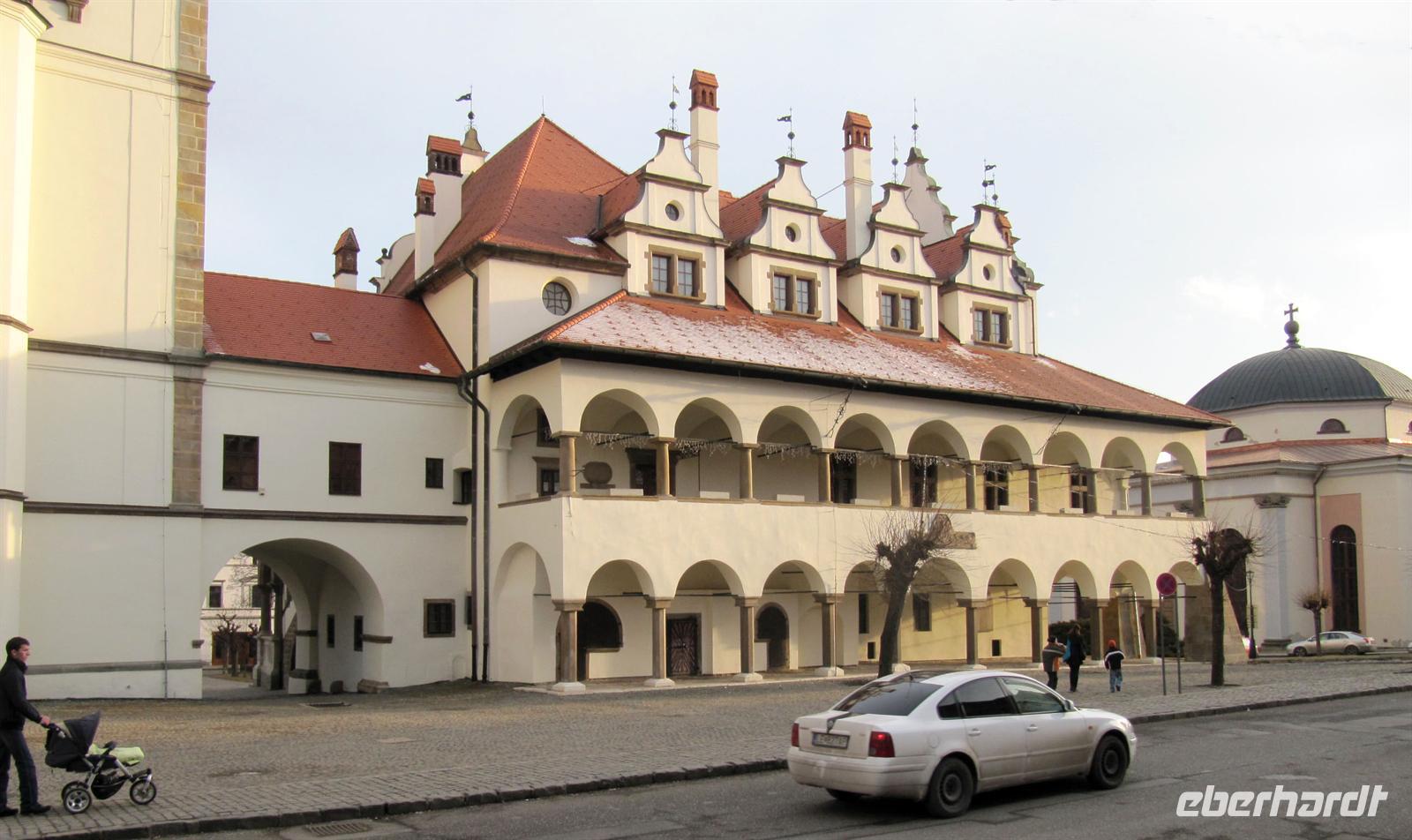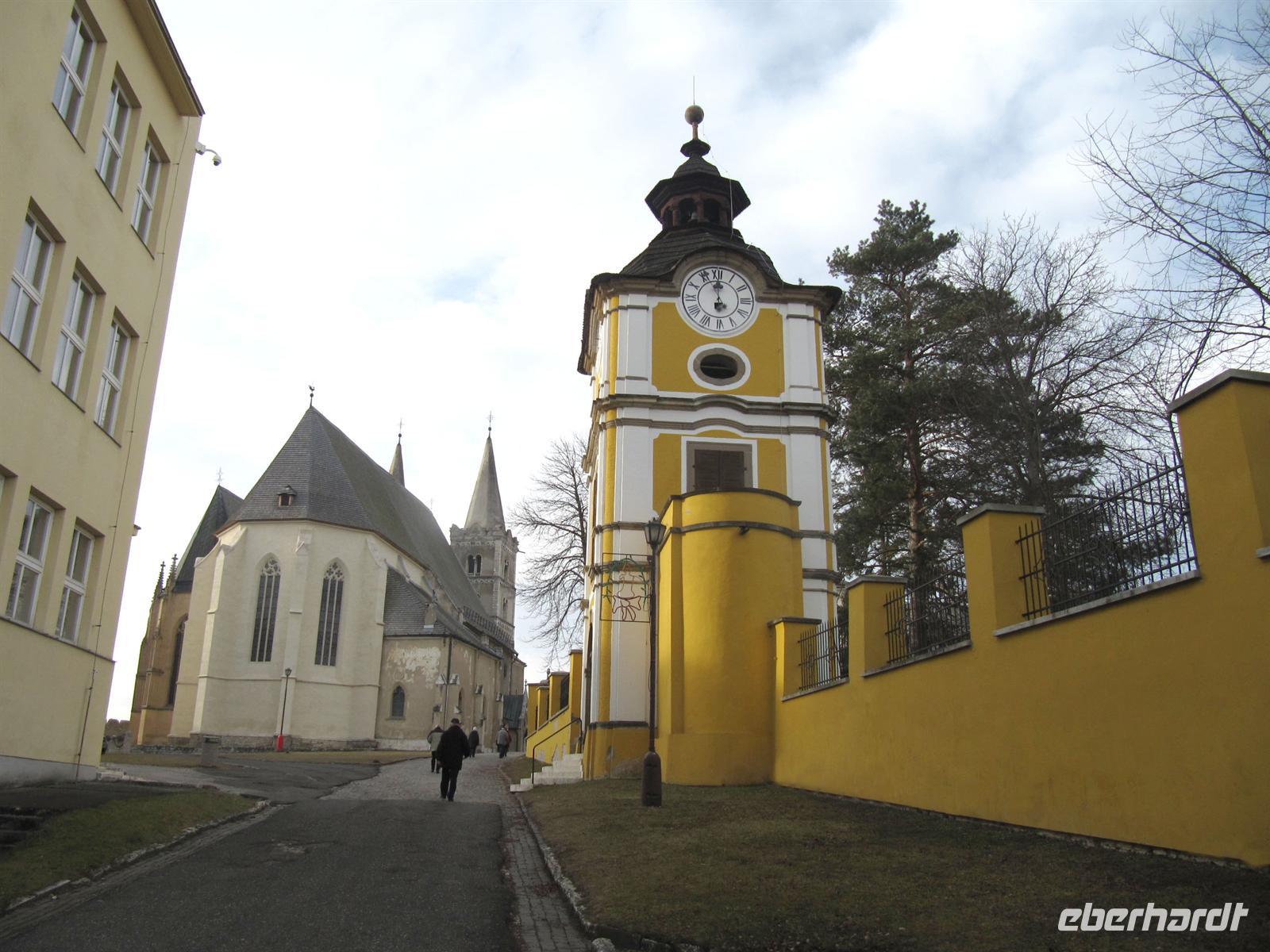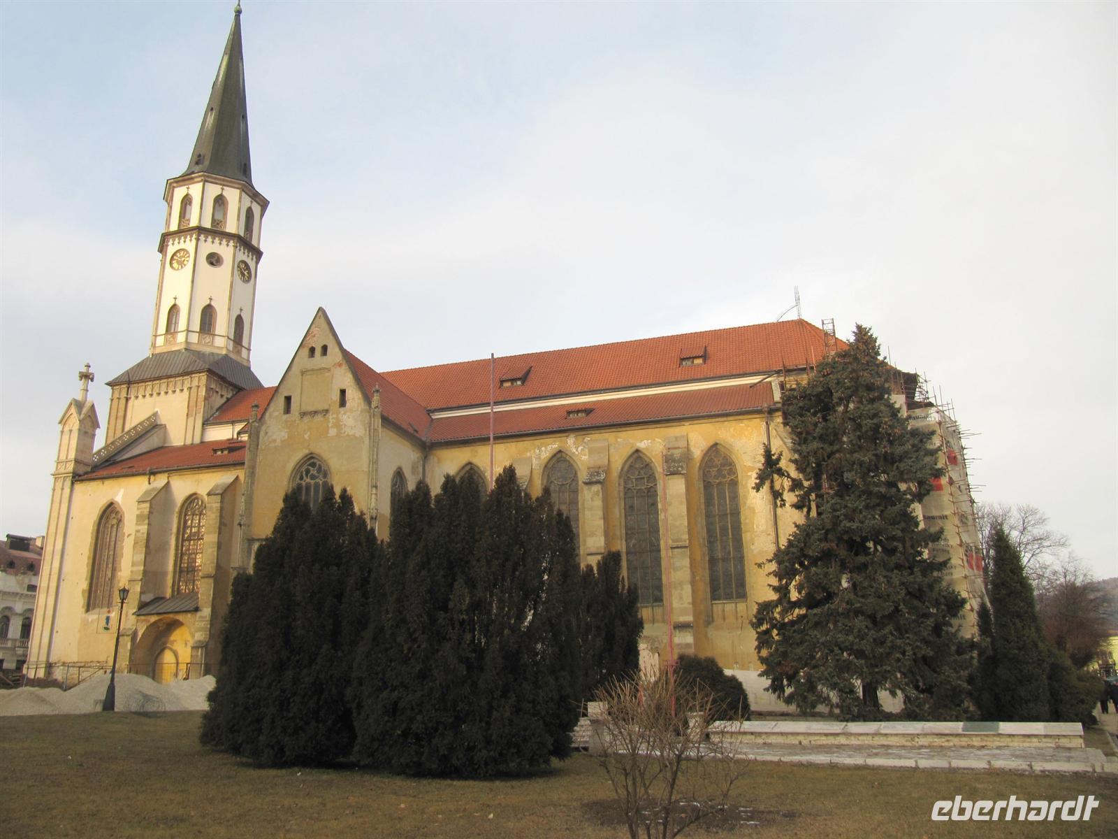 Jeder Reisegast stärkte sich in diesem rustikalen Ambiente ganz nach seinen Wünschen. Vorbei an den Orten Podolinec, Busovce und Spisska Bela führte uns unser Ausflug nun nach Spisska Sobota, einer alten bedeutenden Stadt der Zipps. Auch hier siedelten nach dem Tatareneinfall von 1241 deutsche Kolonisten, die Zipser Sachsen. Sie gründeten eine Marktsiedlung mit verschiedenen Handwerken. Die Stadt gehörte zum Bund der 24 Zipser Städte und zur Bruderschaft der 24 königlichen Pfarrer. Der Marktplatz präsentierte sich uns in der für die Zips typischen langgestreckten Form mit einer Kirche und dem separaten Glockenturm. Wir besichtigten die Kirche des Hl. Georg, eine römisch-katholische Kirche aus dem Jahr 1273, und bestaunten die fünf spätgotischen Flügelaltare und den Hauptaltar des Hl. Georg, ein Werk des Paul von Letschau. Und auch hier staunten wir über diese meisterhafte Ausführung der lebensgroßen Figuren. Wir verweilten einen Moment auf dem Marktplatz, der mit viel Liebe rekonstruiert wird, und setzten unseren Ausflug schließlich nach Poprad fort. Hier unternahmen wir einen Bummel in der restaurierten Fußgängerzone vorbei an der evangelischen Kirche.
