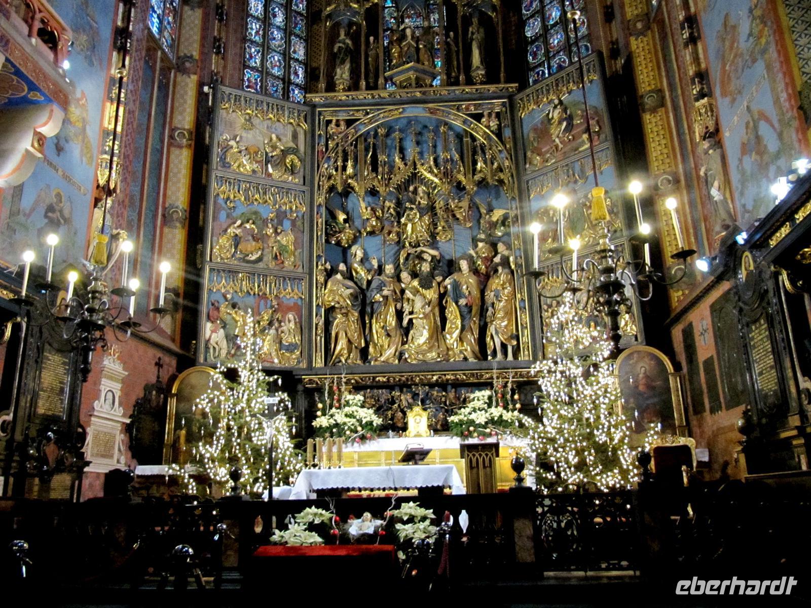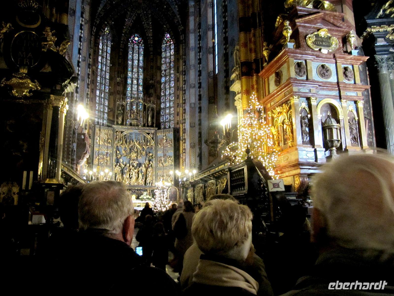 Alle Reisegäste für unsere Silvesterreise erreichten durch den Haustür-Transfer-Service pünktlich unseren 4-Sterne-Reisebus oder kamen per Eigenanreise zur Abfahrtsstelle am Flughafen Dresden. Pünktlich 06.00 Uhr starteten wir mit Udo am Steuer zu unserer 4-Länder-Reise durch Deutschland, Polen, die Slowakei und Tschechien. Am Grenzübergang zu Polen wechselten sich die beiden Chauffeure der Firma Lenz aus Hainichen ab. Unsere Wegstrecke bis nach Kezmarok im Zipser Land am Fuße der Hohen Tatra wird bis zum Abend dauern und so übernahm nun Thomas, unser Chauffeur für die nächsten Tage, das Steuer. Ein kurzer Stopp und wir setzten unsere Reise fort. Diese führte uns entlang des Riesengebirges, deren Gipfel sich leider im Nebel versteckten, vorbei an Wroclaw, Opole und Katowice nach Krakau, in die stolze Königsstadt an der Weichsel. Direkt unterhalb des Wawels wartete unsere örtliche Reiseleiterin Elisabeth auf uns. Voller Vorfreude begannen wir unseren Stadtrundgang. Zuerst stiegen wir den Wawel hinauf und betrachteten die ehrwürdigen Gebäude wie die Wawelkathedrale und das Wawelschloss von außen. Zugleich erfuhren wir interessante Details aus dem Leben am Hofe der polnischen Könige. Wir sahen das Denkmal für Papst Johannes Paul II. Vorbei am Priesterseminar und am neuen Rathaus erreichten wir den Rynek in der Innenstadt. Unsere Schritte lenkten uns zur Marienkirche. Hier bestaunten wir den berühmten Hochaltar von Veit Stoß. Elisabeth erläuterte uns einzelne Elemente dieses Wunderwerkes aus Lindenholz. Kaum zu glauben, das die einzelnen Figuren bis zu 2,70 groß sind. Welche Ausdruckskraft in ihnen steckt, wie der Künstler die Wesenszüge der einzelnen Gesichter herausarbeitete ... wir standen staunend und zugleich voller Erfurcht davor. Auch die weitere Ausgestaltung der Kirche, die Fenster und die wundervolle Decken waren sehr beeindruckend. Anschließend lauschten wir dem Signal vom Turm der Marienkirche, dem Hejnal. Plötzlich brach das Signal mitten im Spiel ab, so wie es der Legende nach war, als ein Pfeil der Mongolen den Türmer tödlich traf. Heute wird dieses Signal zu jeder vollen Stunde alle vier Himmelsrichtungen als Mahnung gegen Kriege und für den Frieden der Völker in geblasen. Vor den Tuchhallen besuchten wir den Weihnachtsmarkt, der hier noch bis zum 31.12. seine Tore geöffnet hat. Mit dem Turm des alten Rathauses der Stadt bilden diese am Rynek ein harmonisches Ensemble. Waren es doch vor allem der Salzhandel und die Kunst der Tuchmacher die wesentlich zum Reichtum der Stadt beitrugen. Zugleich war die Lage an der Via Regia und weiteren alten Handelsstraßen ausschlaggebend für die Stellung Krakaus im Mittelalter. Im Zentrum der Wissenschaft, an der zweitältesten Universitäten Europas, studierten zum Beispiel Nikolaus Kopernikus, Rudolf Agricola oder Corvinus. Wir besichtigten den Innenhof im alten Universitätsgebäude. Die Zeit unserer Stippvisite in Krakau war wie im Fluge vergangen. Es soll nicht unser letzter Aufenthalt in der Stadt an der Weichsel gewesen sein ... Krakau sollte man an mehreren Tagen erkunden, sich viel Zeit nehmen und auch einem Konzert von Frederic Chopin lauschen ... Ideen und Impulse haben wir viele erhalten. Nach der herzlichen Verabschiedung von Elisabeth und einem wärmenden Kaffee aus der Bordküche setzten wir unsere Reise in Richtung Karpaten, genauer in die Hohe Tatra fort.Leider war es schnell dunkel und wir sahen von der Umgebung nicht mehr viel. Ca. 150 Kilometer betrug unsere Strecke bis nach Kezmarok im Zipser Land. Für unseren Bus hieß es nun klettern und wir erreichten bei Novi Targ die Bergwelt der Tatra und hier „steppte der Skibär", die Abfahrtshänge mit Natur- und Kunstschnee erfreuten sich einer regen Nutzung.Vorbei am Goralendorf Zdiar und an Tatranska Kotlina erreichten wir das Hotel „Club" in Kezmarok. Das familiäre 3-Sterne-Haus befindet sich mitten im Zentrum der Stadt unweit der Burg. Nach einem schnellen Bezug der Zimmer erwartete uns im Restaurant ein schmackhaftes Abendessen. Unsere örtliche Reiseleiterin Helena hieß uns herzlich willkommen. Schnell waren die ersten Absprachen und Abstimmungen getroffen.Allen eine gute erste Nacht voller Vorfreude auf die nächsten Tage ...