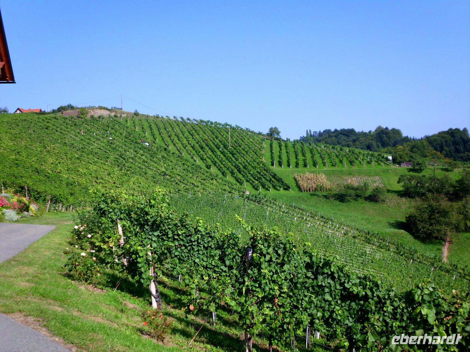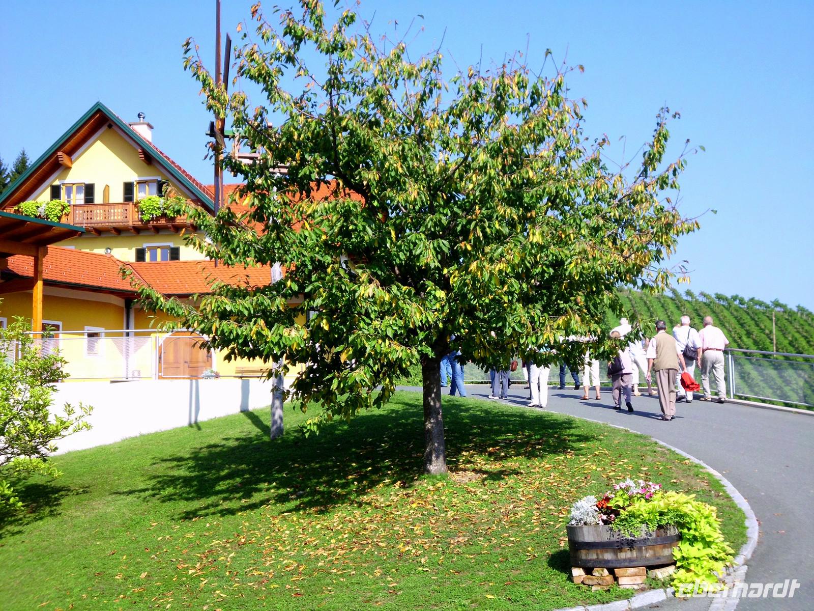 Auf unseren heutigen Ausflugstag begleitete uns ein örtl. Reiseleiter und wir wurden alle individuellen Fragen zu Land und Leute los. Unsere Fahrt ging erst mal nach Maribor, der Kulturhauptstadt in diesem Jahr. Bevor wir uns aber die schöne Altstadt anschauten, bewunderten wir die Aussicht vom Hausberg, wo auch im Winter internationale Skiwettkämpfe stattfinden. Auf unseren Rundgang durch Maribor kamen wir natürlich auch an die älteste Weinrebe der Welt vorbei und schon war auch wieder der Appetit auf die flüssige Nahrung da. Bei einer wohlschmeckenden Jause holten wir uns die Grundlage für die anschließende Weinverkostung auf der Südsteierischen Weinstraße. Allerdings mußten wir feststellen, dass die Österreicher doch nicht so freigebig wie die Slowenen sind. Das tat aber unserer Urlaubslaune keinen Abbruch und die anschließende Fahrt durch die Steierischen Weinberge entschädigte uns restlos. Bevor wir wieder ins Hotel zurückkehrten, hatten wir noch die Gelegenheit Kürbiskernöl zu verkosten oder Kürbiskerne zum knabbern zu kaufen. Zur Zeit ist nämlich die Ernte im vollen Gange und wir sind neugierig geworden, wie dieses Öl wohl schmeckt. Wer den etwas nussigen Geschmack mochte, konnte natürlich gleich dieses wirkliche Naturprodukt erwerben.