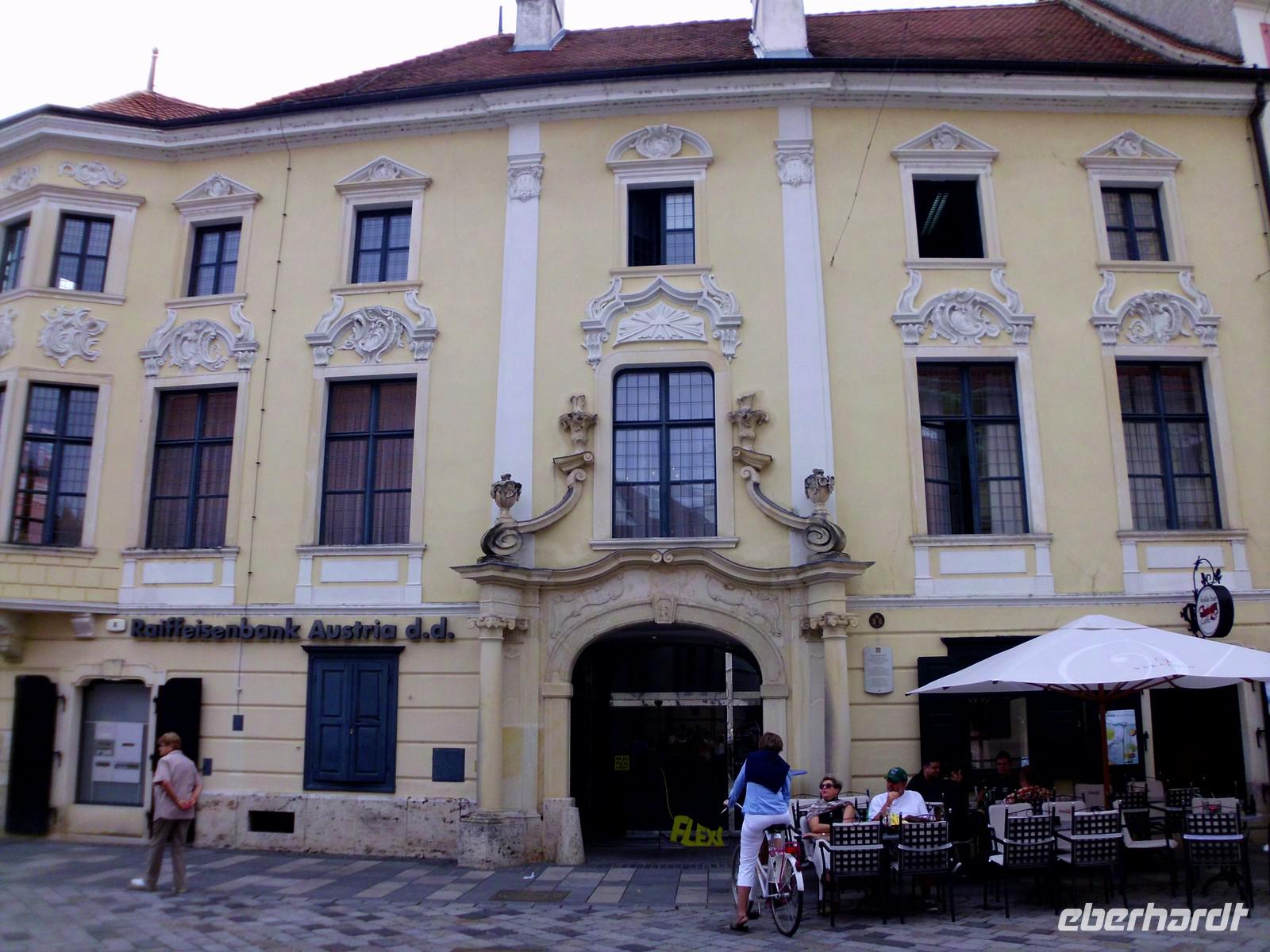 Kroatien war unser heutiges Ausflugsziel. Da wir uns ja hier im Dreiländereck befinden, dauerte es nur eine Stunde durch die kleinen Ortschaften von Preckmurje und wir erreichten die Grenze. Der Grenzort Mursko Sredisce, direkt am Fluss gelegen bot sich an für eine kleine Pause. Endlich konnten wir auch mal die Mur fotografieren, ein doch recht beachtlicher Nebenfluss der Drau. Dann war es auch nicht mehr weit und wir erreichten Varazdin, das barocke Kleinod an der Drau. Unsere Stadtführerin zeigte uns dann bei einem gemütlichen Rundgang die schönsten Seiten ihrer Stadt. Nach einer kleinen Rundfahrt durch das südliche Hügelland von Varazdin erreichten wir wieder Slowenien. Unser Abendessen bekamen wir heute auf dem Weinbauernhof „Radek" serviert und besonders schön empfanden alle Gäste die Musik der beiden Söhne des Hauses. Natürlich war auch der Hauswein wieder ganz nach unserem Geschmack und der Kuchen das I-Tüpfelchen des Abendessens!