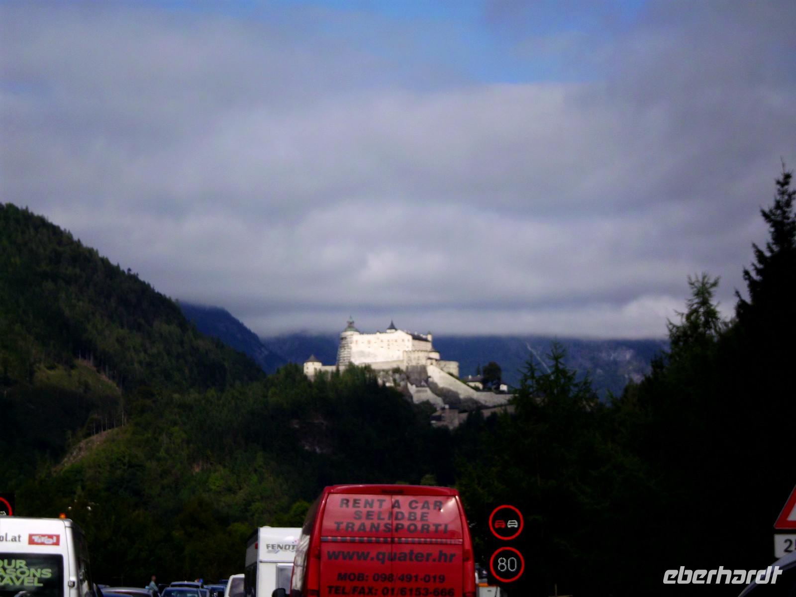 Heimreise! Ganz so traurig sind wir nicht, denn die Sonne versteckt sich heute hinter den Wolken. Schnell ist der Karawankentunnel erreicht, diese kurze Verbindung zu Österreich. Heute allerdings müssen wir uns etwas gedulden, weil Bauarbeiten im Tunnel eine „Blockabfertigung" notwendig machen. Dann aber kommen wir auch bald an Villach vorbei auf die Tauernautobahn und als wir den Alpenhauptkamm durch den Tauerntunnel passiert haben, lacht uns die Sonne vom strahlend blauen Himmel entgegen. Wir erfreuen uns am herrlichen Alpenpanorama und ich kann schon mal eine schöne Schweiz-Reise empfehlen. Als wir dann die mächtige Festung Hohenwerfen vor uns sehen, ist nochmals eine kurze Wartezeit angesagt, für uns kein Problem, denn wir sitzen bequem im 4 Sterne Reisebus. So kommen wir dann auch alle wohlbehalten nach Hause, mit vielen schönen Erinnerungen im Gepäck, den Urlaub jeden Tag aufs Neue unter dem Motto: