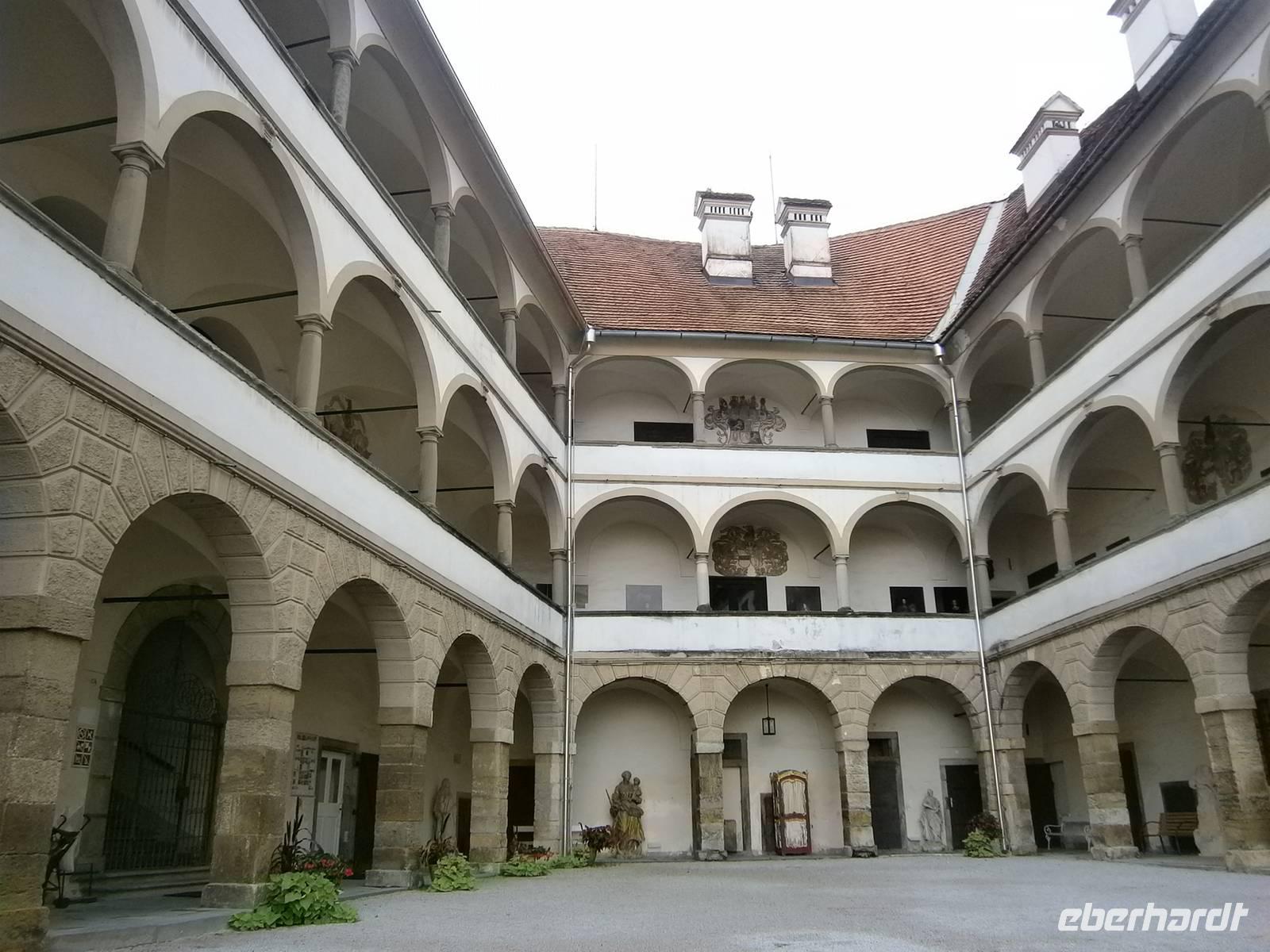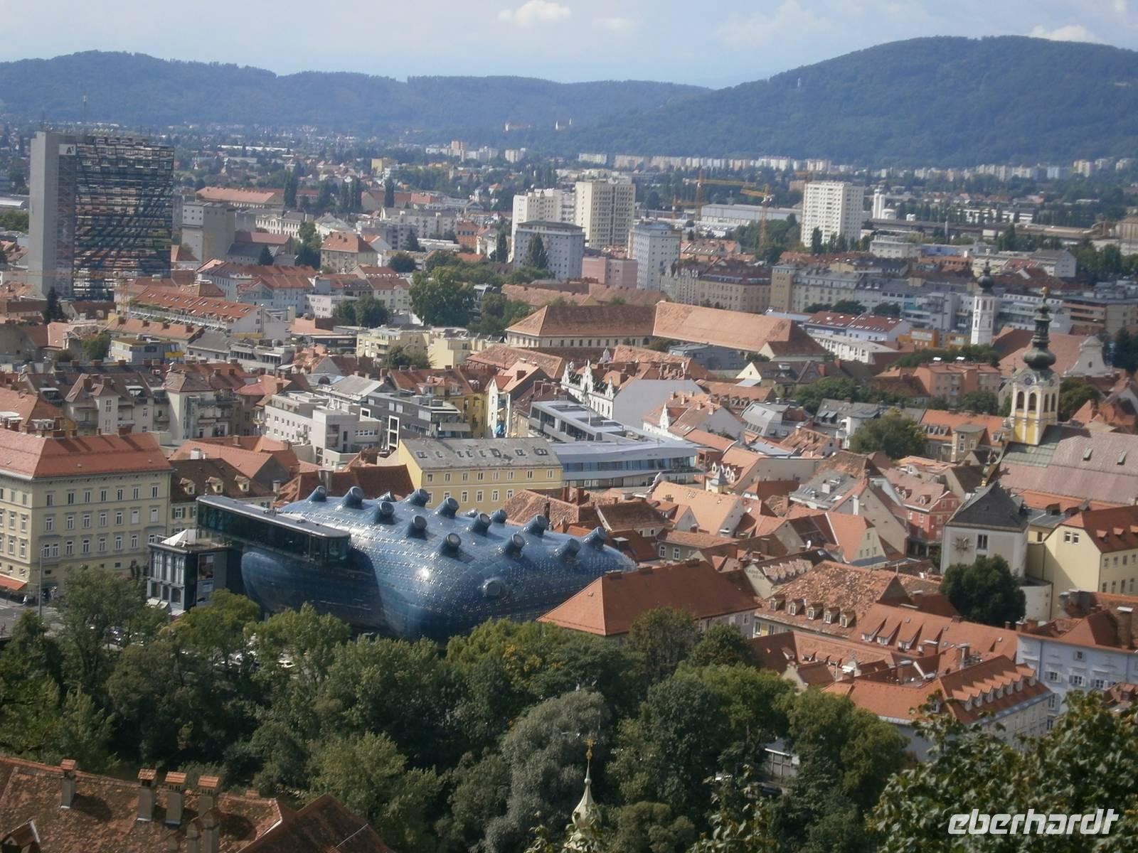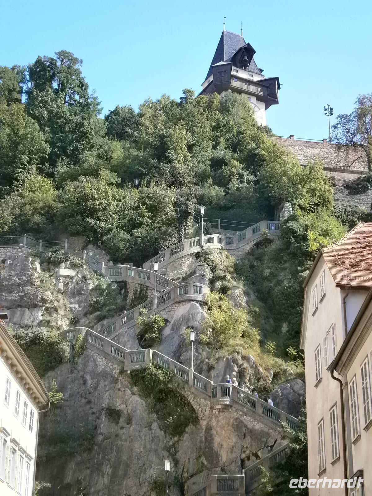 Auch heute scheint wieder die Sonne. Wir fahren nach Graz, in die Hauptstadt der Steiermark. Unsere Stadtführerin führte uns durch enge Gässchen, vorbei an imposanten Bauten und moderne Architektur. In der ehemaligen Burg der Habsburger betrachteten wir die Doppelwendeltreppe, die sogenannte Versöhnungsstiege. Natürlich bestaunten wir auch den Innenhof des Rathauses. Unser nächstes Ziel war der Schlossberg. Mit dem Fahrstuhl erklommen wir ihn in nur wenigen Sekunden. Dort befindet sich das Wahrzeichen von Graz der Uhrturm. Wir genießen den schönen Blick über die Dächer von Graz. Als nächsten Höhepunkt besuchten wir das, seit 2010 zum Weltkulturerbe zählende, Schloss Eggenberg. Etwas außerhalb von Graz befindet es sich eingebettet in eine Parkanlage. Und dort hat alles seinen Sinn: 365 Fenster wie die Tage des Jahres, 12 Tore für die Monate, 4 Türme für die Jahreszeiten. Der Park lädt zum Bummeln ein und die Sonne scheint. Während einer Führung sahen wir den Planetensaal und die Prunksälle aus dem 17. und 18. Jahrhunderts, die noch über die originale Ausstattung verfügen. Wir nutzten die Zeit zum Abendessen zum Karten schreiben, zu einem Eisbecher oder zum Baden in der Terme.