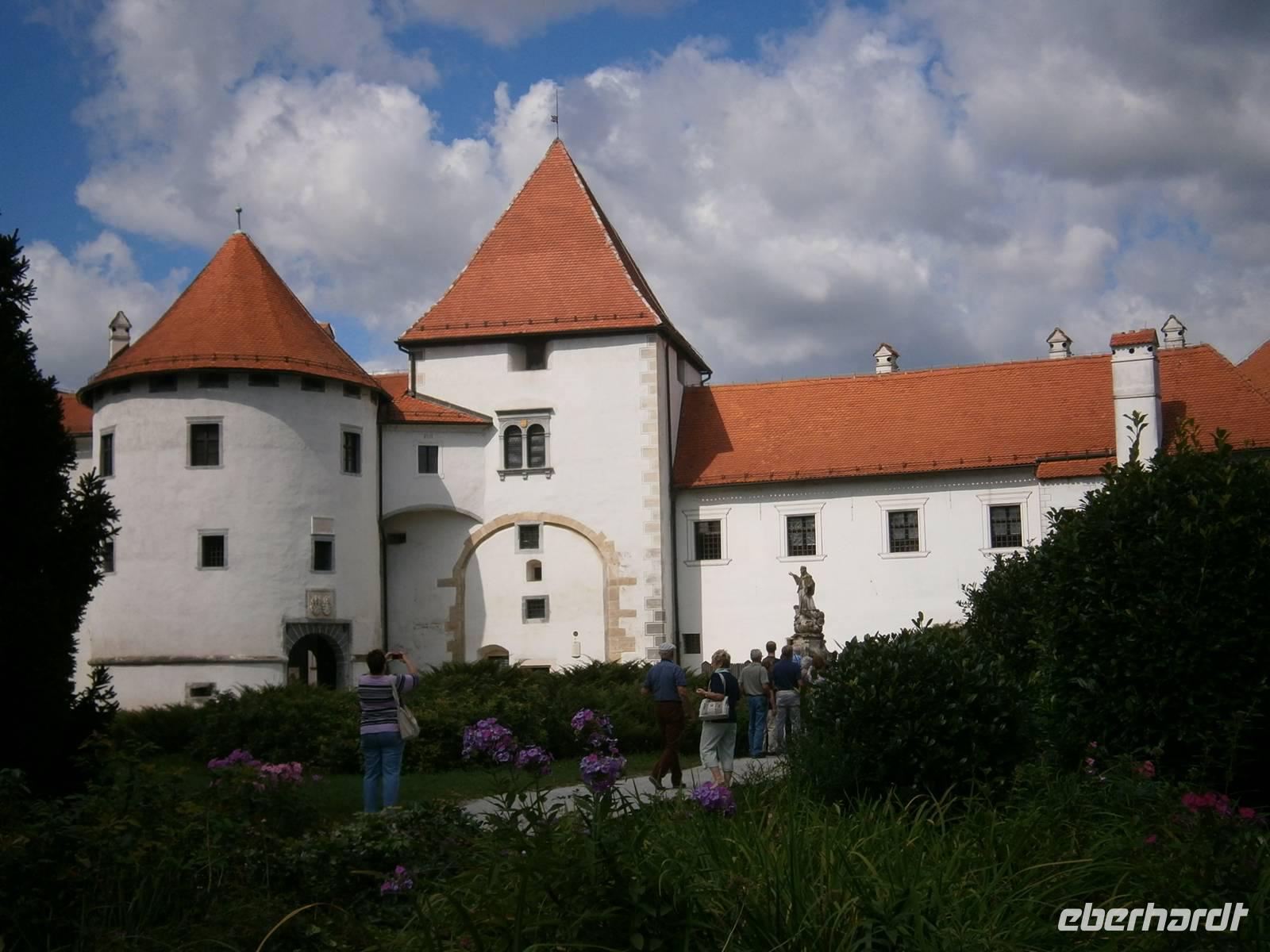 Heute führte uns der Ausflug nach Kroatien in die Stadt Varaždin. Die Stadt erstreckt sich unweit des Flusses Drau in einer fruchtbaren Ebene und grenzt an die Regionen Steiermark, Medimurje, Zagorje und Obere Podravina. Die Stadt Varaždin ist Zentrum der Gespanschaft Varaždin, einer der ältesten in Kroatien und eine der dicht besiedeltsten. Handwerker sind ein unumgänglicher Teil der Varaždiner Wirtschafts- und Kulturtradition. Die Unerbittlichkeit des Geschichtslaufs ist schwer zu stoppen, so ist auch Varaždin schon lange keine Stadt der Handwerker mehr. Jedoch sind einige der immer noch aktiven Handwerke auf dem jüngsten und kleinsten städtischen Platz zu finden - dem Trg tradicijskih obrta. Wir entdeckten die "Perle" Varaždin bei einem Stadtrundgang. Am Nordrand des historischen Stadtkerns von Varaždin befindet sich, von der Stadt durch Bollwerke und Schanze getrennt, die Burg Stari Grad. Von außen ist sie eine uneinnehmbare Militärfestung mit zweifachen Schanzen, in denen sich ein Kanal des Flusses Drau befand, mit Bollwerken, auf denen einst Kanonen standen und Mauern, die an einigen Stellen bis 2,5 m stark sind. Innen ist die Burg ein Renaissancepalast. Die Burg wechselte viele Besitzer, die sie ihren Bedürfnissen und Wünschen anpassten. Heute ist in der ganzen Burg das Stadtmuseum Varaždin untergebracht. Nach unserem Standrundgang fuhren wir entlang der Weinstraße in das Weinanbaugebiet Medjegore. In einem kleinen Restaurant kehrten wir zur Mittagspause ein. Anschließend fuhren wir zurück auf die Weinstraße Jeruzalem und besuchten die Wallfahrtskirche von Jeruzalem. Zum Abendessen wurden wir im Weingut Belec schon erwartet. Bei einen guten Essen und Musik klang dieser Abend aus.